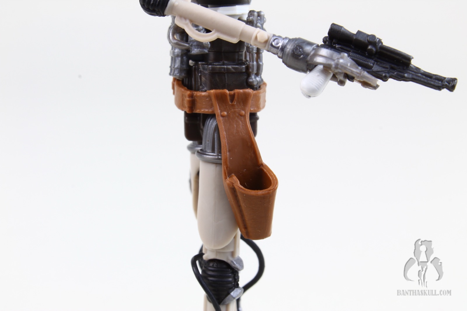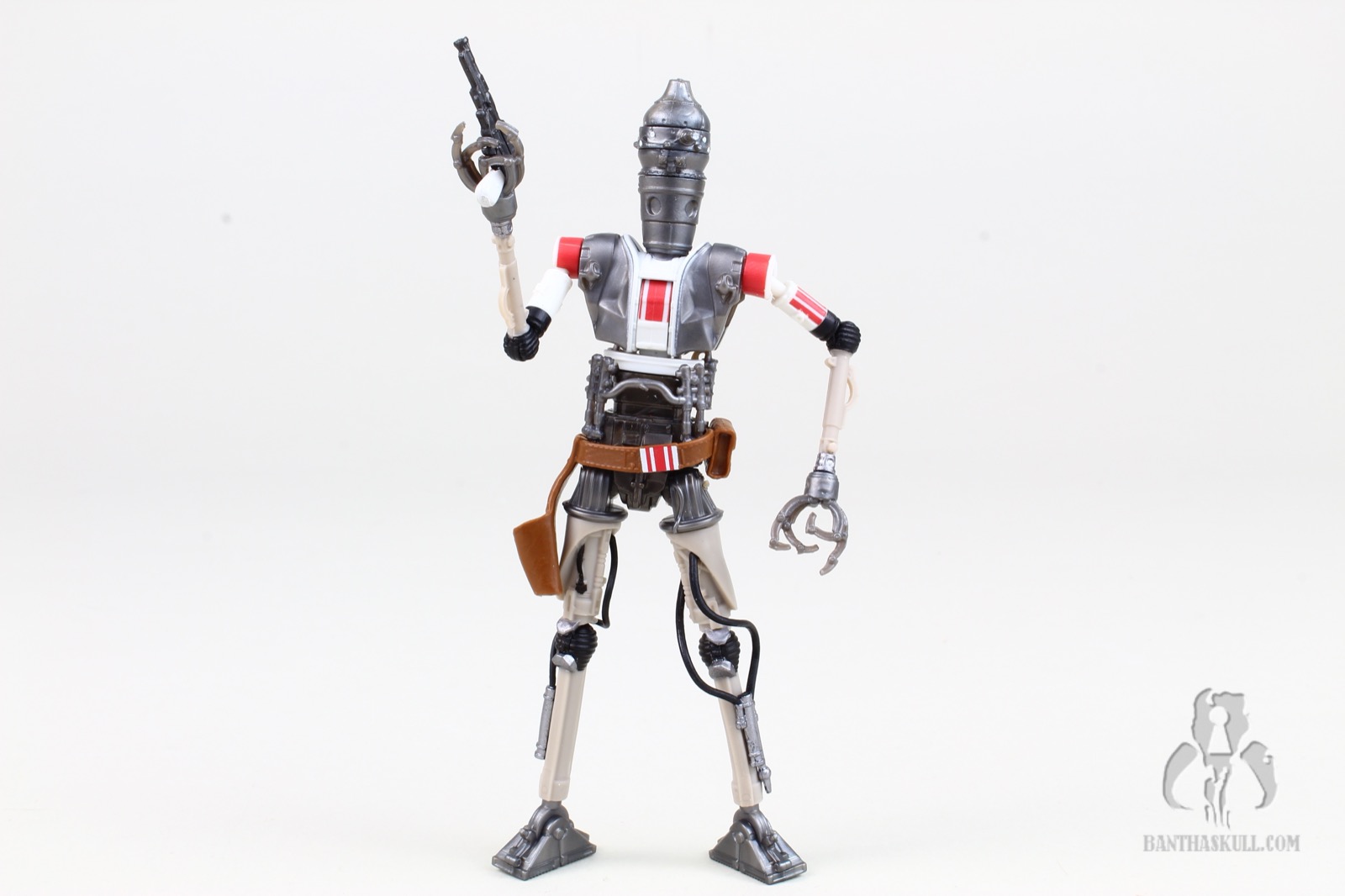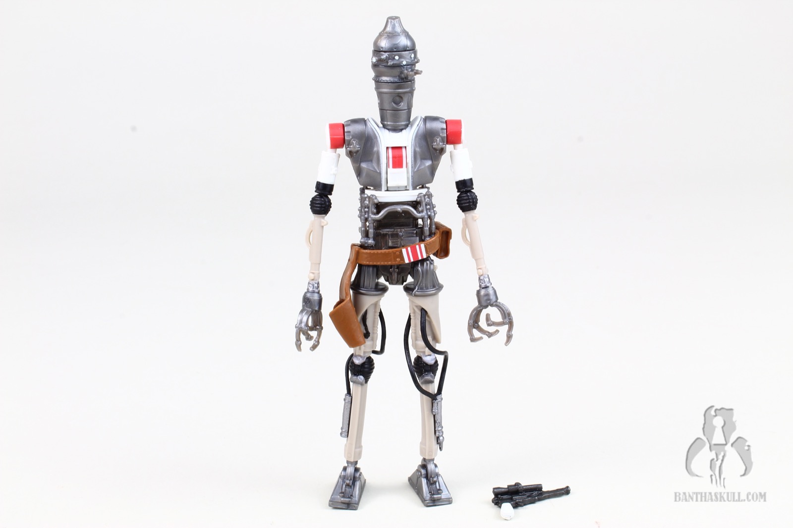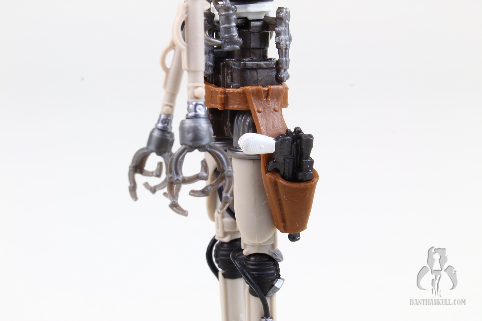 He comes with a new accessory, which is a belt and holster assembly. It looks cool in this “sheriff”, and it accommodates the included pistol - which has a painted handle! IG-11 can “grip” the blaster, albeit gingerly in his weird mechanical claw. VC206 IG-11 came with a rifle and a blaster, as well as his bandolier, so you might feel a little underwhelmed by the value here.
