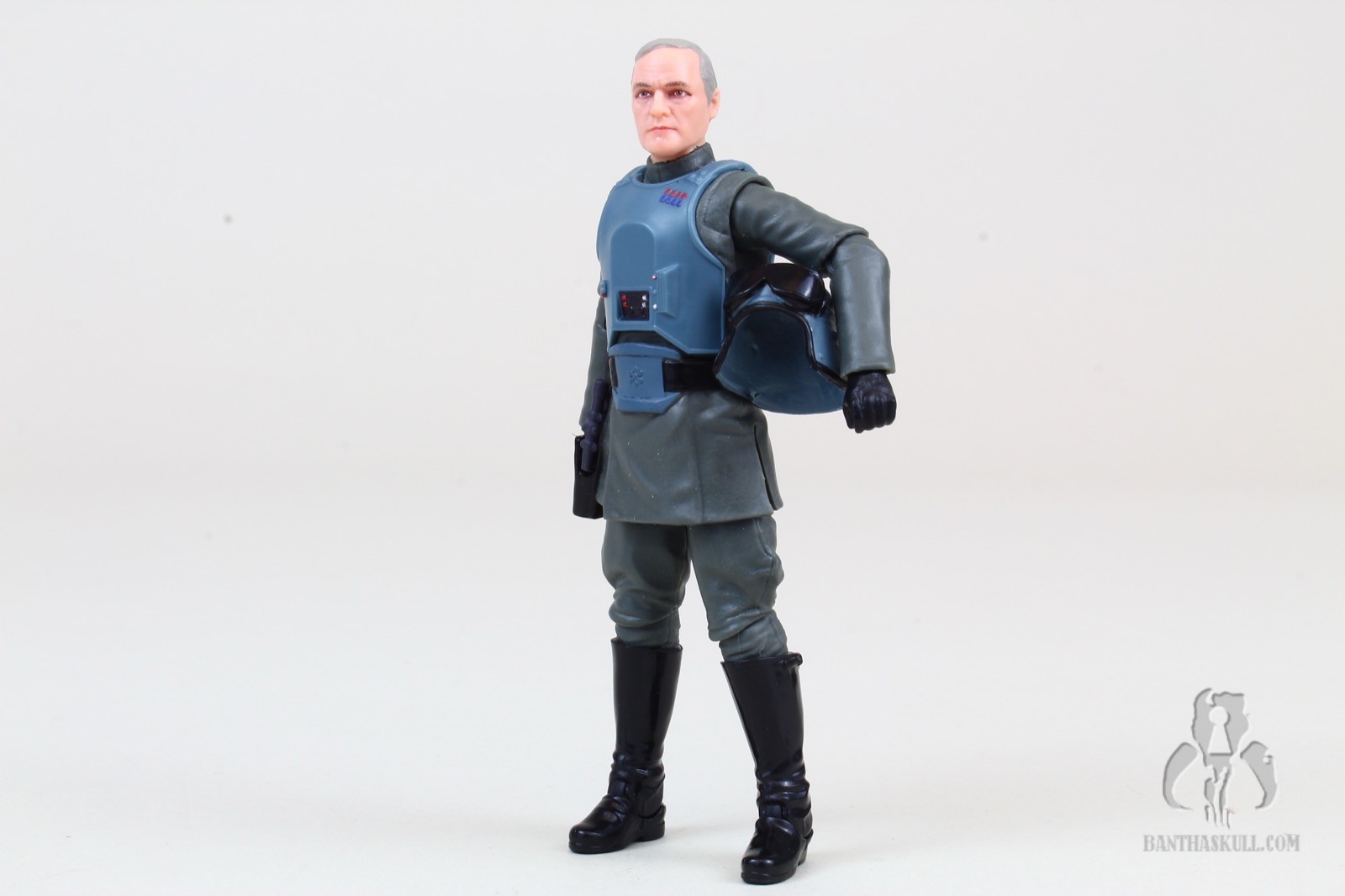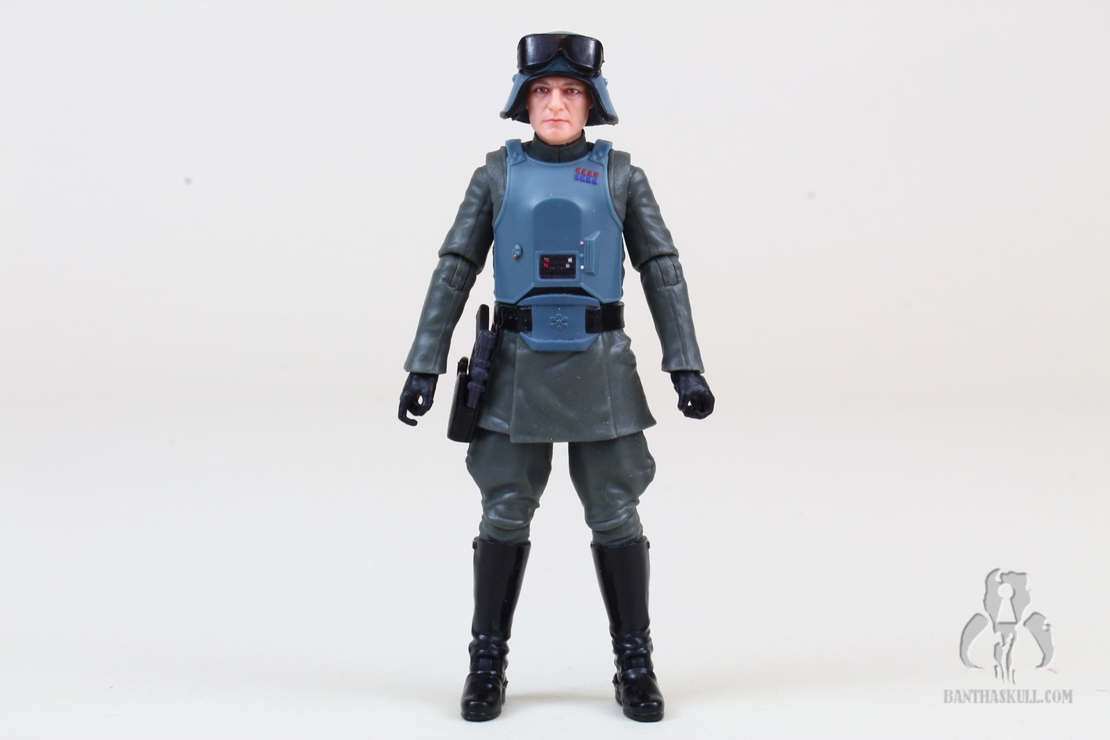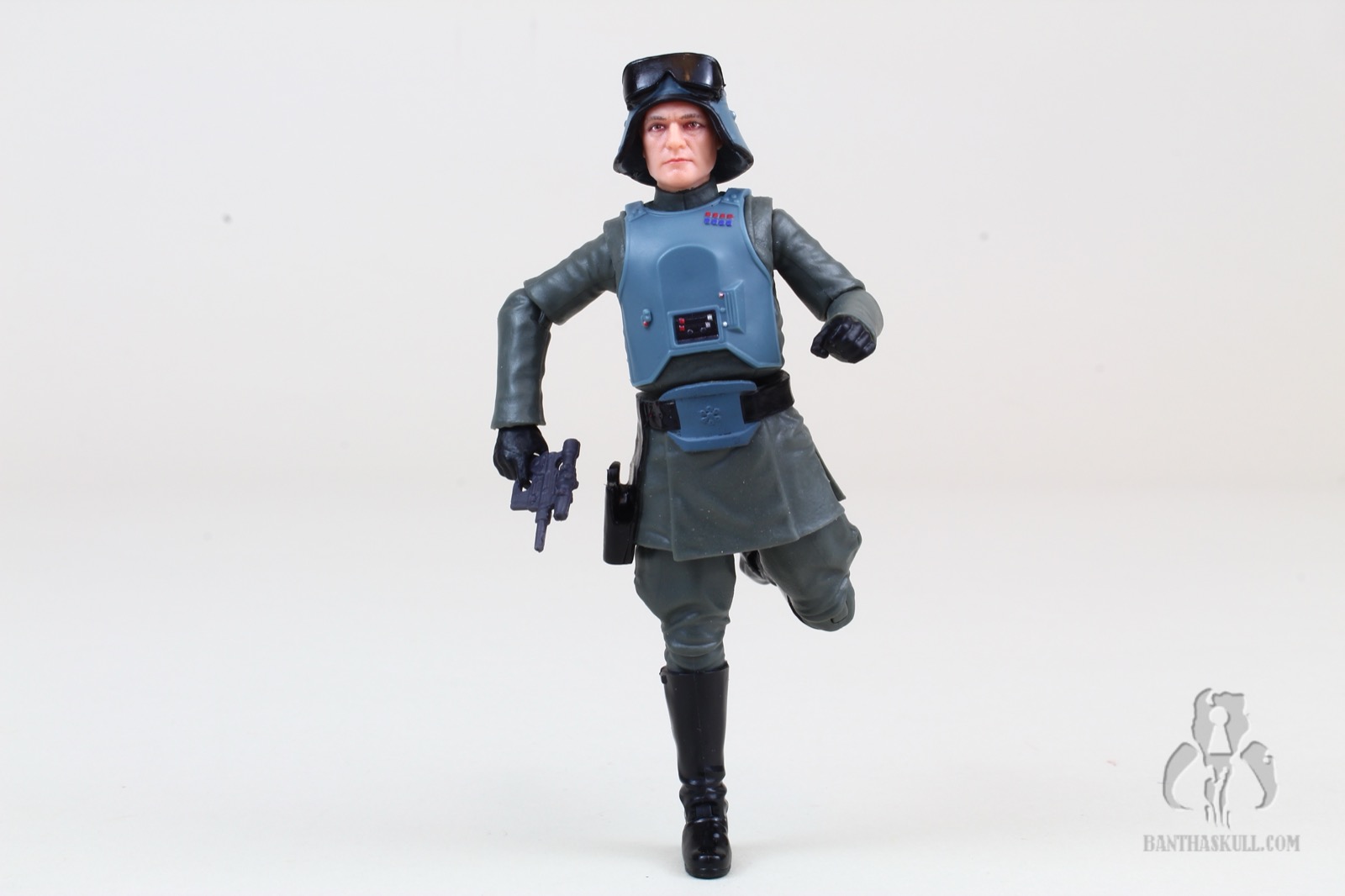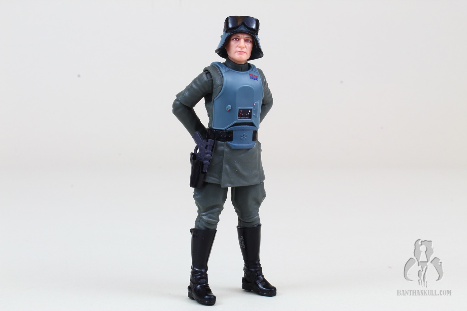 Also retooled is the soft plastic lower tunic. This time it has the armored “belt buckle”, completing the look. He’s got a holster (which seems to appear about half the time on these officer figures), which fits the blaster rather loosely, unfortunately. On that note, the included blaster does fit okay in Veers’s right hand.