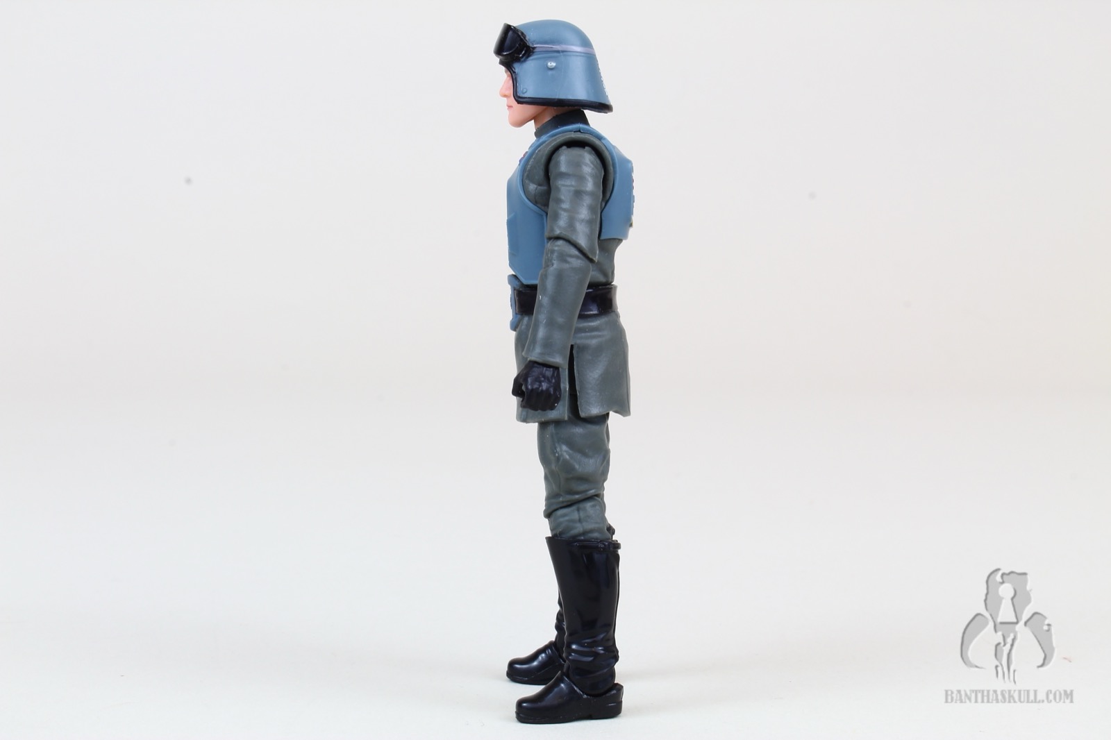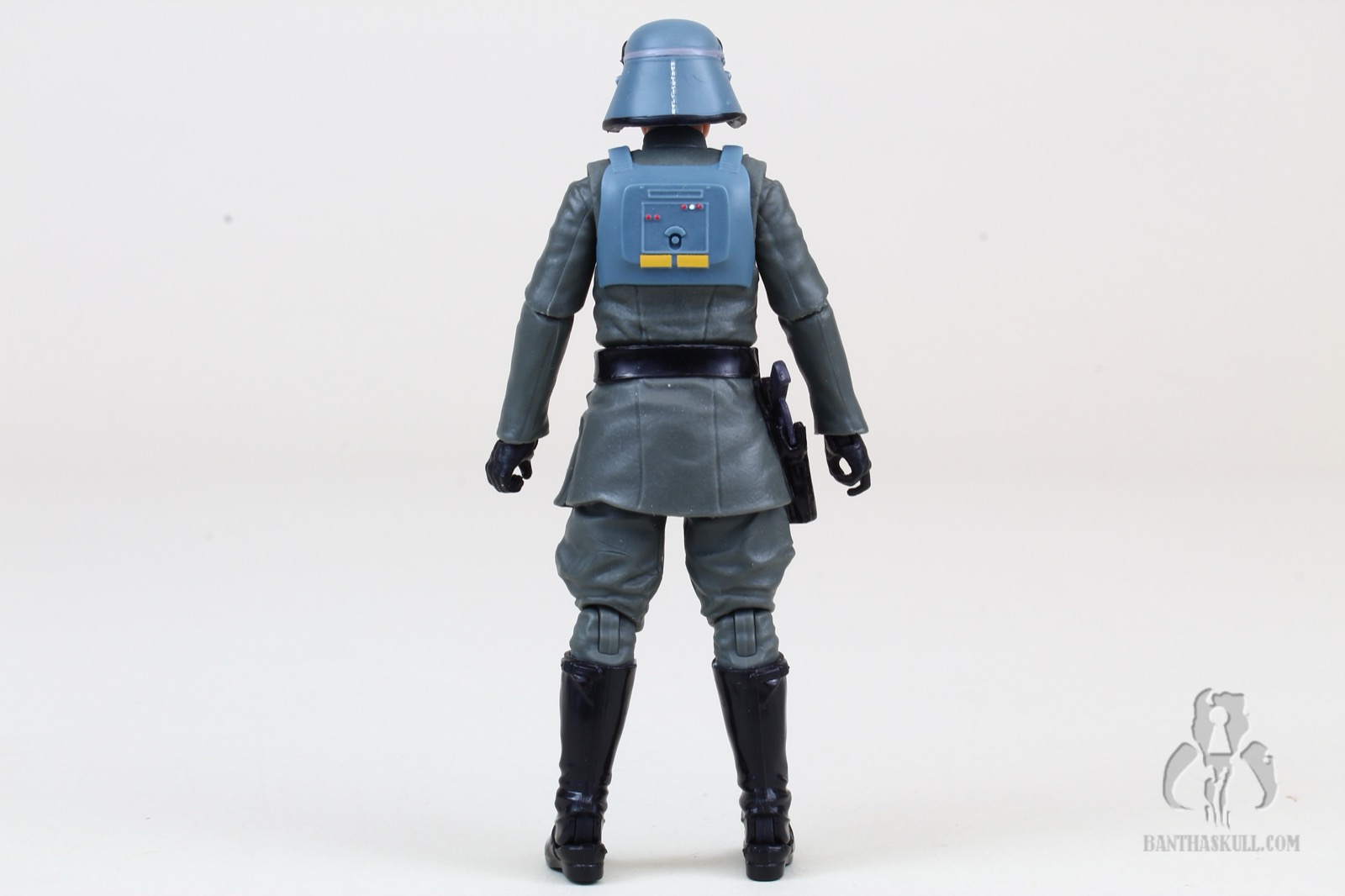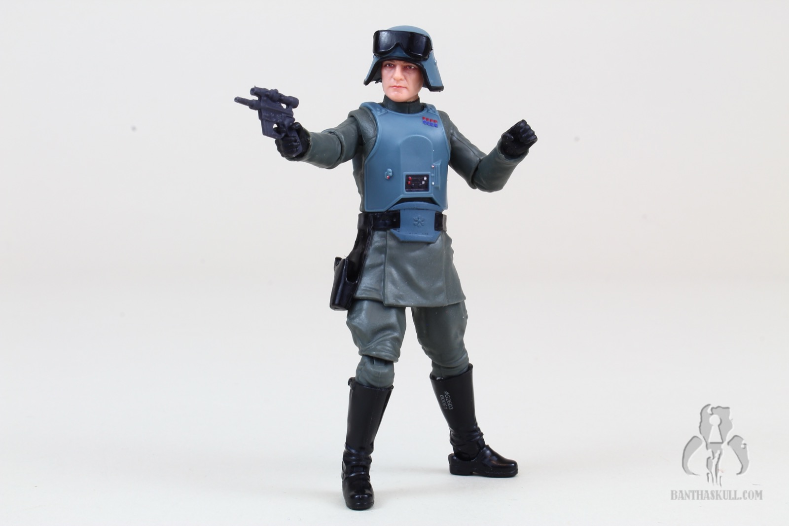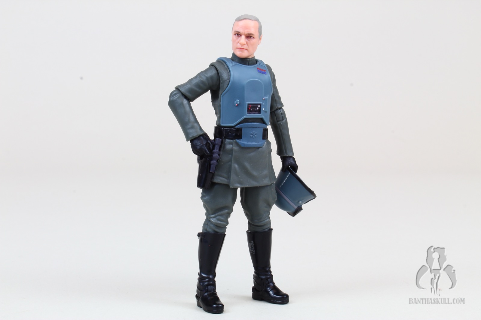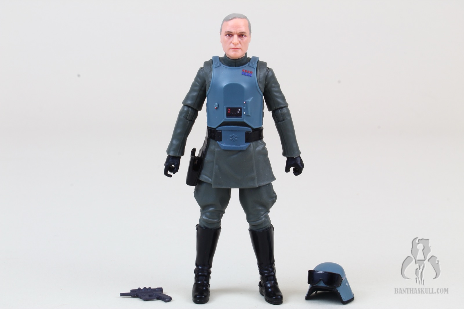 Also retooled is the soft plastic lower tunic. This time it has the armored “belt buckle”, completing the look. He’s got a holster (which seems to appear about half the time on these officer figures), which fits the blaster rather loosely, unfortunately. On that note, the included blaster does fit okay in Veers’s right hand.