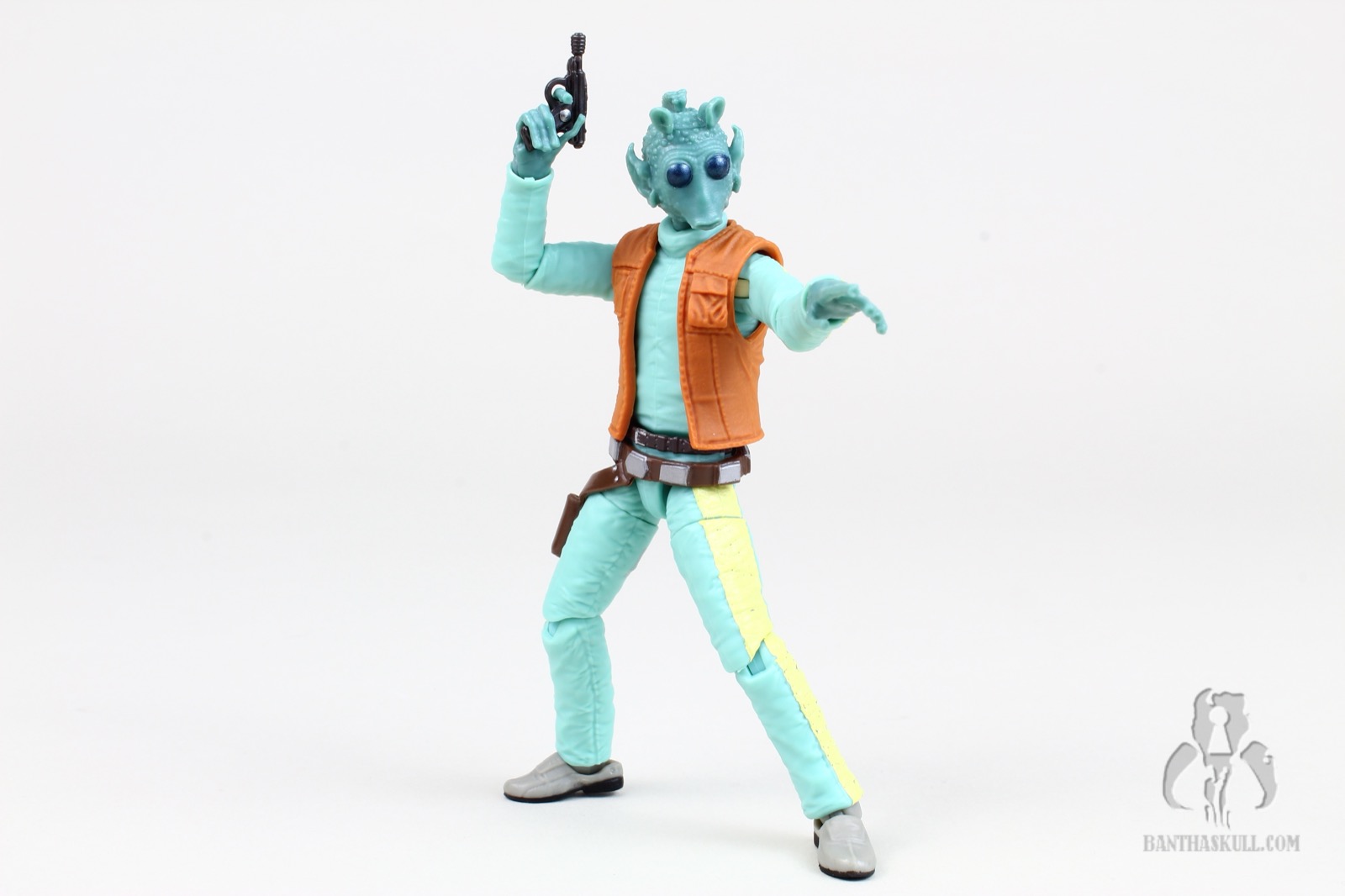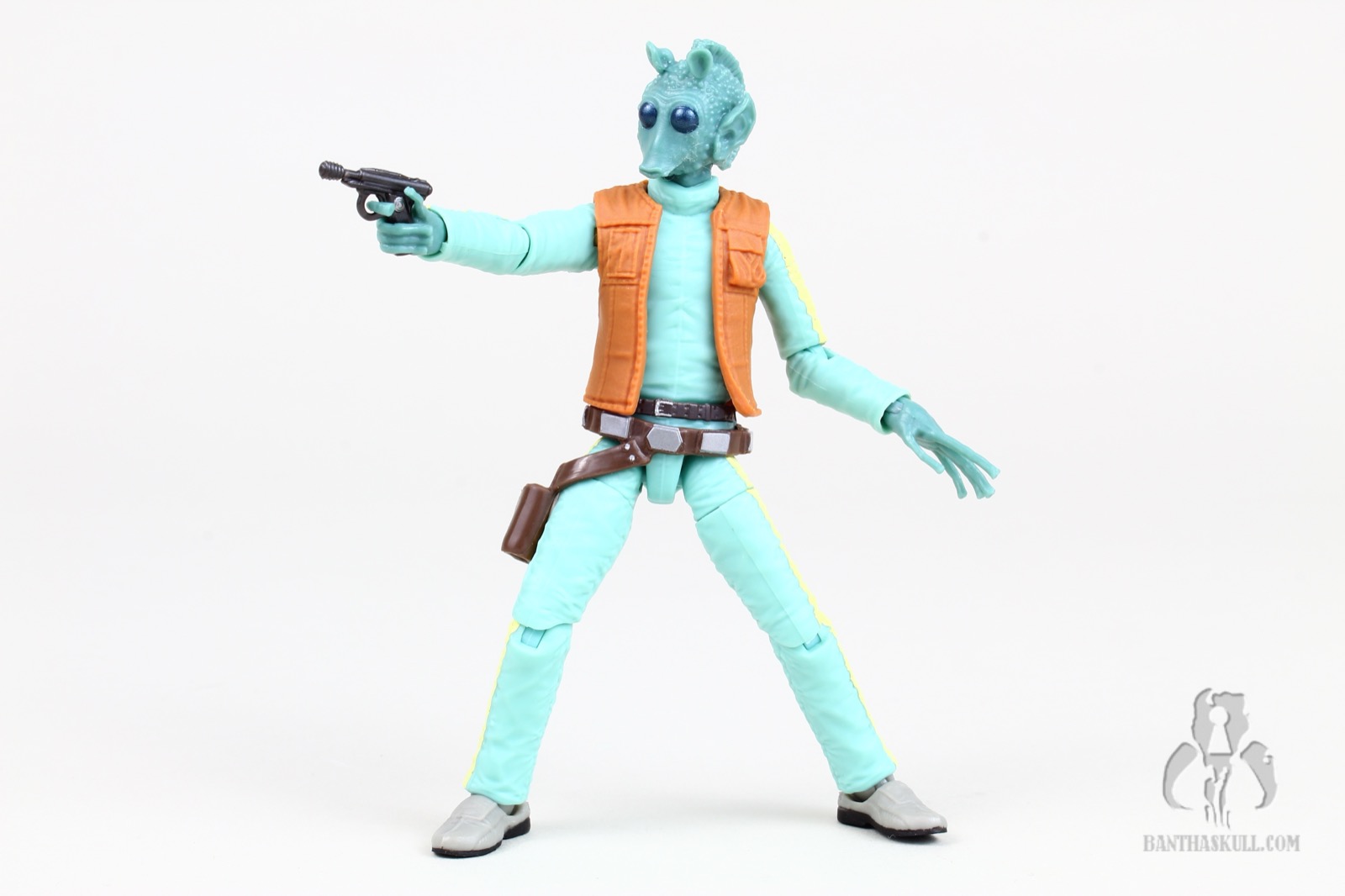 As you are all aware, this figure is a repack of the Greedo included with the Mos Eisley Cantina HasLab. This time the card mimics the film-out of the original Kenner card, and it does not include the bar glass. Bret’s review, and most of the pics from the Cantina has been cut and pasted here, followed by some new commentary from me. -Chris