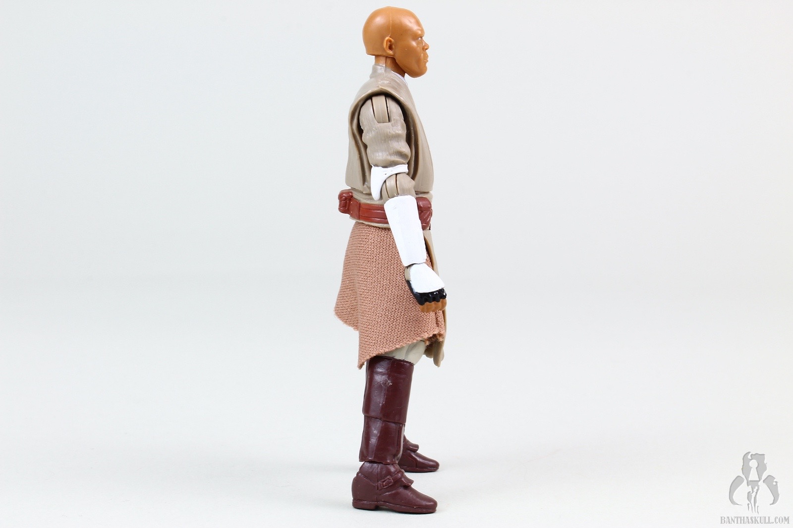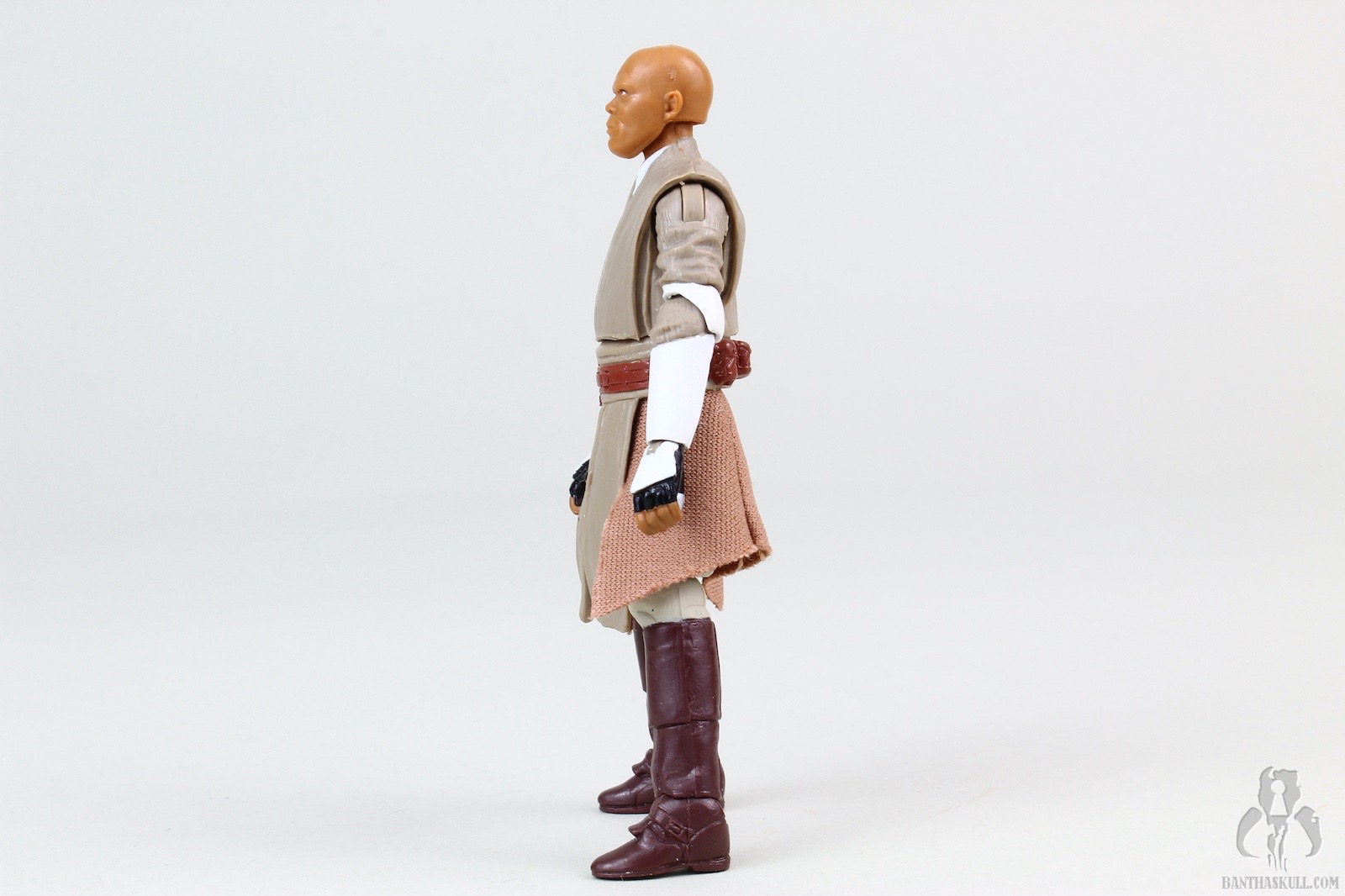 The sculpt is very good, along with the added articulation. Chris gave this figure an 8, which at the time represented our baseline score for an average collector-grade figure. I’m going to leave it at an 8, because we gave the TVC Mace Windu our new baseline score of 7, and this figure is better, even though it’s obviously not the same outfit. Ball jointed hips would have given this figure the full complement of Jedi Level Articulation (JLA). I’m going to leave it at an 8.