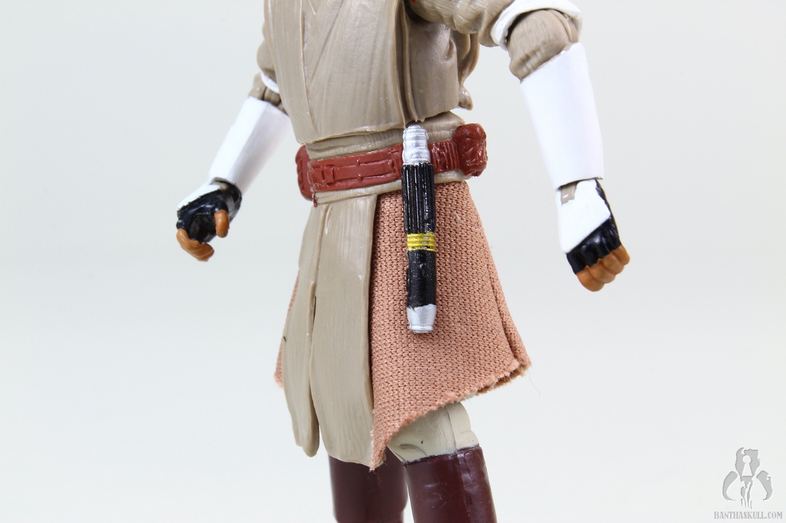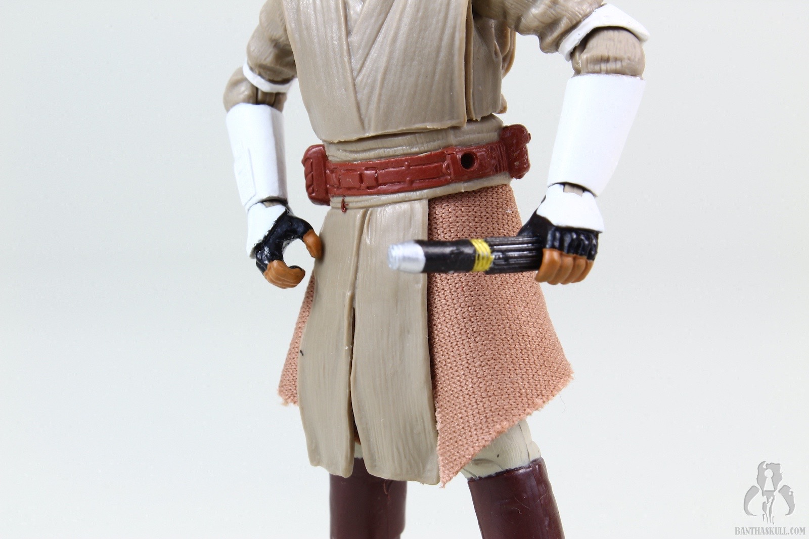 The good is that I really like the expression on the head sculpt. The furrowed brow really conveys a lifelike Sam Jackson expression. I assume the forearms borrow from the VC41 Clone Trooper tooling and as such the wrists are ball jointed. As Vanessa Bayer impersonating Miley Cyrus might say, “That’s rilly kewl.” Speaking of the women of SNL, have I told you how brilliant I think Cecily Strong is? Oops. I’m getting off topic again. The added articulation at the wrists increases the dueling poses that can be achieved. Ball jointed hips on this figure would have allowed the positives to overwhelm the negatives to improve the score, but unfortunately this Windu figure comes with the standard swivel hips. On the plus side, the incorporation of soft goods in the lower tabard ensures this point of articulation isn’t limited. If you’ve made it this far, you already know the score, so I’m not going to repeat it.