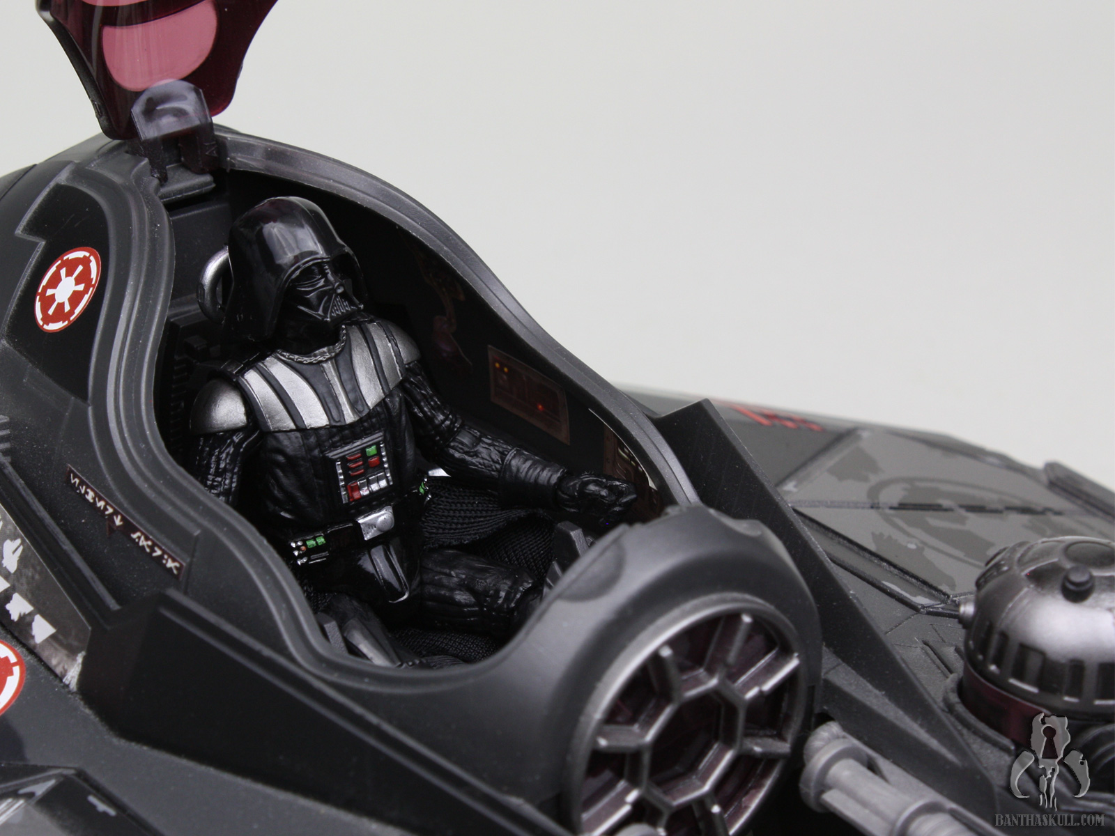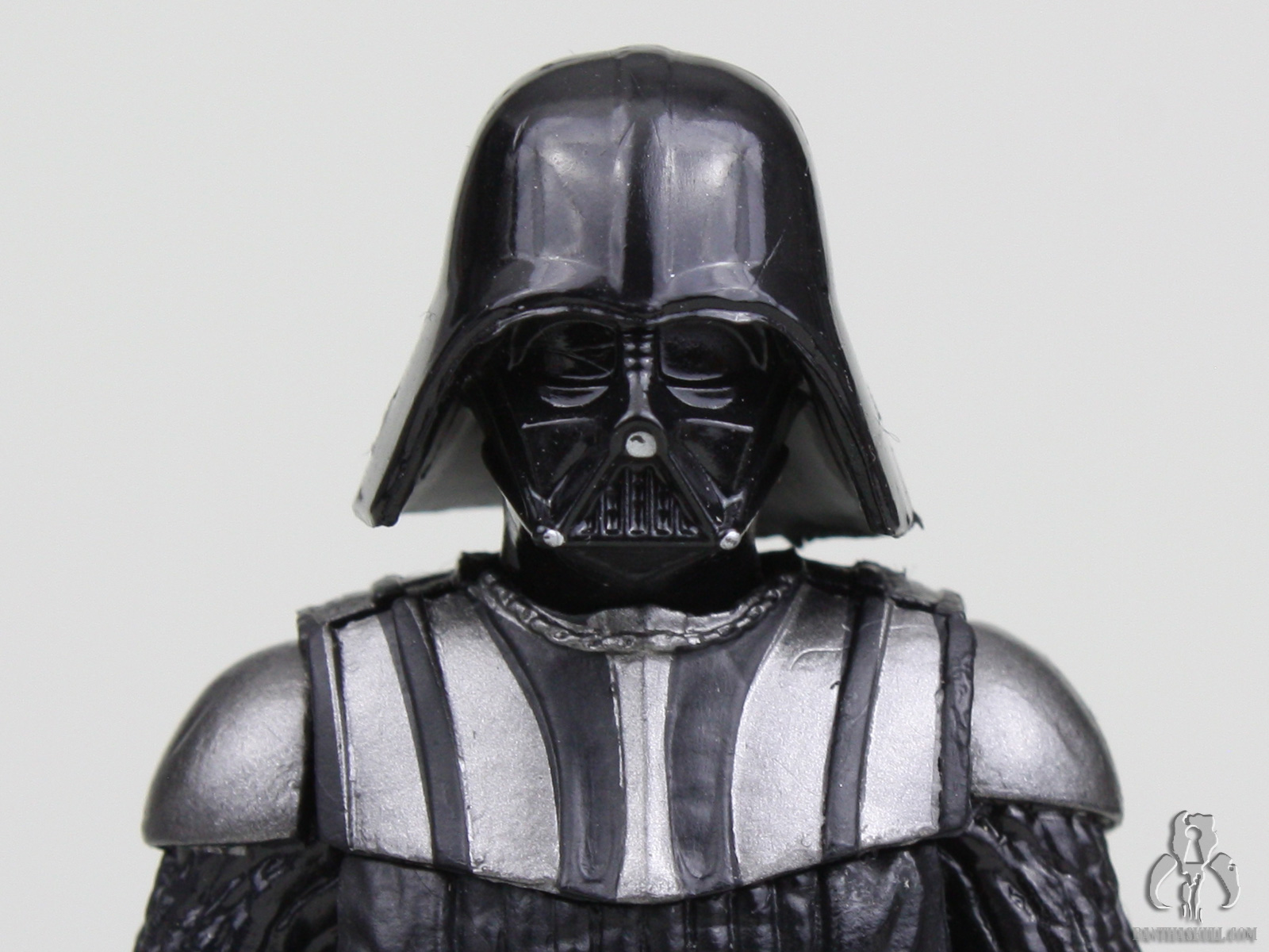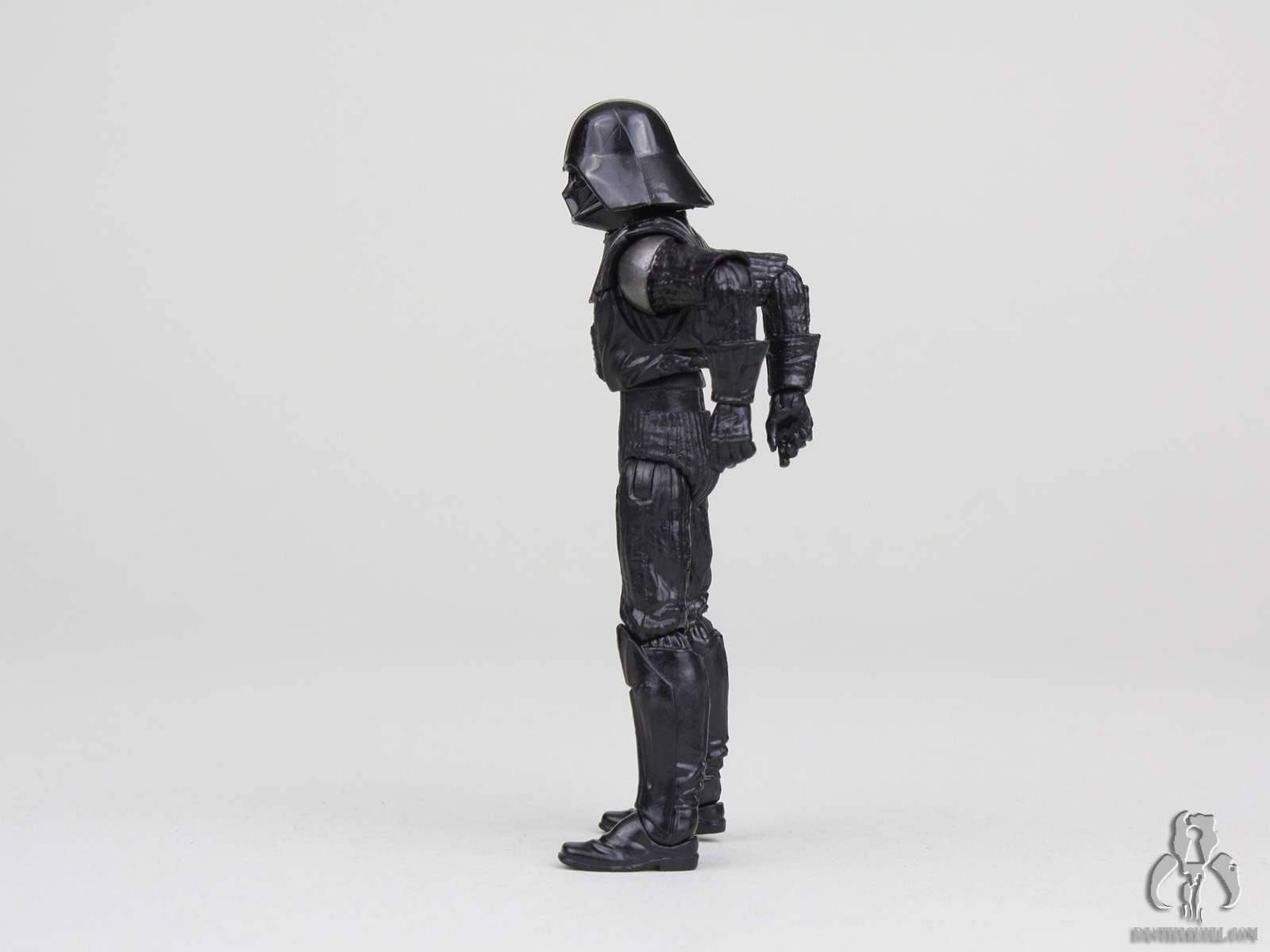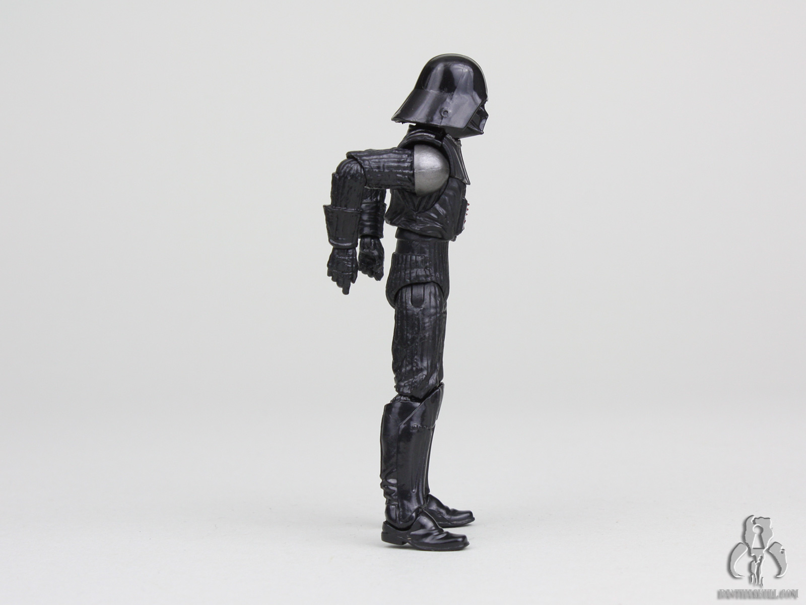The head of your figure is going to pop off. A lot at first because it’s appears to be an assembly issue. Out of the packaging, my sample’s head wasn’t doing much more than resting on its shoulders. It literally fell off the moment I touched it. The is the first Darth Vader figure ever with a ball jointed neck and there is this unfortunate price to pay. The head never pops onto the peg. It seems more like a rubber stopper in a flask. There is no positaive feedback pop given when the joint is “in”. You merely push it down in place until it holds. Because of this, we are offered the greatest range of motion for the head on a Darth Vader figure ever. It can tilt so Vader can menacingly peer down from his lofty stance. It can tilt sideways to give the impression that Vader is contemplating his allegiance to the Emperor Palpatine.