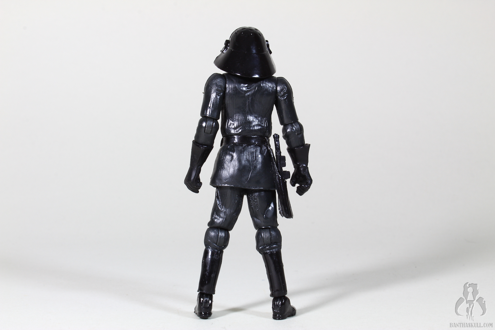 The biggest problem with this figure is so obvious that fans were already calling it a failure before it even arrived in stores. The bulbous swollen appearing knees had many collectors tossing barbs such as “the arthritic trooper” at the figure. I’ve long assumed that the concept here was to represent the way the pant material bunches just before it gets tucked into the boot on such a uniform. I have a feeling that the hand sculpted prototype would show a more subtle interpretation, but Hasbro choose a larger ball joint to make production easier. The shoulder joints are also jarringly bulky. What we may be looking at here is an early attempt by Hasbro to fully incorporate ball joints into a figure, This figure was originally slotted for the 2006 Saga Collection and was bumped into the 30th Anniversary Collection. Hasbro often works their way through new figure technologies perfecting it as the go, and that may be what we’re looking at here.