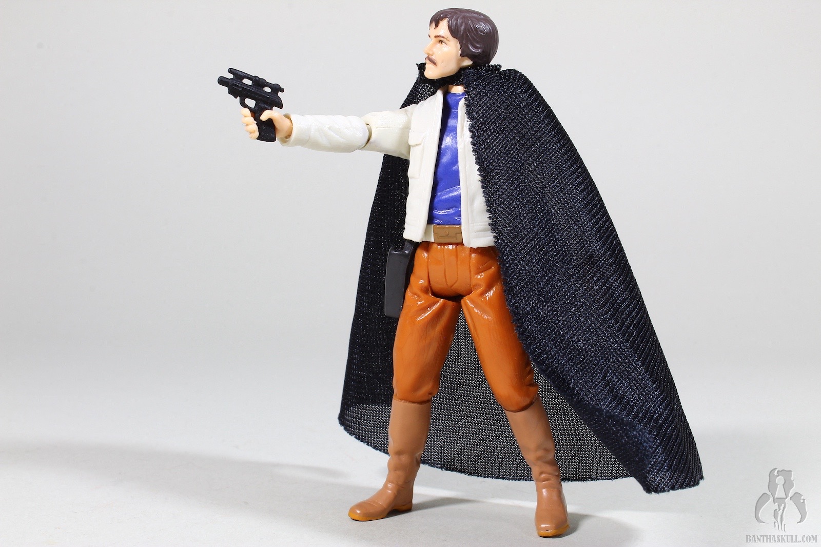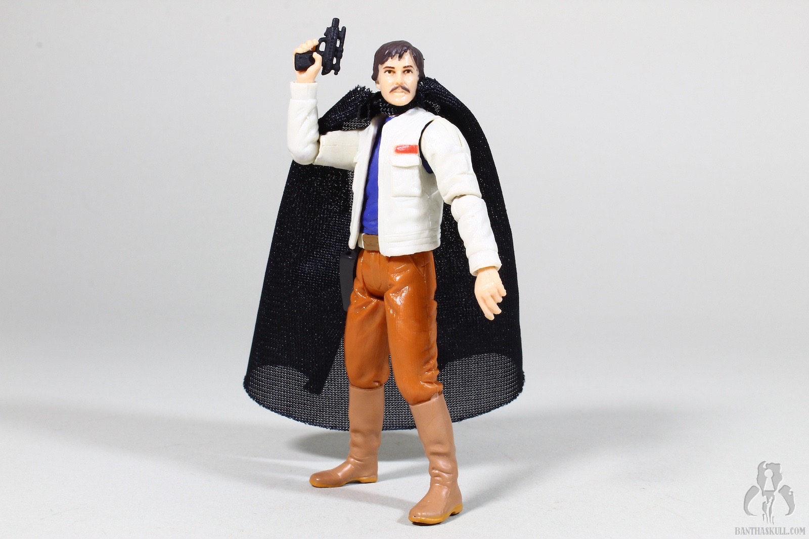 This is another figure in the 30th Anniversary Collection that is a reminder that we were still in the pre-super articulation era. It features no lower body articulation except for the swivel hips. By this point we had come to expect at least knees on our figures. It does have a super articulated upper body with ball jointed shoulders, elbows and swivel wrists. The figure does not interact well with its blaster at all. The blaster has a enclosed trigger guard, but the figure lacks a floating trigger finger. This means the blasters rests above the hand rather than gripped in it. Even before Seinfeld drew attention to the subject, I’ve been fascinated by capes, so I’m happy the Imperial Academy uniform included the fashion accessory despite any true practical purposes. I’ve often wished the US Miltary would reintegrate his particular uniform item into its arsenal. I am very happy to own this figure, but the cape can’t cover up for its shortcomings. It’s a 6 out of 10.