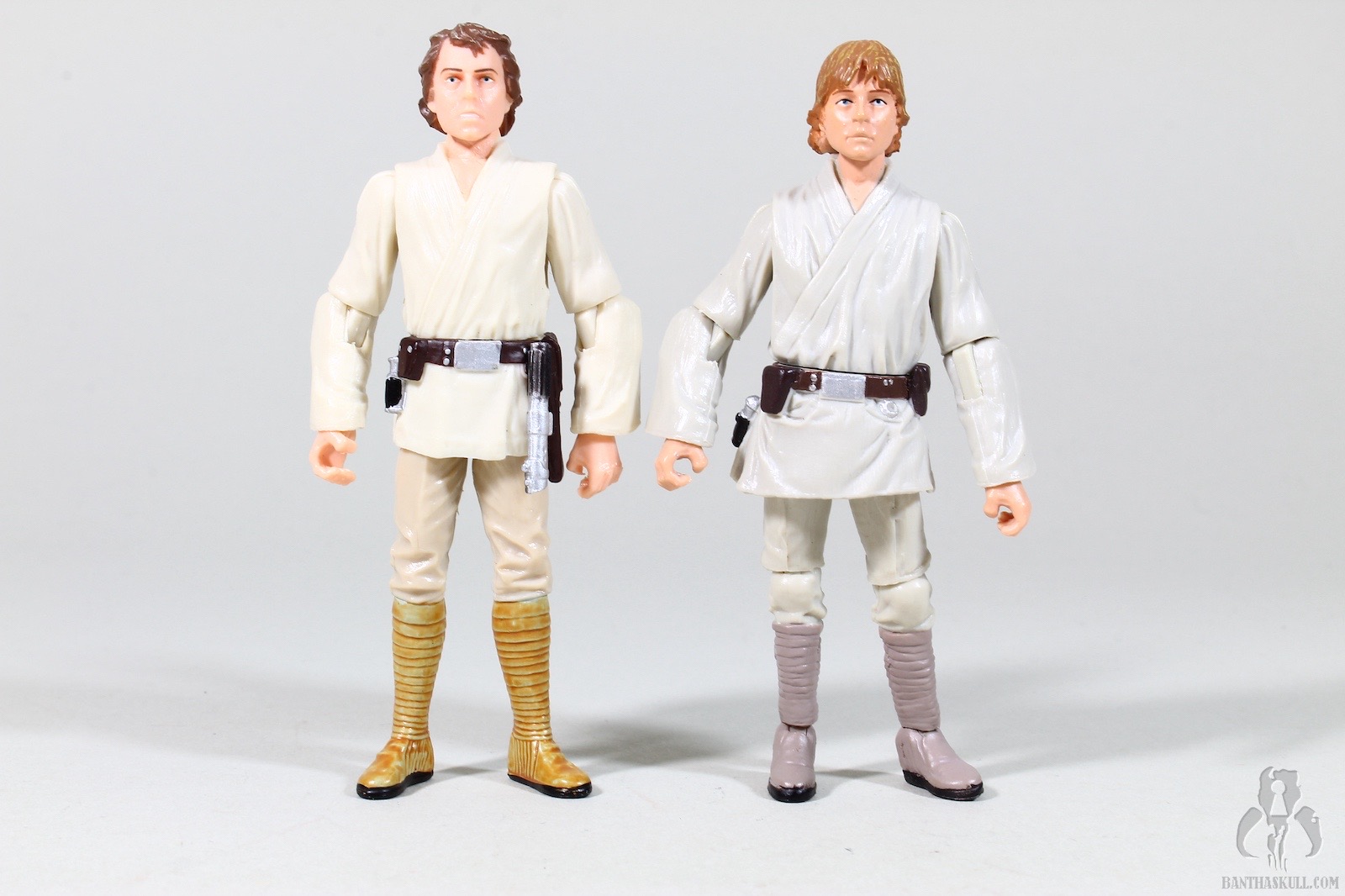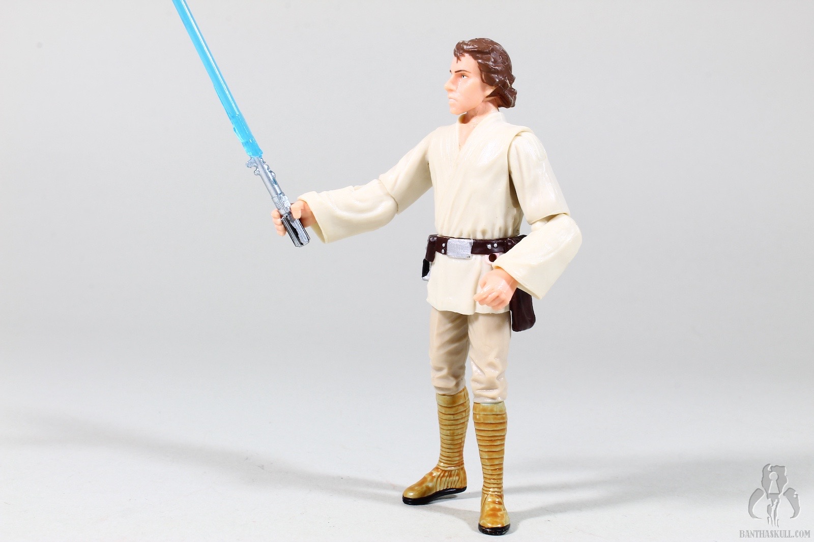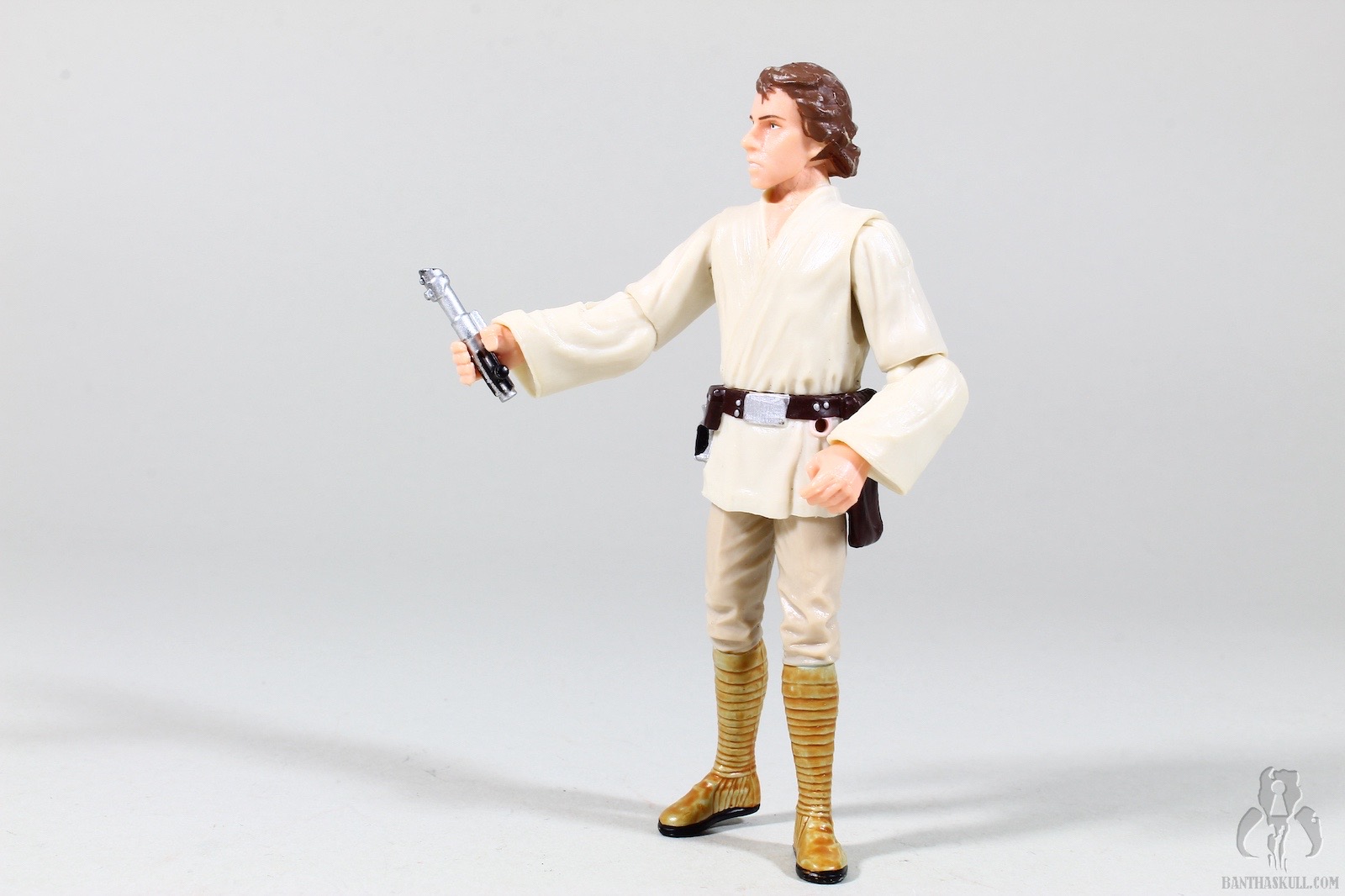 The issues with the figure don’t end at the melon, although the rest of the figure looks decent. It’s a good representation of the “farmboy” costume. The ball jointed elbows and shoulders allow for an acceptable amount of posing of the arms in case you want to place Luke in a saber duel with a training remote. The problem is that this is yet another 30th Anniversary Collection figure that features no lower body articulation except for swivel hips. I think a lot of fans have the misconception that 2007 was the start of the super articulation era. It was true of some of the figures, but this wave alone had two figures without knee or ankle articulation. The Imperial Academy Biggs Darklighter was the other. The reason for the reduced articulation on the figure is obvious, and we’ll get to that in a moment, but it’s still a disappointment. We were, and in many ways still are, waiting for the definitive Tatooine Luke Skywalker.