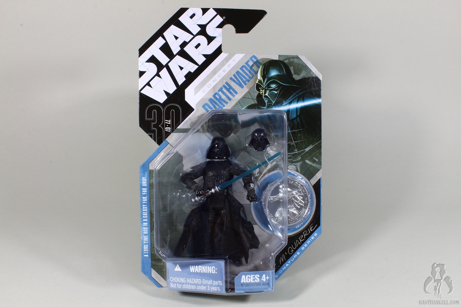 There are two notable McQuarrie versions of Darth Vader. One is the cover painting for the 1976 novelization of Star Wars. This is the larger design with the exaggerated brow arches and sweeping flares on the side. The other is from the erroneously fan titled Luke vs. Darth Vader painting. When that particular image was painted, Luke was still a female character in the script. Vader’s opponent in that wonderful artwork was actually supposed to represent a rebel trooper defending the Blockade Runner. While we all love Pello Scrambas and his band of Rebel Fleet Troopers, how cool would a squad of lightsaber wielding troopers in breathing apparatuses have been, but I digress. Consistent with the extra attention Hasbro paid to the figures in the McQuarrie Signature Series, this figure includes swappable heads to represent both of the artist’s renditions of the character. Hasbro easily could have included the head from the Luke vs. Vader painting and no one would have cared. It’s a painful reminder that only seven short years ago, Hasbro cared and tried to engage collectors. Now we’re treated as the nuisance that we are.
