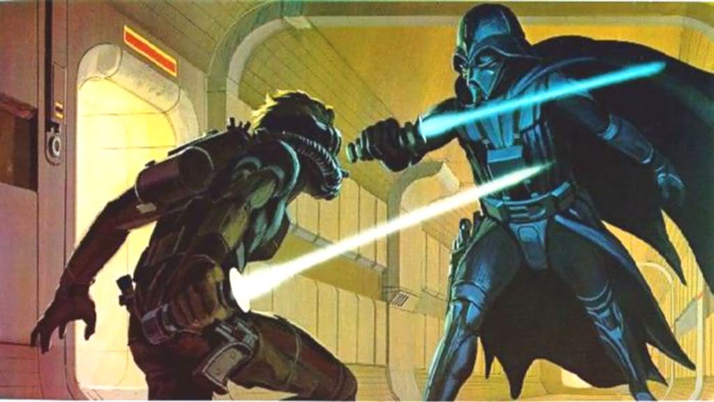 Darth Vader’s helmet is iconic. Even highly abstracted artistic renditions are instantly recognizable. So recognizable is the imagery that Vader’s visage was used to promote Revenge of the Sith even though the armored version of the character only appeared in the film for a few moments. Vader with his arms menacingly crossed was used to promote The Force Unleashed even though he was not the main character of the game. At the risk of blasphemy, the image of Darth Vader almost has the recognition of religious iconography. So is it terrible for me to say that I prefer Ralph McQuarrie’s version? The helmet is more angular and seems even more ferocious. The blaster is reminiscent of World War II era officer with his 1911 sidearm. It would be too much of good thing if the concept of too much of a good thing wasn’t ridiculous.