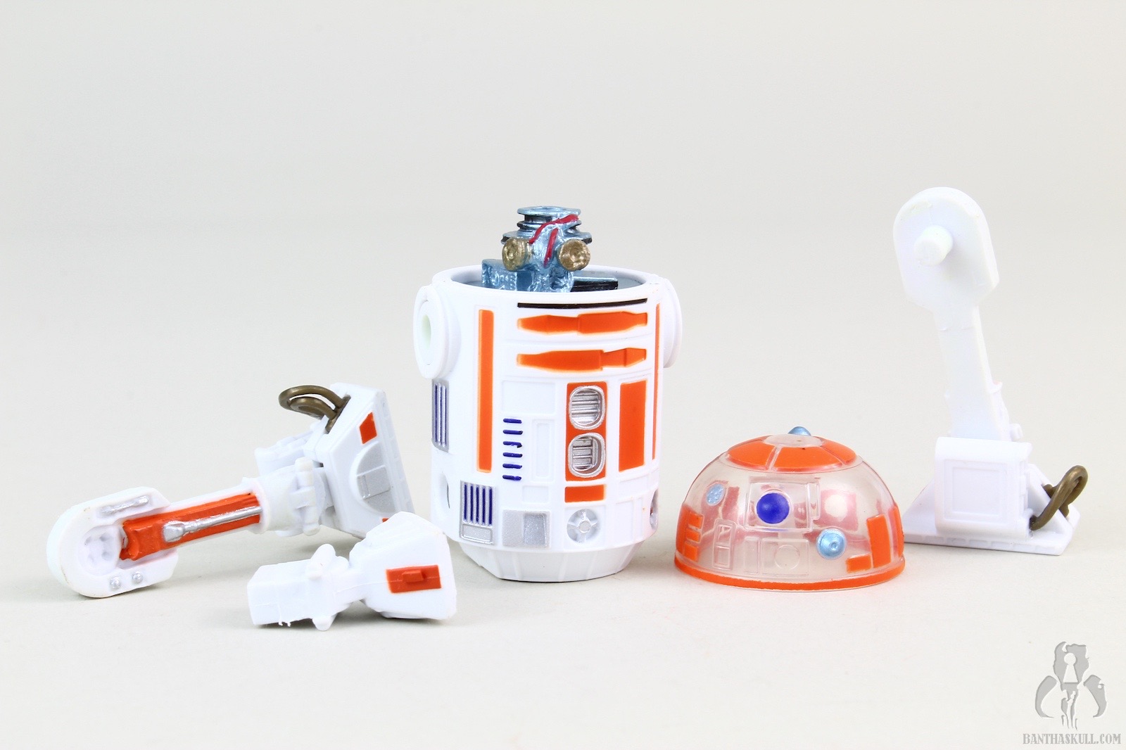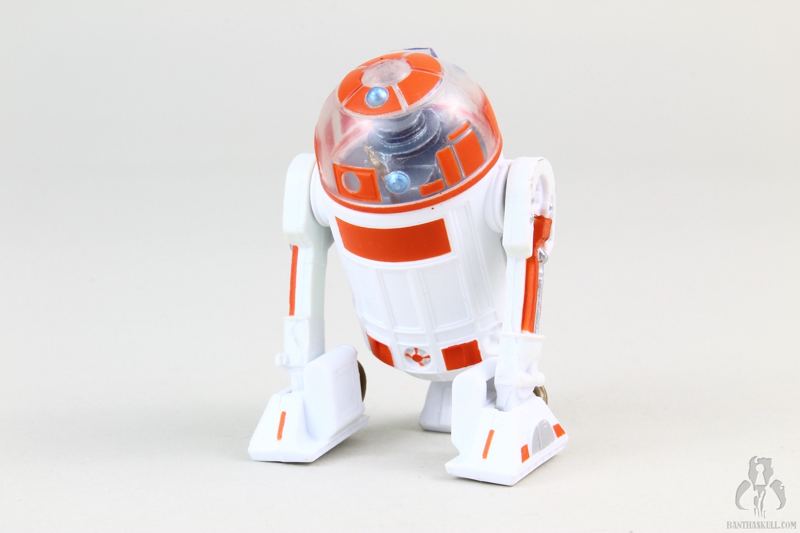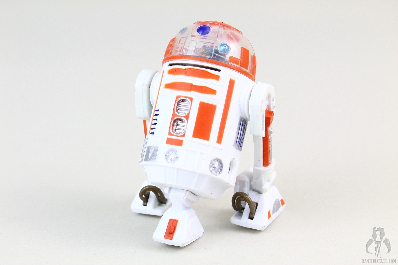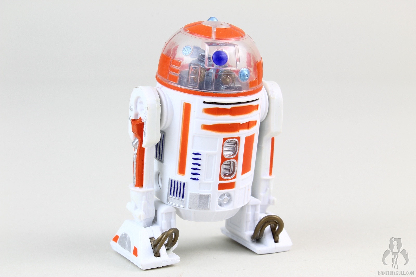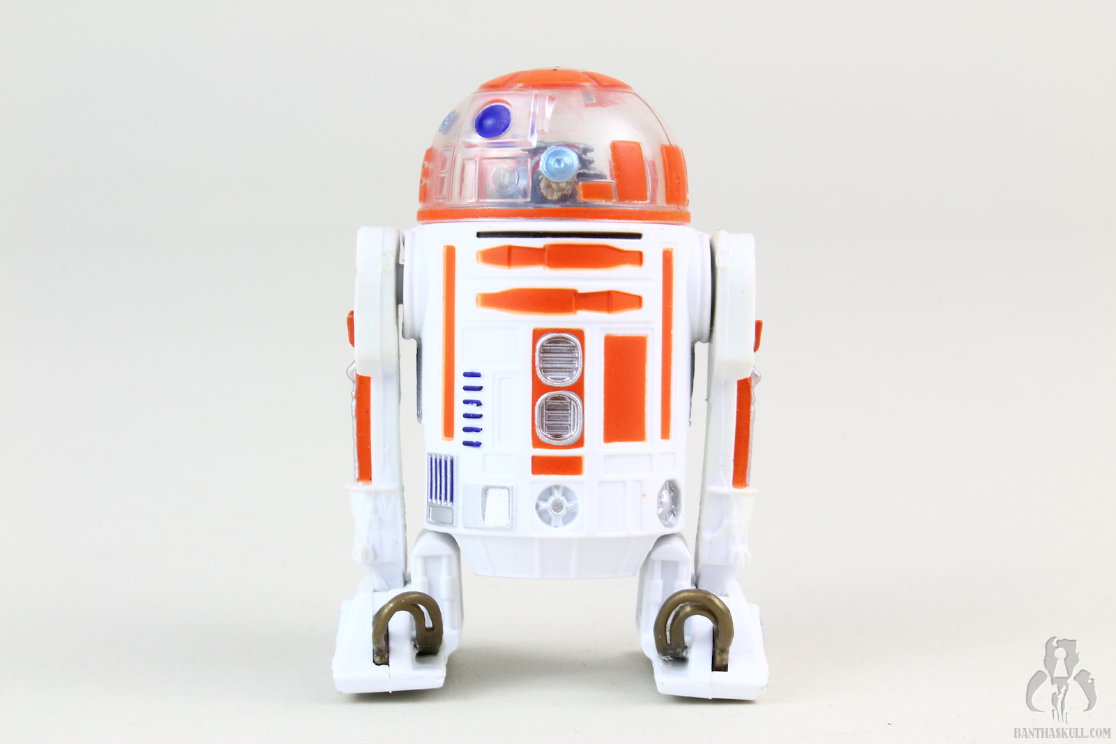 The clear dome is, in fact, clear, unlike the cloudy version that was used in creating the R3-M3 build-a-droid. A much crappier version of R3-A2 was included as part of the Battle of Hoth 4-pack from the Saga line in 2003. The release of this build-a-droid version contributes to making that set utterly obsolete, as every component has since been updated and improved. Well, except for maybe the tauntaun gutsac. That’s still cool.