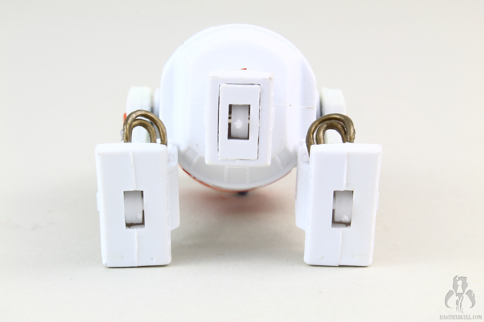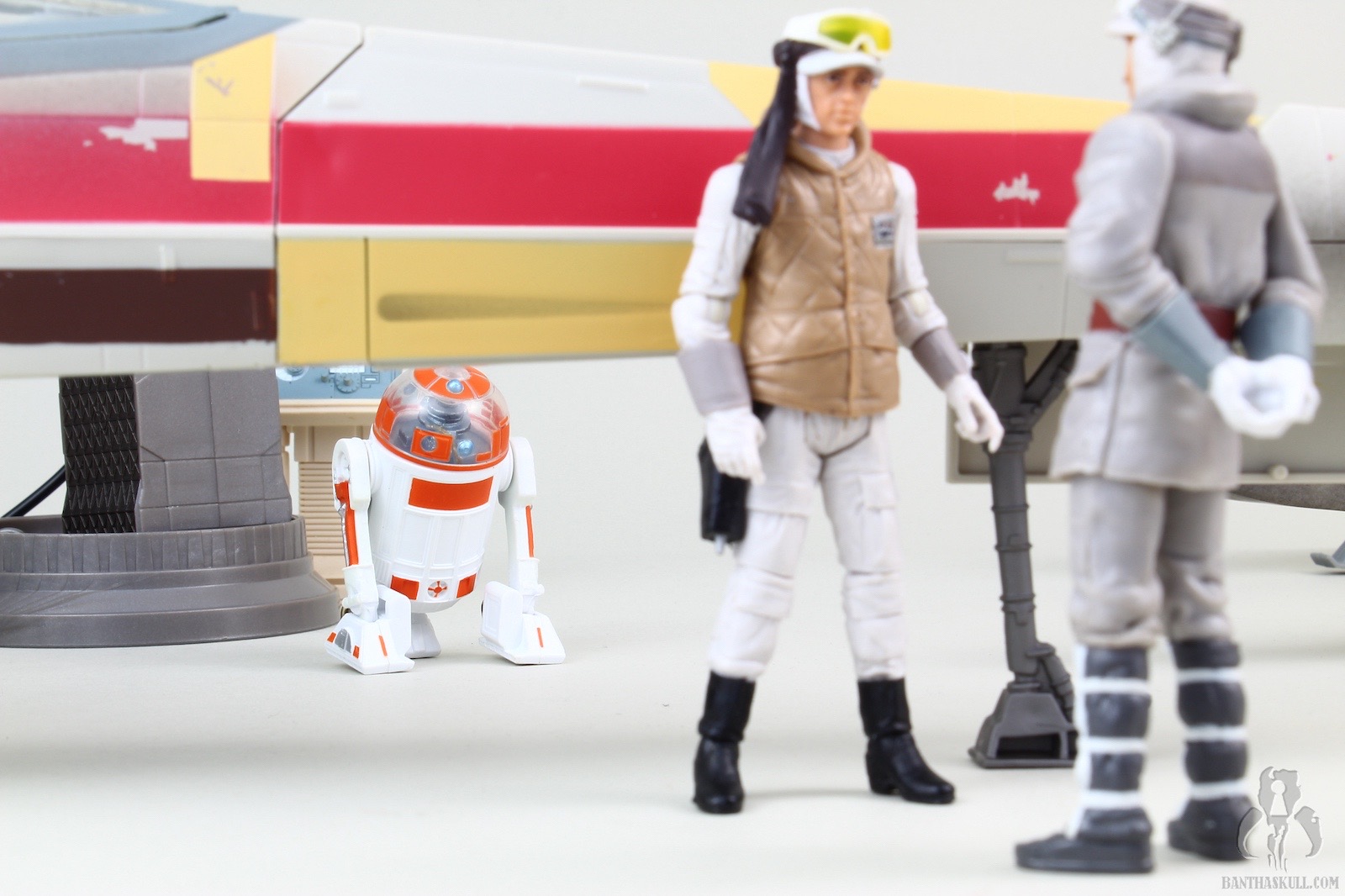 R3-A2, according to canon, was simply present at Echo Base during the Imperial Attack. This biography is barely edged out in detail by the Legends Wookieepedia entry, which adds that R3 was able to calculate military attack approaches and store 5 hyperspace jumps. Oh, and that he had a round eye, which just sounds racist. Other than that, he’s just there in the background of a scene or two, which makes it a great candidate for an action figure. He can be spotted standing in the background behind the fuselage of an X-Wing in the hangar, as Major Bren Derlin and Lieutenant Cal Alder discuss how they are going to finally murder Luke Skywalker, once and for all. Maybe. Because if you read through the details on Angelfire, one of the best resources for identifying astromechs, you might walk away thinking this figure isn’t actually properly painted as R2-A3.
