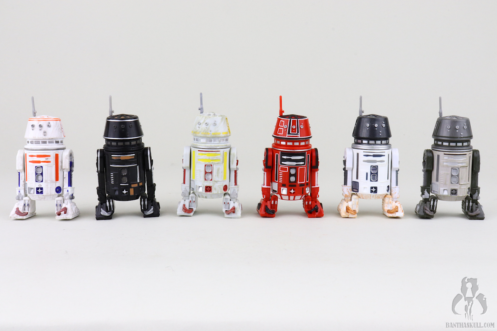To the best of my knowledge, R5-P9 never appears on screen. On the character’s Wookieepedia page, the reference photo is this figure. This might be a case of Hasbro determining canon, which is something the more relaxed and independent LFL would allow. This is another R5 droid based on the very good TSC 032 - R5-D4 sculpt. All figures based on that sculpt earn an 8 out of 10 as does this R5-P9 figure.
