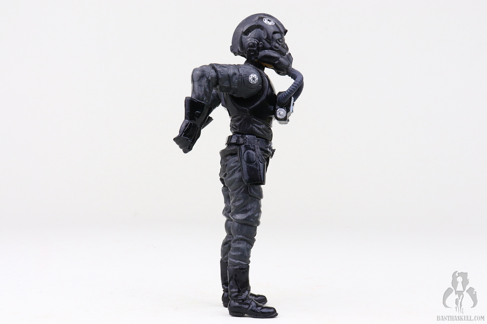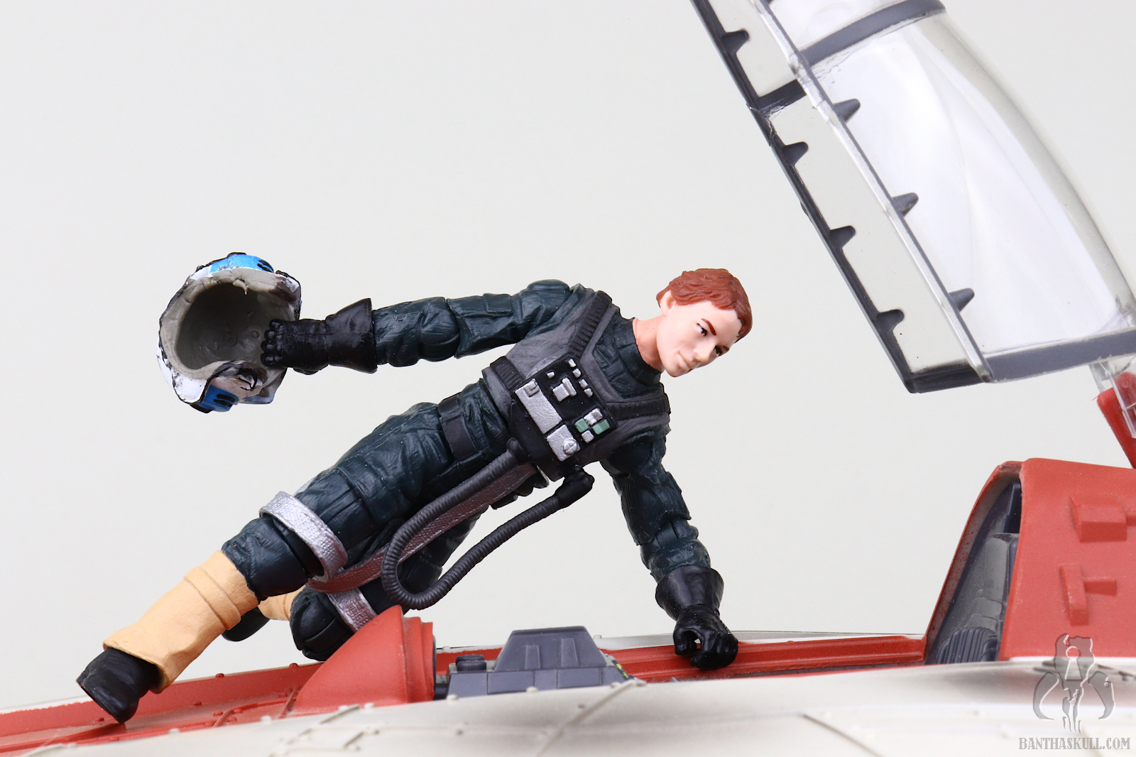 Spoiler alert: He dies right after that screen shot. Below the neck, the figure is basically the B-Wing pilot sculpt, which originated in the Rebel Pilot Legacy II Evolutions set, and was most recently released in the Vintage Collection as VC63 - B-Wing Pilot. The articulation is not up to current standards, but it’s good enough to do pilot business. This figure gets an 8 out of 10 which is one point more than the base super articulated score. This is due to how well it interacts with the helmet. This is the definitive Ekelarc Yong figure, a many fans would like to see it re-released.