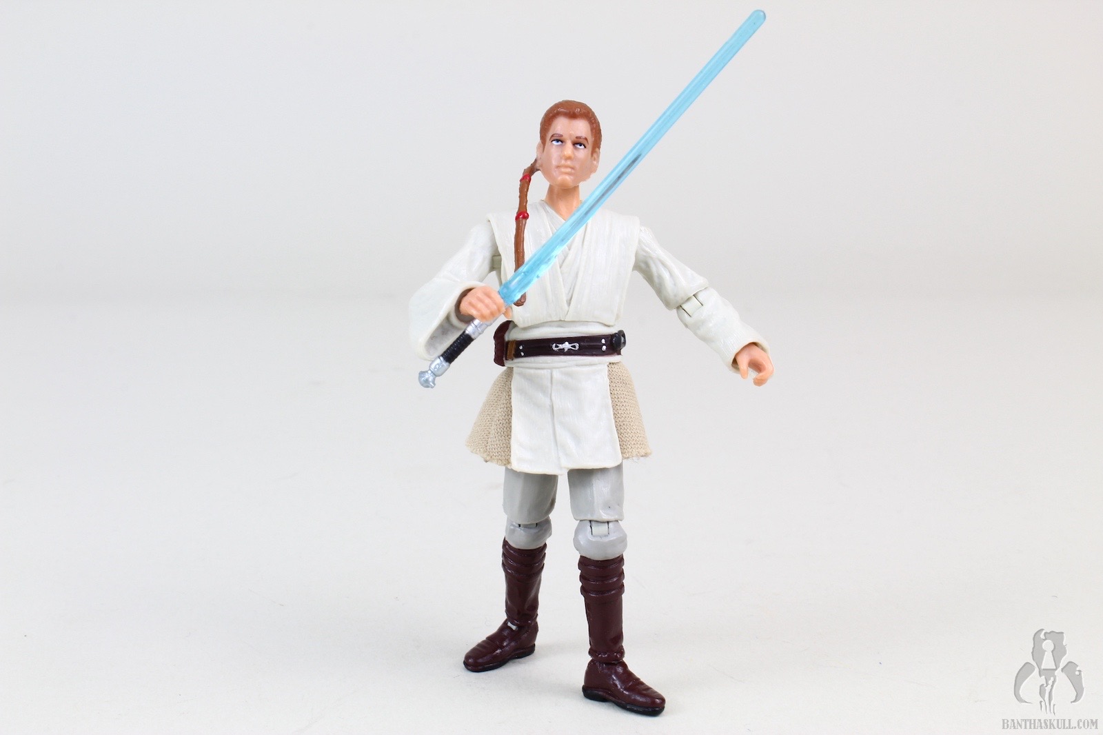 The robe is huge. It’s common, but still a negative. The lightsaber has an edge over Qui-Gon’s, because latter’s weapon was Episode 1-era crap. This is at least modern, with the blade “flare” and the slimmer hilt. Speaking of hilt, this figure is missing an unlit one, which is a travesty. He does come with a Jedi communicator, although unlike some previous figures, this version of Obi-Wan has no belt “hook” to secure the device, so good luck not losing it.