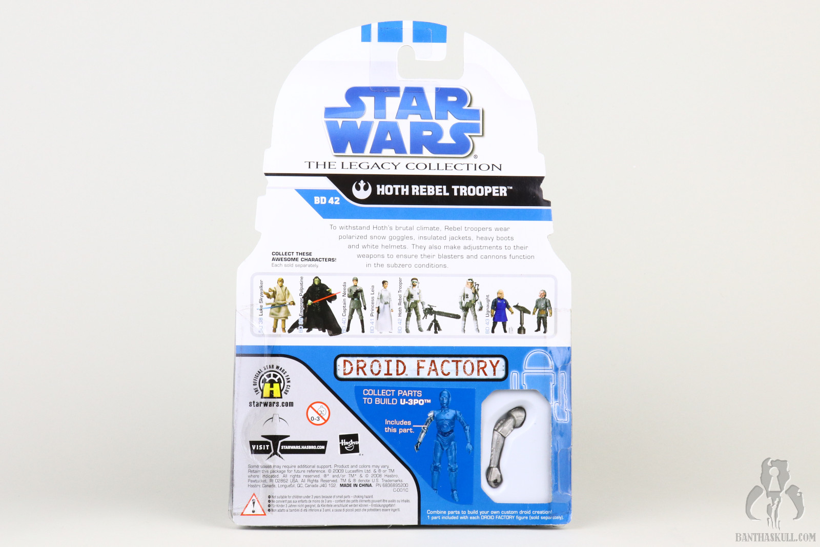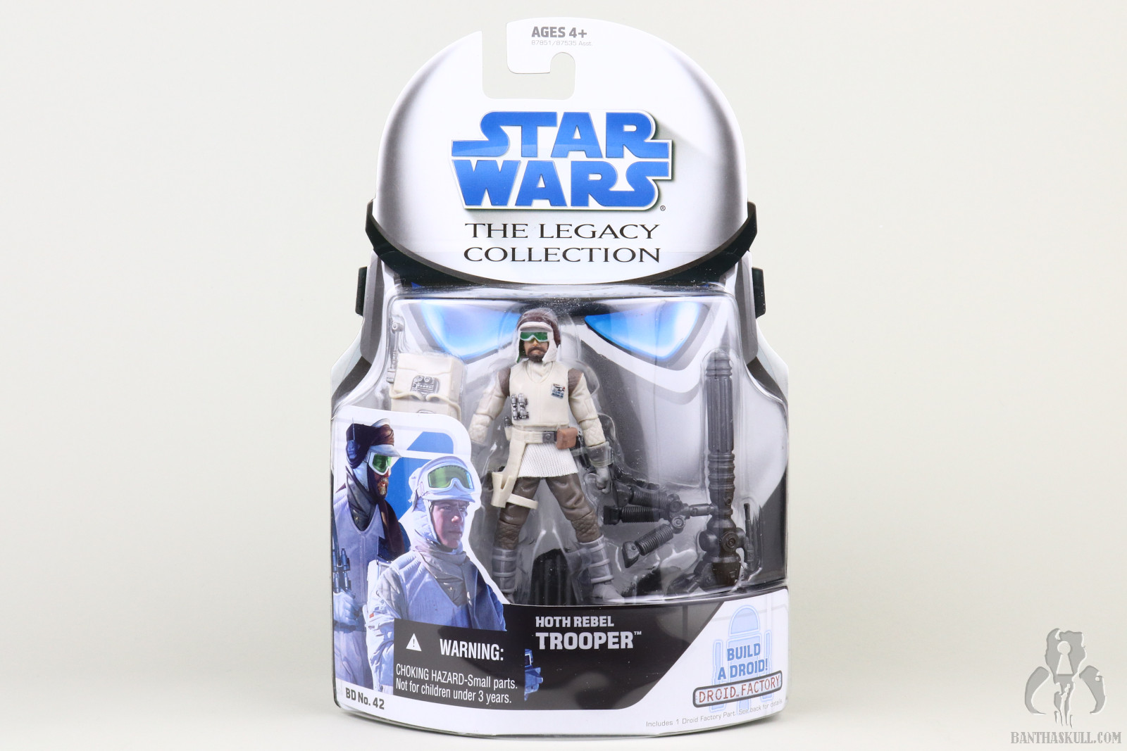 That makes 4 releases of that clean shaven figure, and 2 for the blonde bearded guy. That leaves BD42 as the only release of the dark haired bearded trooper. Does that make him rarer than the others? Probably not, since he was available in a few TLC mainline assortments, with a couple of different droid parts. I would venture to say that the “rarity” of this version lies somewhere between the more rare blonde, and less rare clean shaven, but I don’t know that for sure. So with all that, this is the “granddaddy” of the modern Rebel Hoth Trooper variant trio.