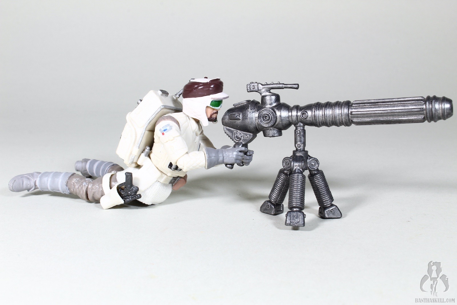 The figure does look great, and although some collectors may cringe at the mixed use of soft goods, the “skirt” doesn’t hinder the range of motion of the hips at all, and I believe still keeps it aesthetically pleasing. The paint applications are generally pretty solid. The figure comes with a pistol (with working holster), a removable open cold-weather hat, a removable back pack, and a 2 piece tripod-mounted mini cannon. There’s not much to complain about.