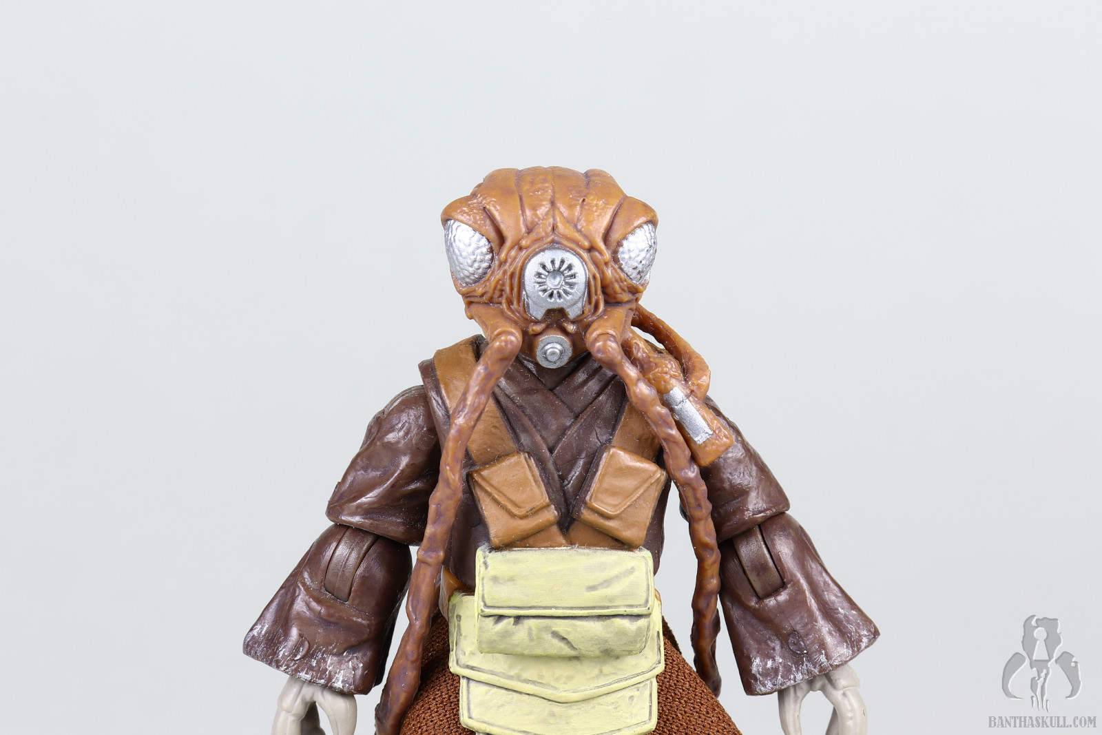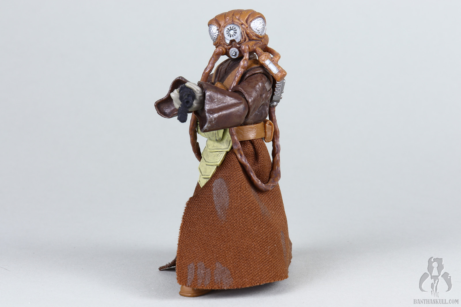 One neat thing to note is that the back pack and the attached breathing hoses are removable. Now, this is clearly not meant to be a display option as Zuckuss is left with face holes which Dannik Jerriko tried to make fashionable, but failed miserably. But in doing so, it allowed these components to be separately sculpted pieces which adds a lifelike layer of depth to the figure. While this figure can’t do things that are achievable by truly dynamic figures, I can’t bring myself to lower the score below the standard 7 for a super-articulated figure. This Zuckuss figure does a perfectly passable job of being a Zuckuss figure.