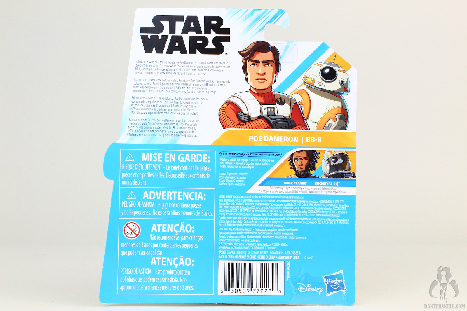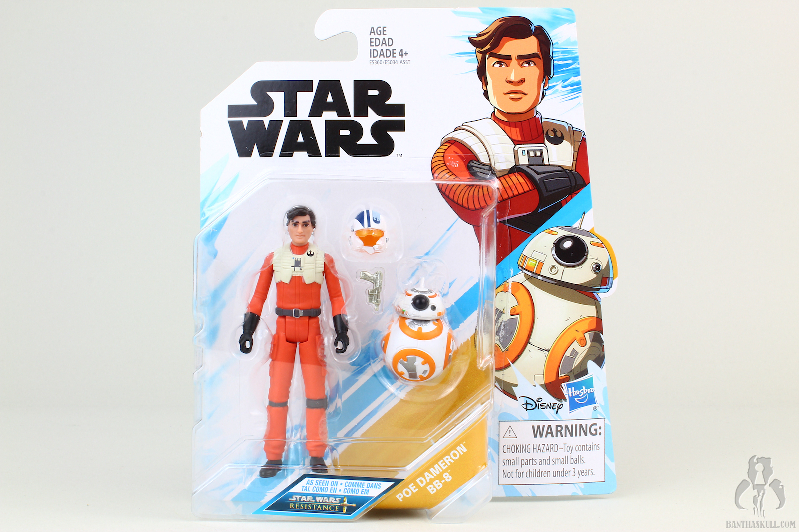 OK, back by popular demand, another review from the cartoony cartoon toon 5POA Resistance line. This is one of a pair of 2-packs released so far. We have Poe Dameron and BB-8. Poe is voiced by Oscar Isaac, who is one of several actors that reprise their live-action roles in animated form. The first season of Resistance takes place just before The Force Awakens. The story will apparently cross over the events of TFA, and I guess by extension TLJ, which could be interesting. In the cartoon, Poe recruits Kaz Xiono, and assigns him to spy on any First Order activity at the Colossus refueling platform, where he is placed under the watch/cover of mechanic/racer Jarek Yeager. While Poe comes and goes throughout the series so far, he leaves BB-8 on the Colossus to assist Kaz on his mission.