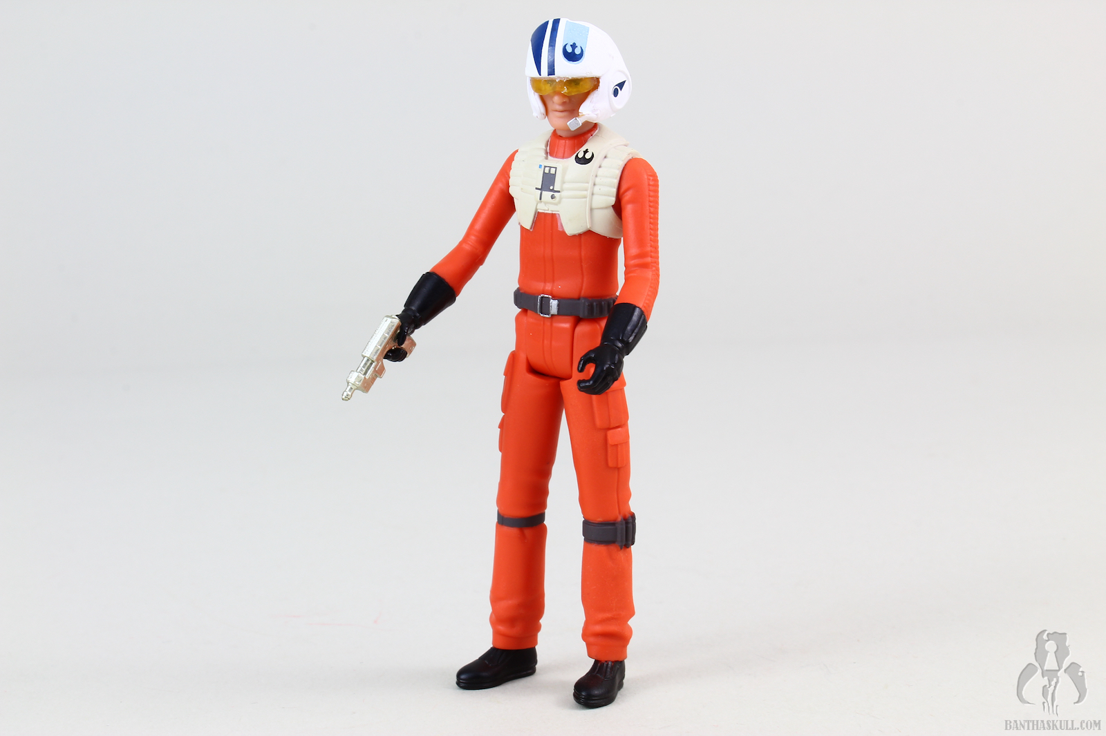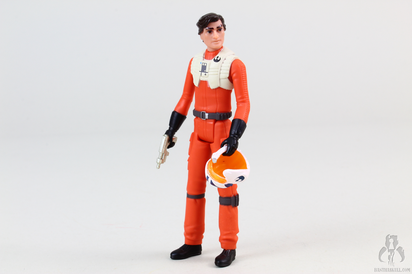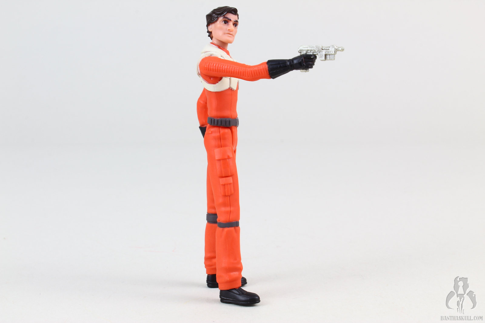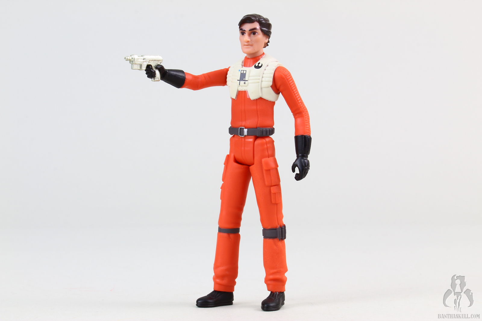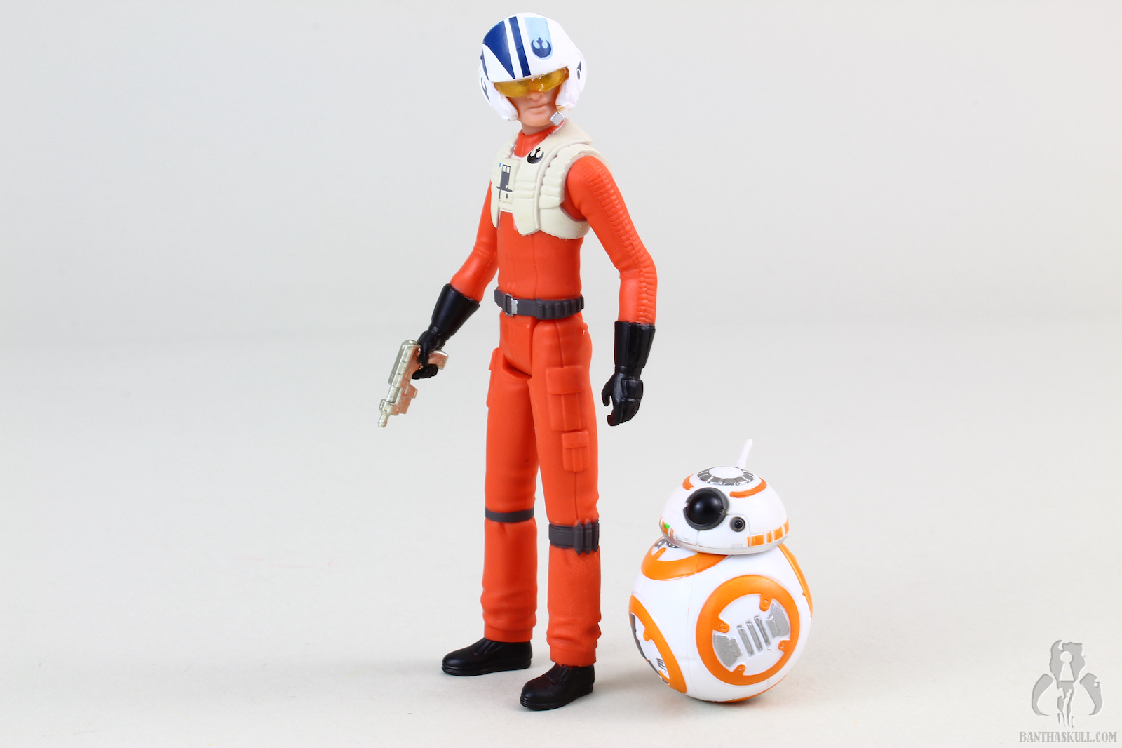 Poe and BB-8 are sculpted to look like their on-screen animated counterparts. There’s no denying that Hasbro got what they wanted, and nailed these sculpts. If you’re a fan of the cartoon vibe, you’ll like this (and all the Resistance figures). This is a highly stylized version of Poe Dameron. The colors are bright and well applied, the uniform is simply sculpted and has zero texture to it, the face and hair are sharp and pointy, but true to the source material. Like those wacky Disney Infinity figures, or whatever they are called now, we have a somewhat interesting interpretation of Oscar Isaac in animated form, but give me the TBS version any day. This Poe comes with a removable helmet, which is a technological leap over the last 5POA version of the character, which was released in the TFA line with the atrocious and laughable idiot visor. This helmet has a translucent visor, and fits over the head nicely. The figure is painted fairly sharply, and the face was executed well. Poe comes with a single gold colored blaster, which fits in his hand or in the holster.
