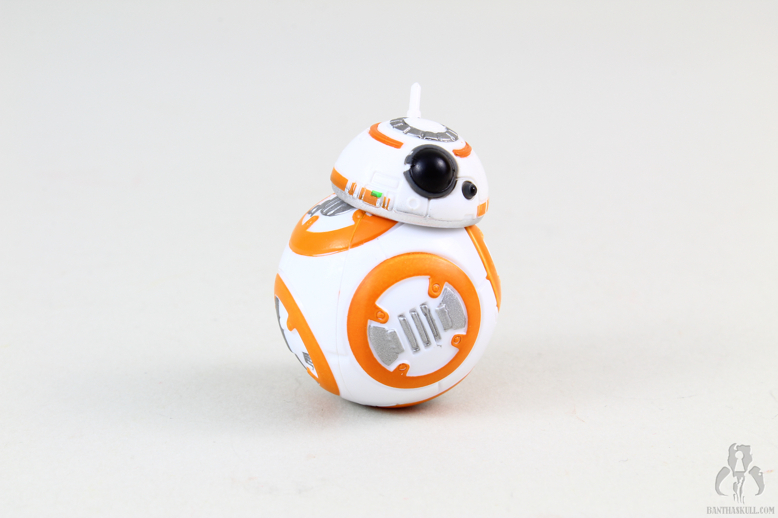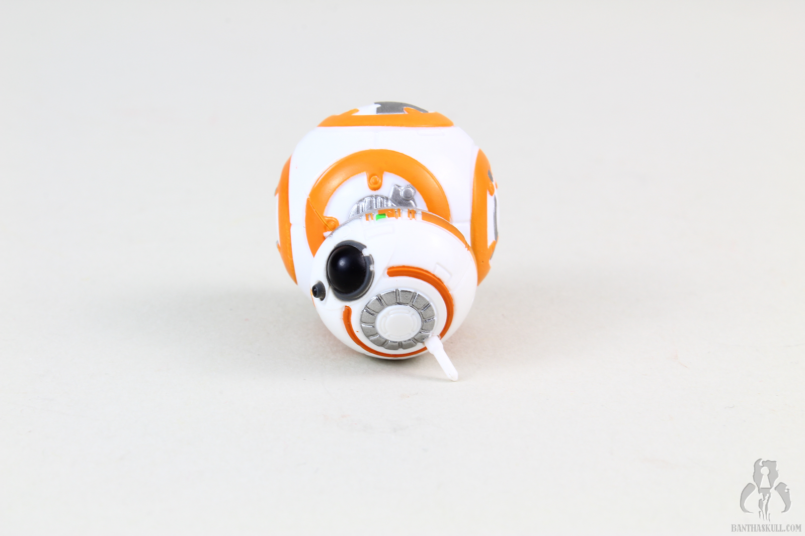 BB-8 is also part of the set. As with previous releases, his only articulation is a head that can turn 360 degrees, and has some limited range to move around the top of the ball-like body. BB-8 is painted and sculpted well. In the comparison shot, you can see that he is dwarfed by his realistic version. Besides that, the sculpt would be passable as non-cartoon, even though you can make out the differences clearly when the figures are side by side. This BB-8 doesn’t have a strong balance point, so it was a bit tricky to get him to stay upright while taking photographs. I understand Hasbro wanting to include familiar characters in the line, but here I felt like they definitely could have just included any of the previous movie inspired BB-8’s instead of making a new sculpt for this line.