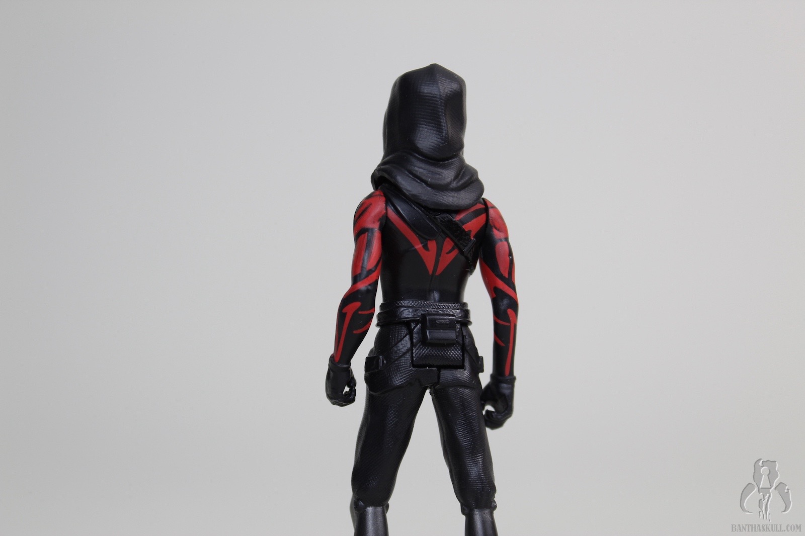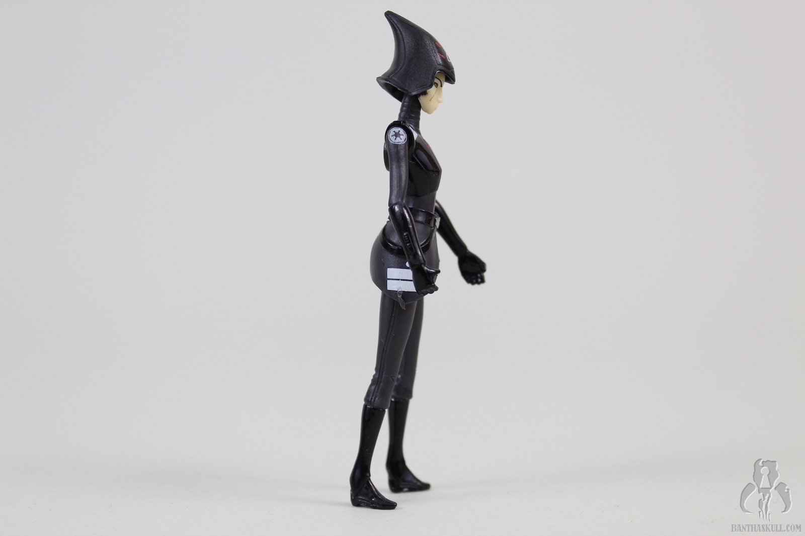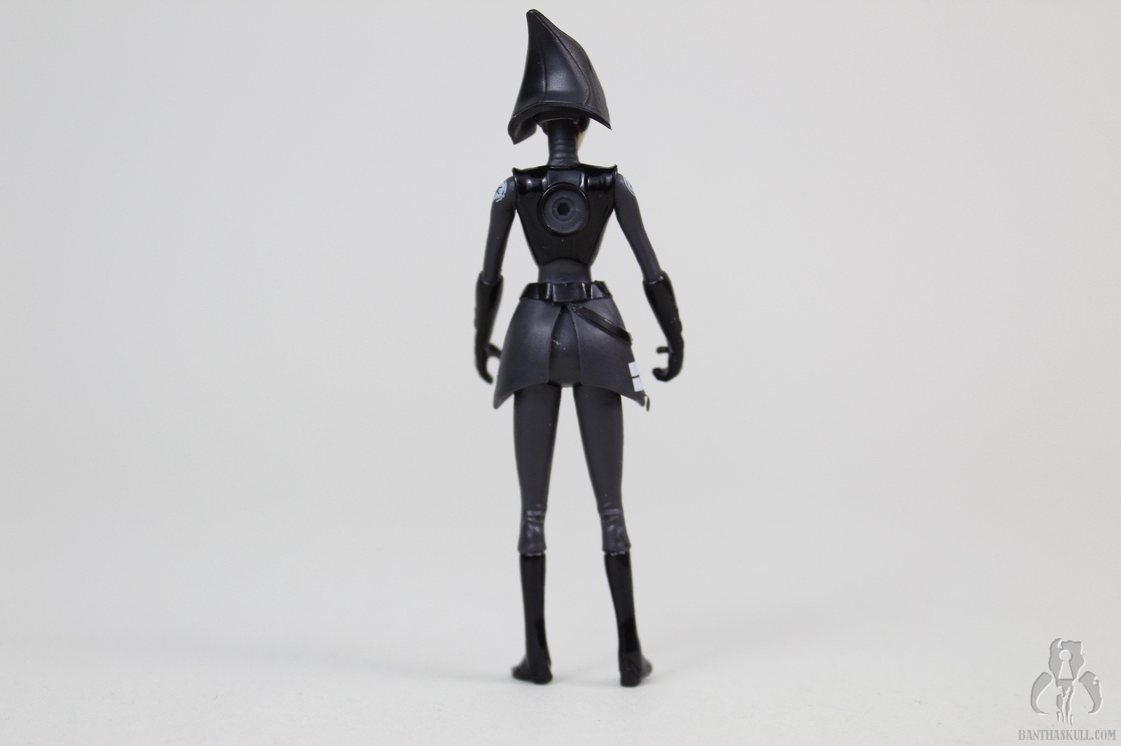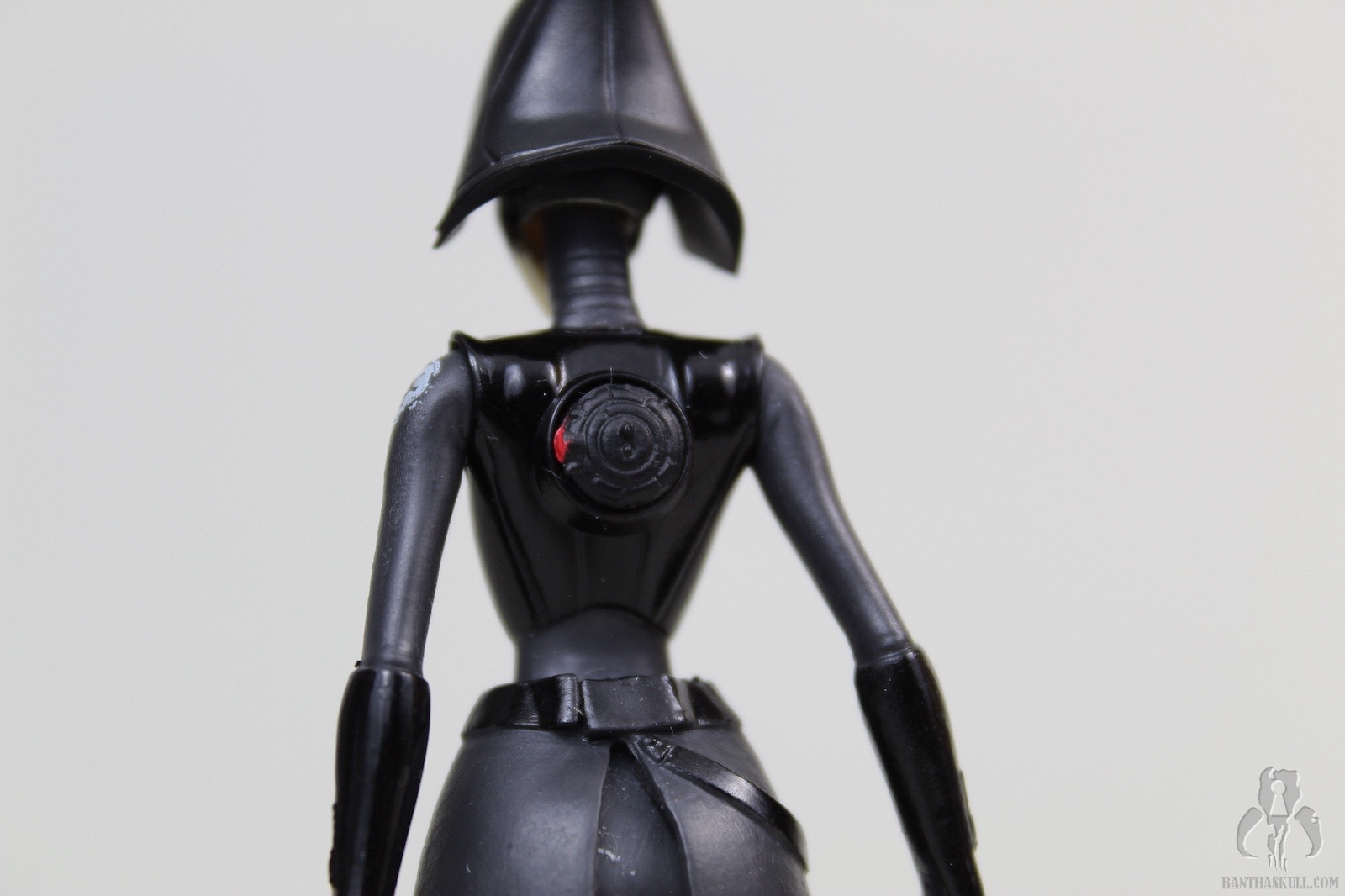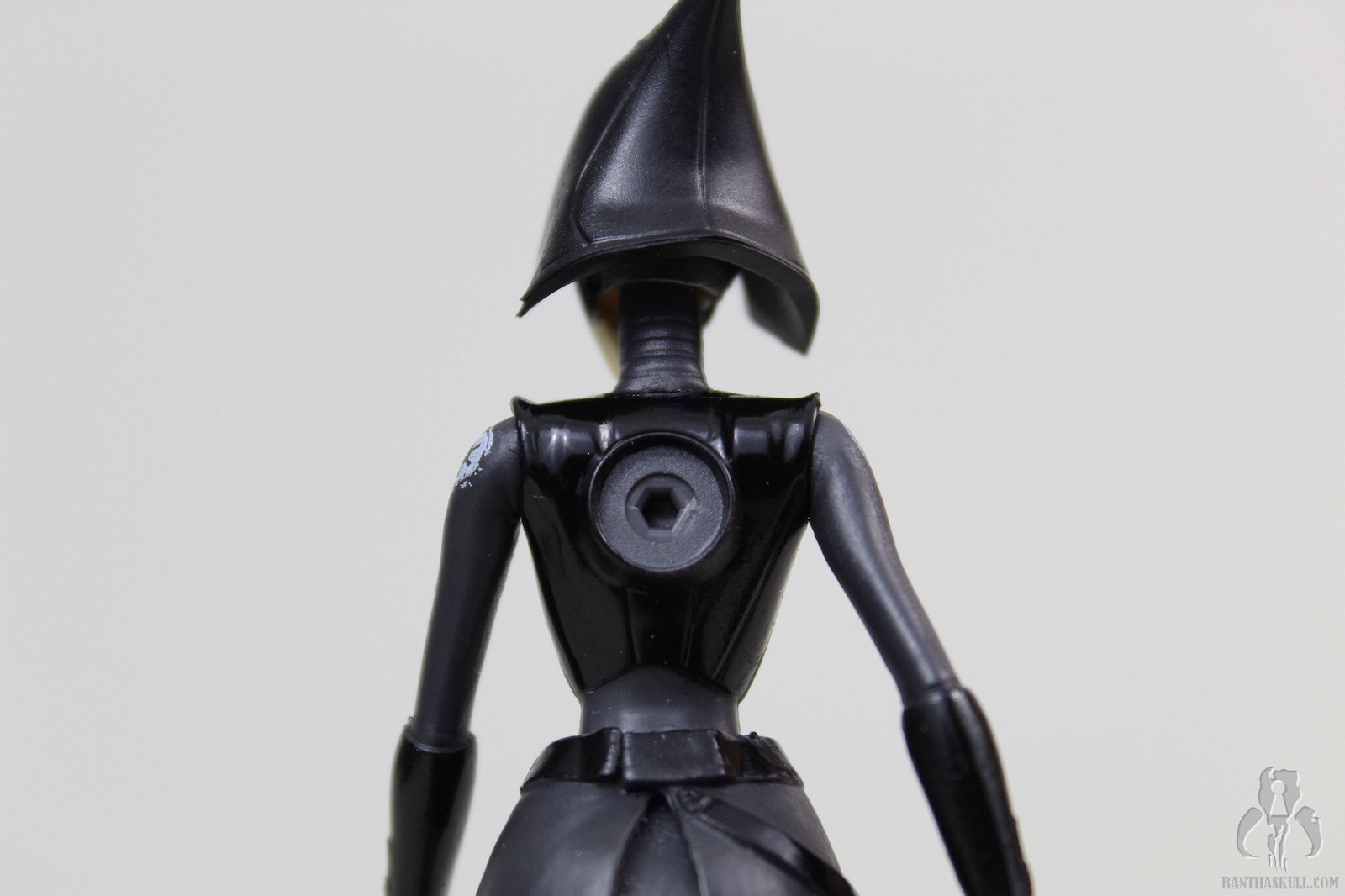 Now, for another successful aspect of the figure, she comes with a mask which does fit tightly over her face, allowing for an alternative display option - if you can get her to stand. Oh, did I mention that there are no peg holes in the feet? No? Well, there are no peg holes in the feet, so there’s no way to get her to stand other than leaning her against a wall. Anyway, the last bit of frustration is with the very strangely executed mini-droid. Now, it comes in two parts, the head, and the legs. The head is apparently intended to fit into the small hole in the figure’s back, mimicing the droid being folded up and tucked away in some backpack compartment. It’s a good idea, in theory, but I feel like the chances of losing this tiny piece are too high to bear. When unplugged from the figure’s back, the droid’s legs can be attached to the head, so it is meant to look like a tiny probe droid. It just looks like a bug. Unfortunately, it’s a good concept that just wasn’t executed all that well.