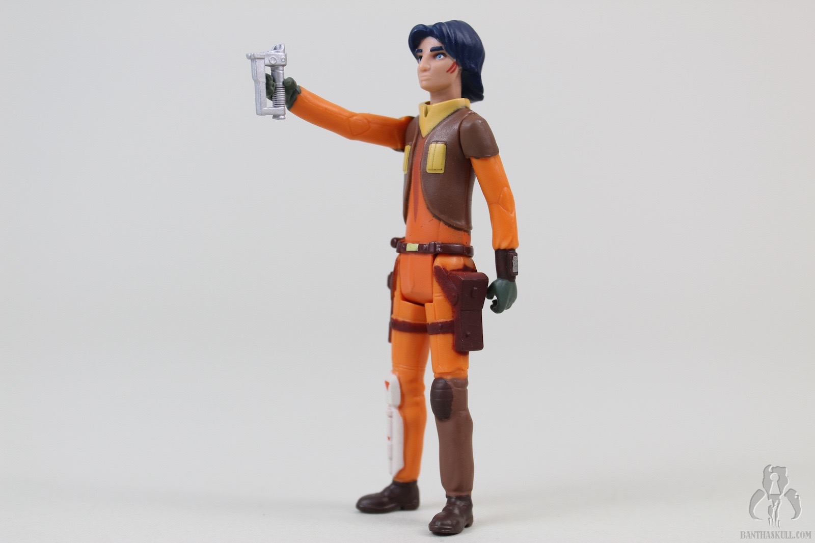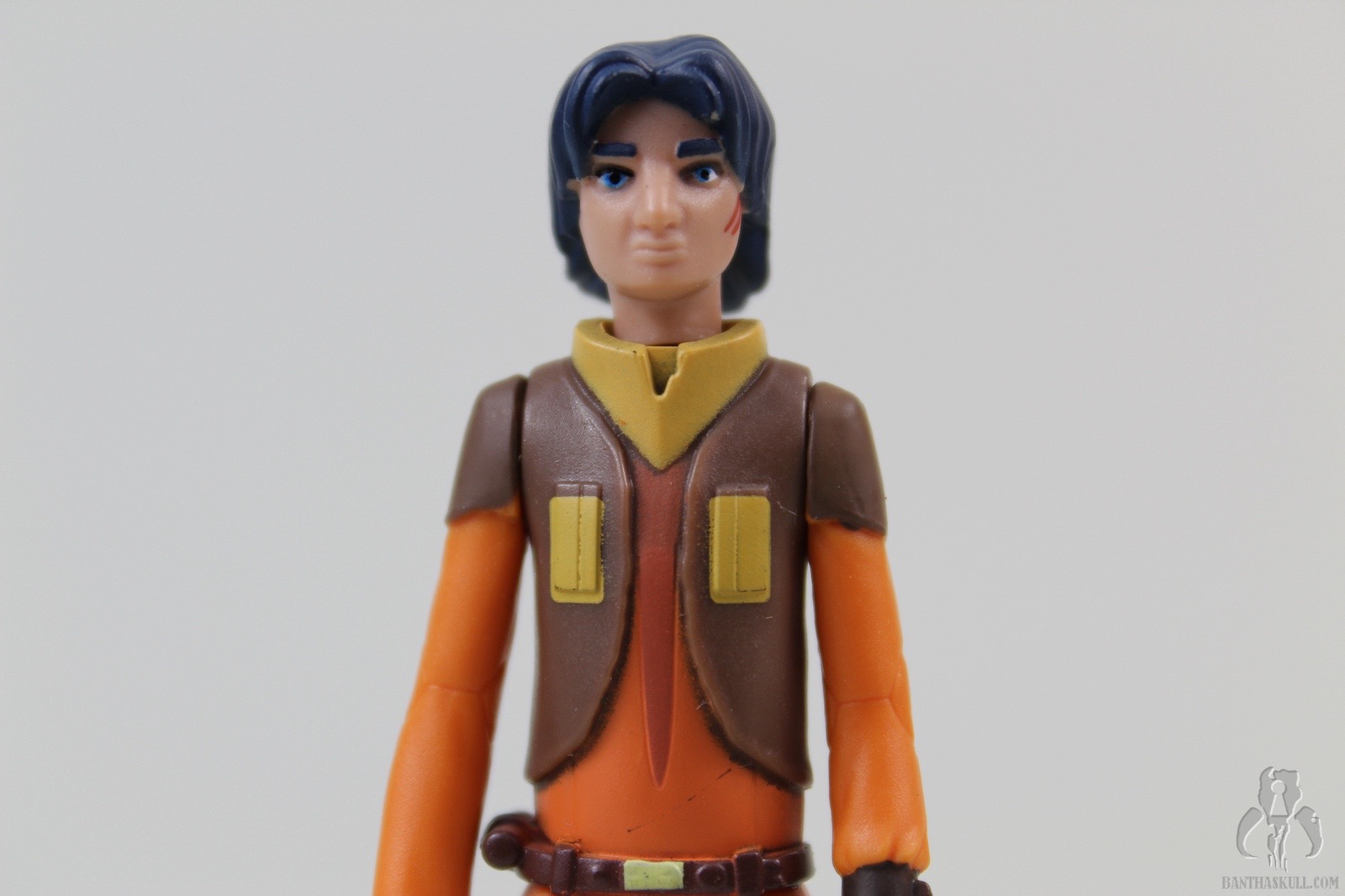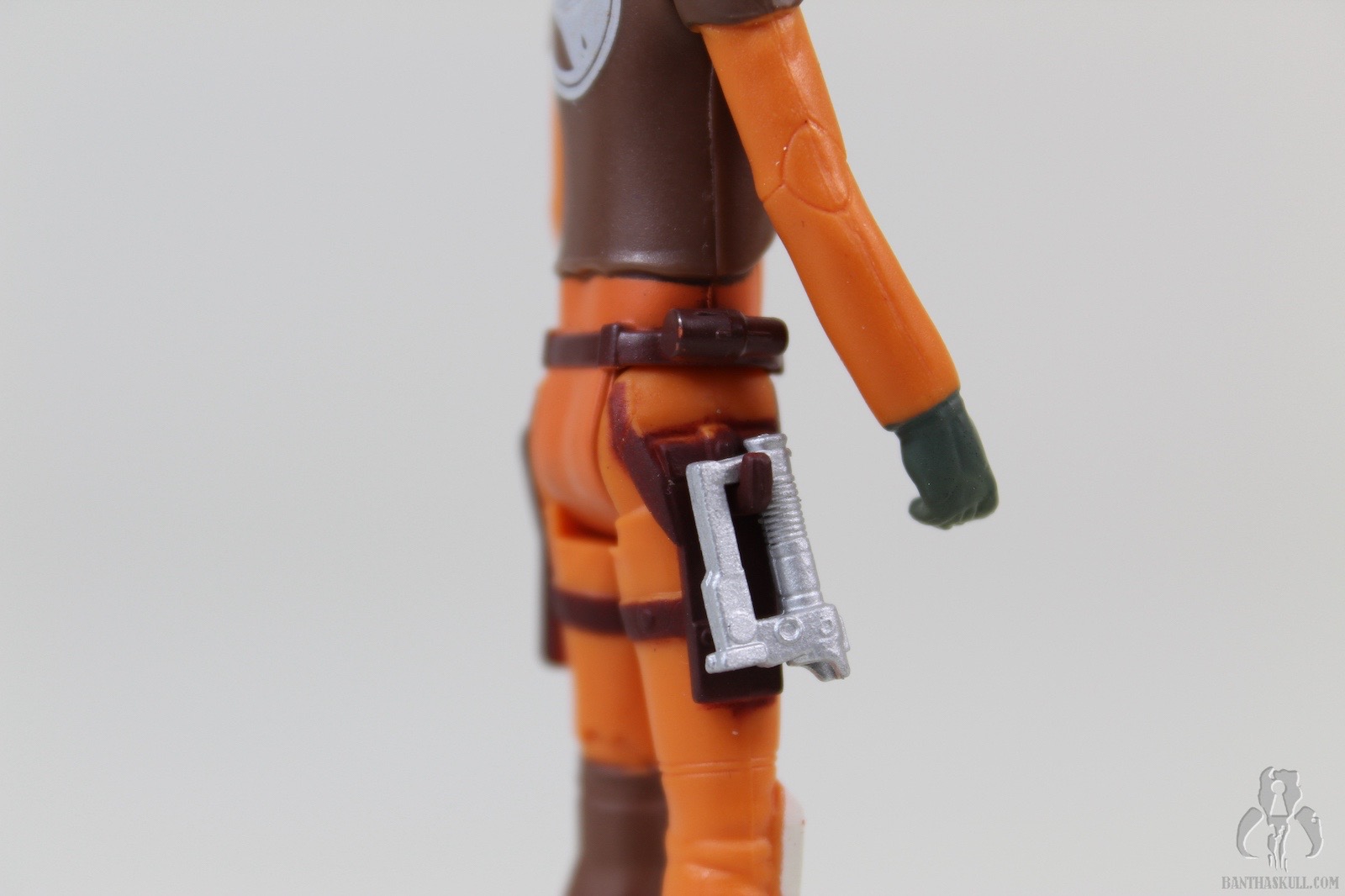 The Ezra Bridger figure is different from the previously reviewed TFA basic figure, which itself is a repack. This figure features a few distinctive differences. The paint applications are a bit different, which may or may not be preferable, depending on your tastes. The face has painted battle scars on Ezra’s left cheek, which have been absent from previous incarnations of the character. He has a belt / ammo pack / weapon hook assembly that is sculpted onto his legs and waist.