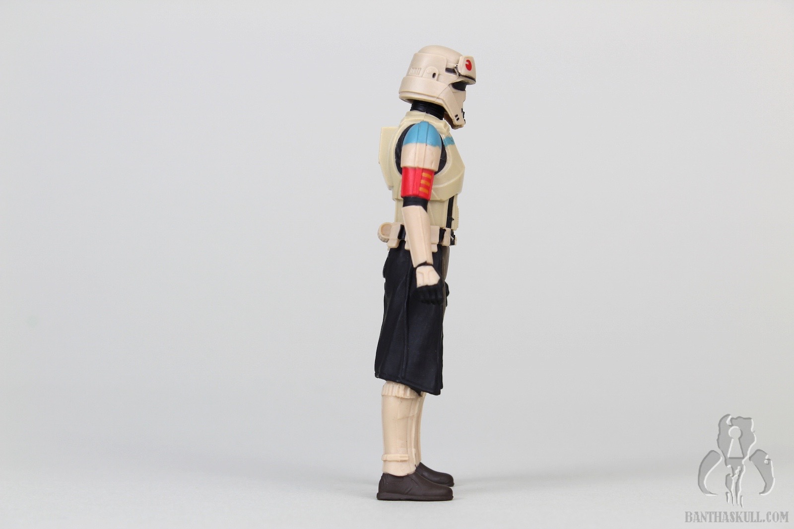 So what do we get for our trouble? You get a trooper that has been somewhat difficult to find at retail in any variant at this scale. The Walmart super-articulated basic figure was darn near impossible to find, although reports are coming in that some inventory is pushing through the chain’s hateful logistics pipeline and onto shelves - almost a year later. Even the 5POA basic single-carded version was tricky to find. They were also generally not found in large numbers at brick and mortar. So this has likely been your best chance to own the character. It does it’s 5POA job well, although the paint applications are a bit sloppy around the helmet “face” and in other parts of the figure. The squad leader designation is indicated by a light blue color across the shoulders and upper chest, and the trooper also sports a kama. It’s certainly not a bad figure, but as we’ve said in the past, troopers definitely suffer when they aren’t super-articulated. In the comparison shot with the Walmart figure, you can see the paint and sculpt details are far superior to this version, and the articulation renders the 5POA version nearly obsolete. In the image, the SA version seems to be wondering how he could possibly be taking orders from this 5POA schmuck. You’d want this half of the pack mostly because the trooper is tough to find, and if you want this particular rank variant.