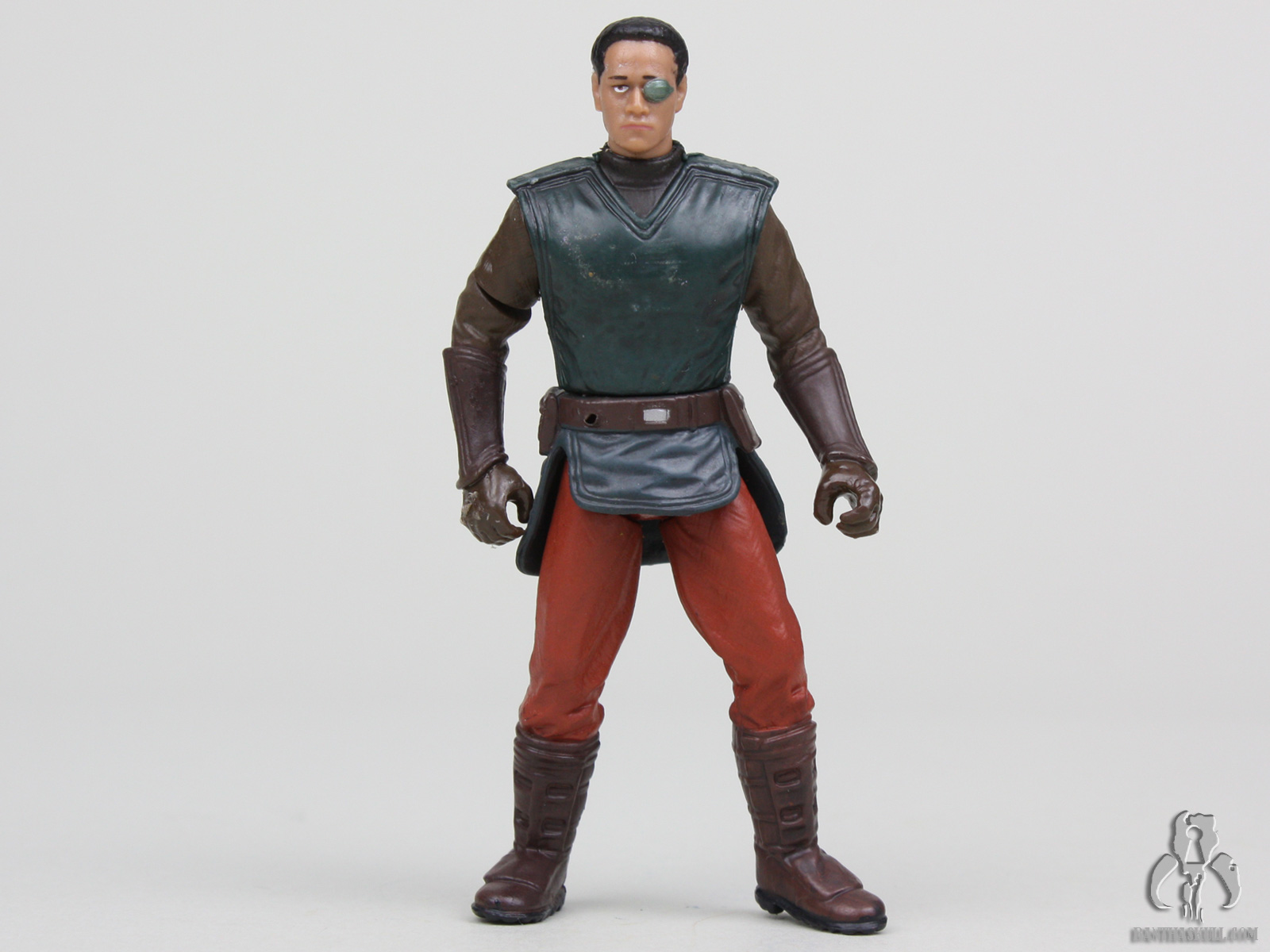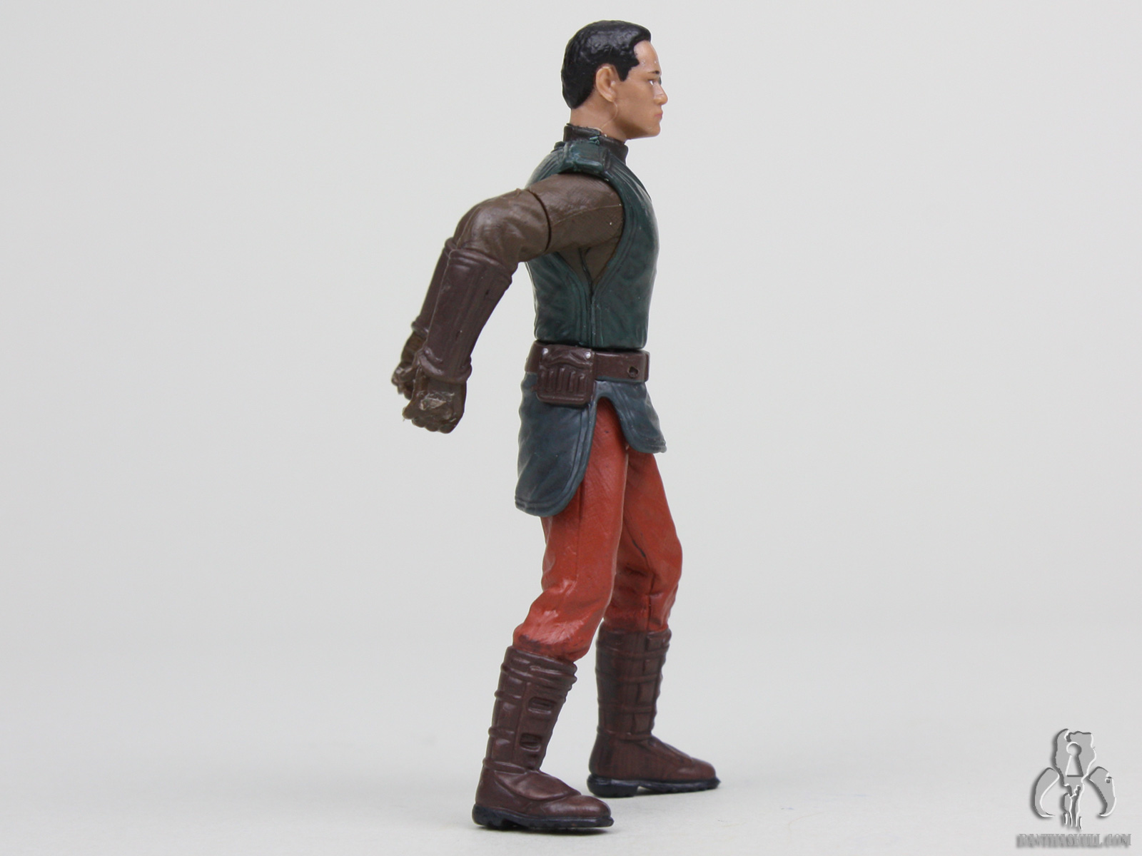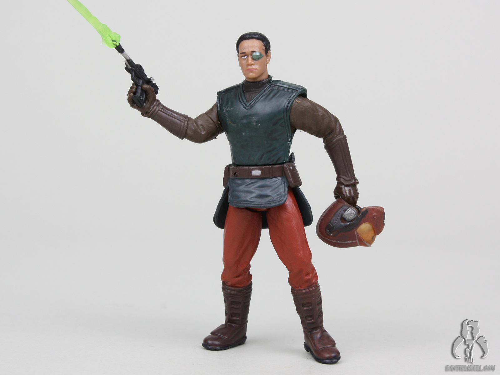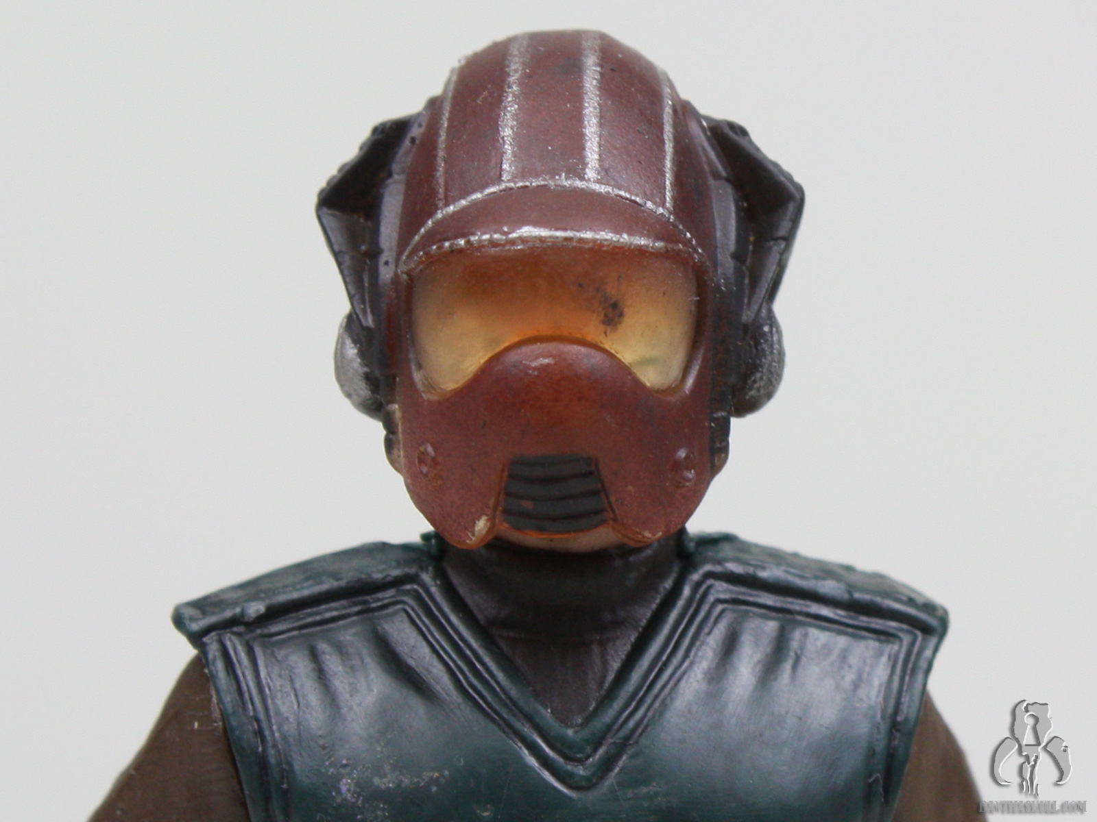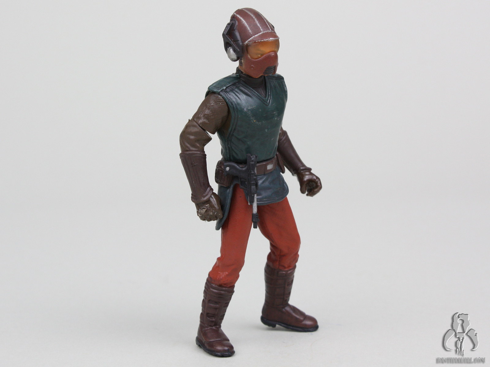 Attack of the Clones consisted of a lot unnecessarily complicated or illogical assassination attempts on Padmé. The movie opens with one such attempt. An explosive device blows up Padmé‘s starship, but not while the ship is in the vacuum of space where all passengers would surely have died, but after it lands when the passengers are deboarding. This is when such an assassination attempt would offer the greatest possible chance for survival which serves the plot. Even though the attempts on Padmé‘s life were the central mystery of the movie, she somehow suspected an attempt and traveled in disguise as a Naboo pilot as did her head of security, Captain Typho, and that is the source of this figure.