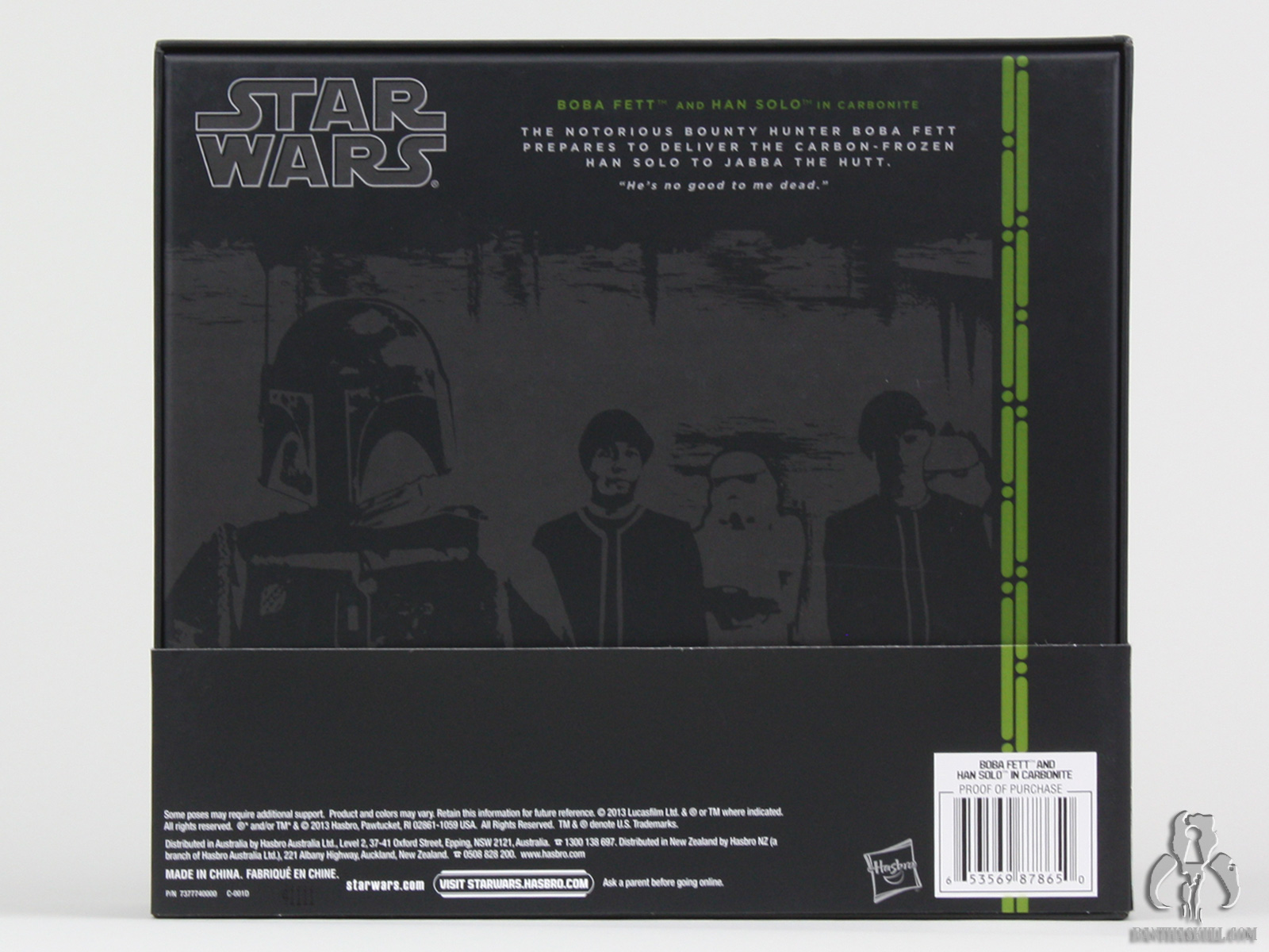 The hat box style packaging has a subtle Boba Fett t-visor embossed on the front and the familiar Black Series ghost image on the back. Even though I enjoy collecting packaging for items that receive mass brick and mortar release because it recalls the glory vintage Kenner days for me, I don’t really care too much about the packaging for items that are one-off exclusives. Regardless, it is nicely done, but not something that would make the set worth tracking down on it’s own. There is one reason to track this set down and that’s the aforementioned Cabronite block. If that doesn’t interest you, you are blissfully off the hook. The base Boba Fett figure stands at an 8 out of 10, but the hovering Carbonite block does make this set “more than the sum of its parts”. When combined the two pieces make for a very nice display and pushed me to upgrade the score of the set to 9 out of 10.