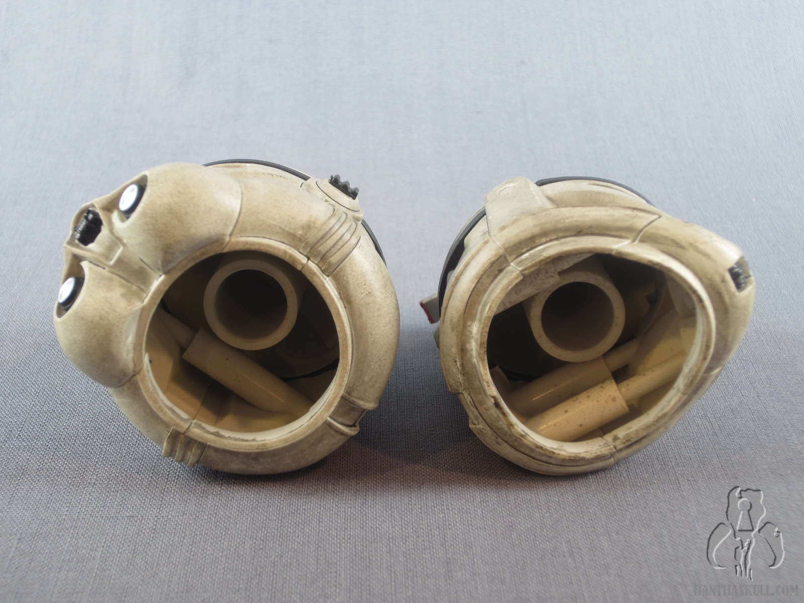 The helmet sculpts are great. I feel the Phase 2 helmet is a marked improvement over the previous “Vader’s Fist” version. The weathering and battle damage details are great, and also an improvement over the first version. It has a grimier feel to it, with more natural looking scuff marks and damage. The overall effect is tremendous. I’ve seen some online grumblings about the weathering effects on the all white “veteran” version, and the pictures I’ve seen lead me to believe the artists at Sideshow outdid themselves with this particular 501st version.