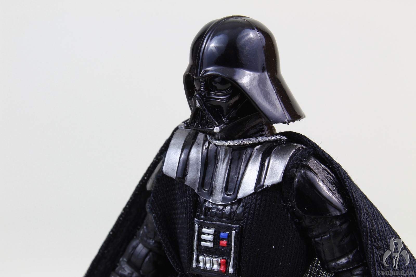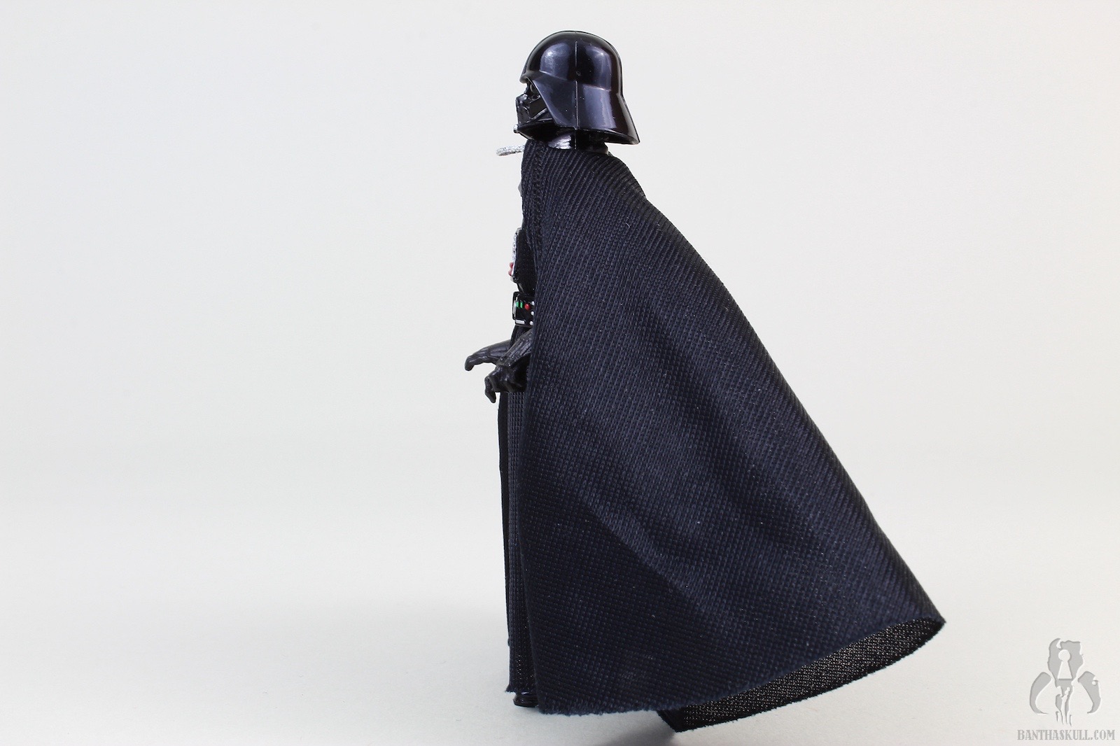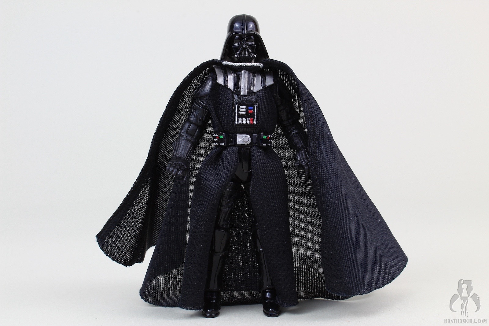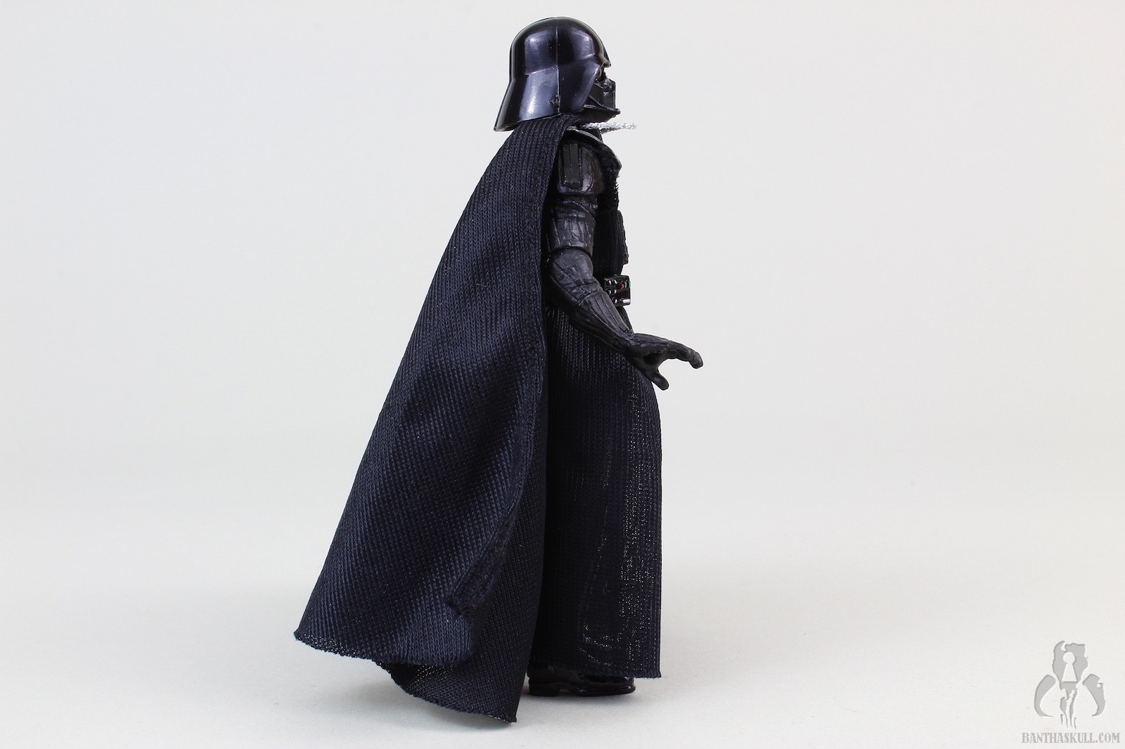 Gone is the removable helmet familiar to most Darth Vader figures. This is one of the rare cases where collectors will applaud the reduction in functionality. Having one removable helmet Vader is great to recreate the final scenes of Return of the Jedi. Having every Vader figure come with a removable helmet isn’t so hot since the helmets don’t always stay seated properly or will fall off under only minimal provocation. In short, the cast helmeted head looks and works better. Lets hope Hasbro needs to cut costs on clones down the road so the ridiculous oversized buckets on those figures can be deleted.