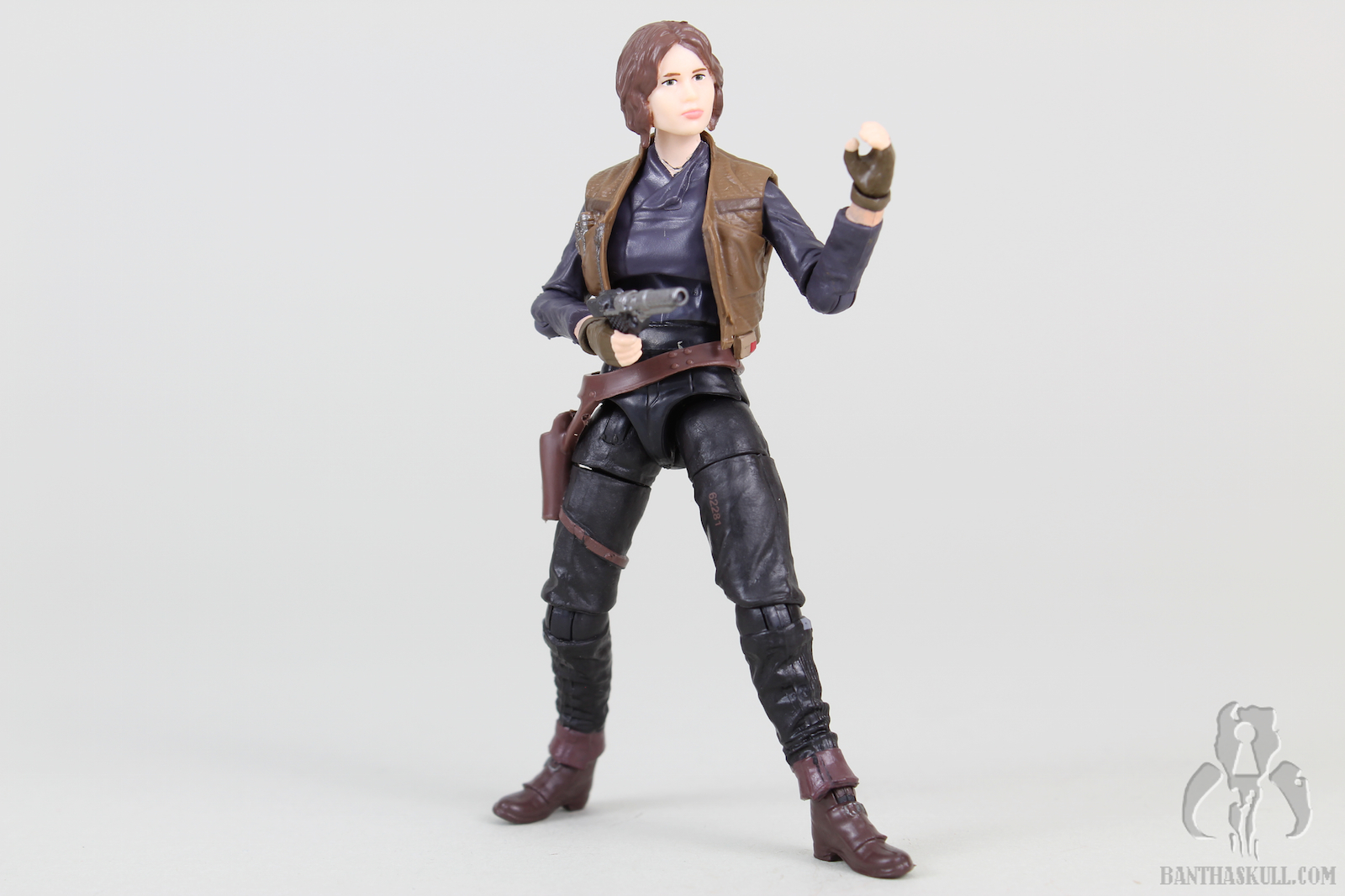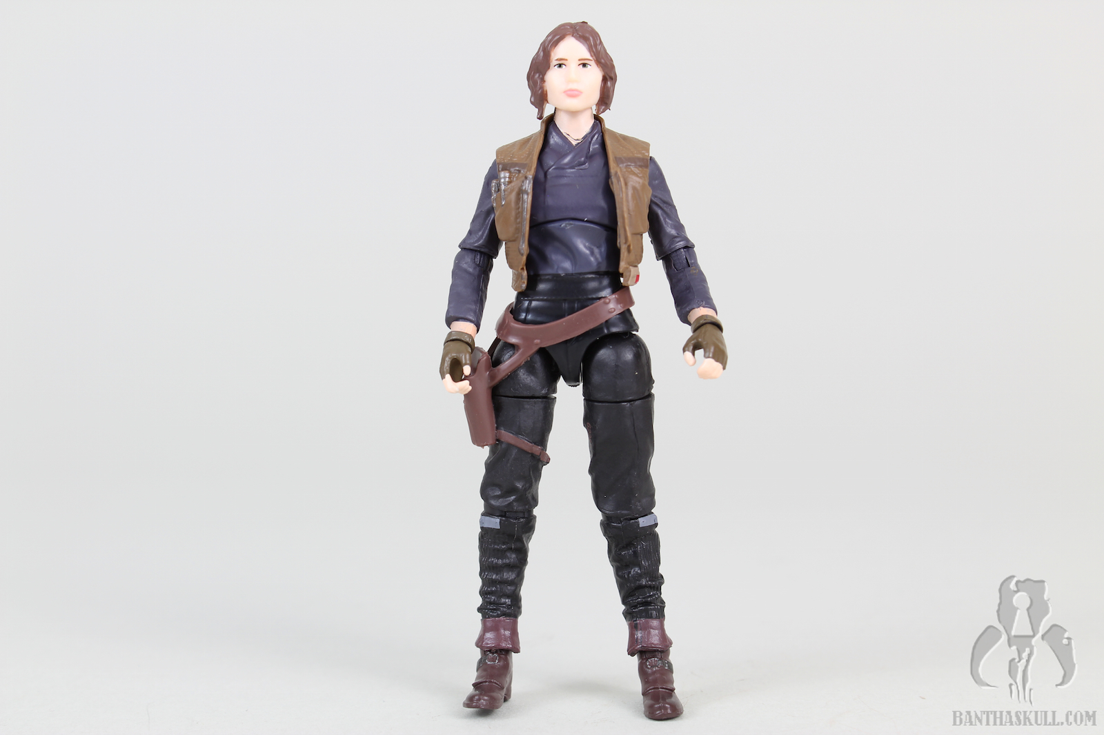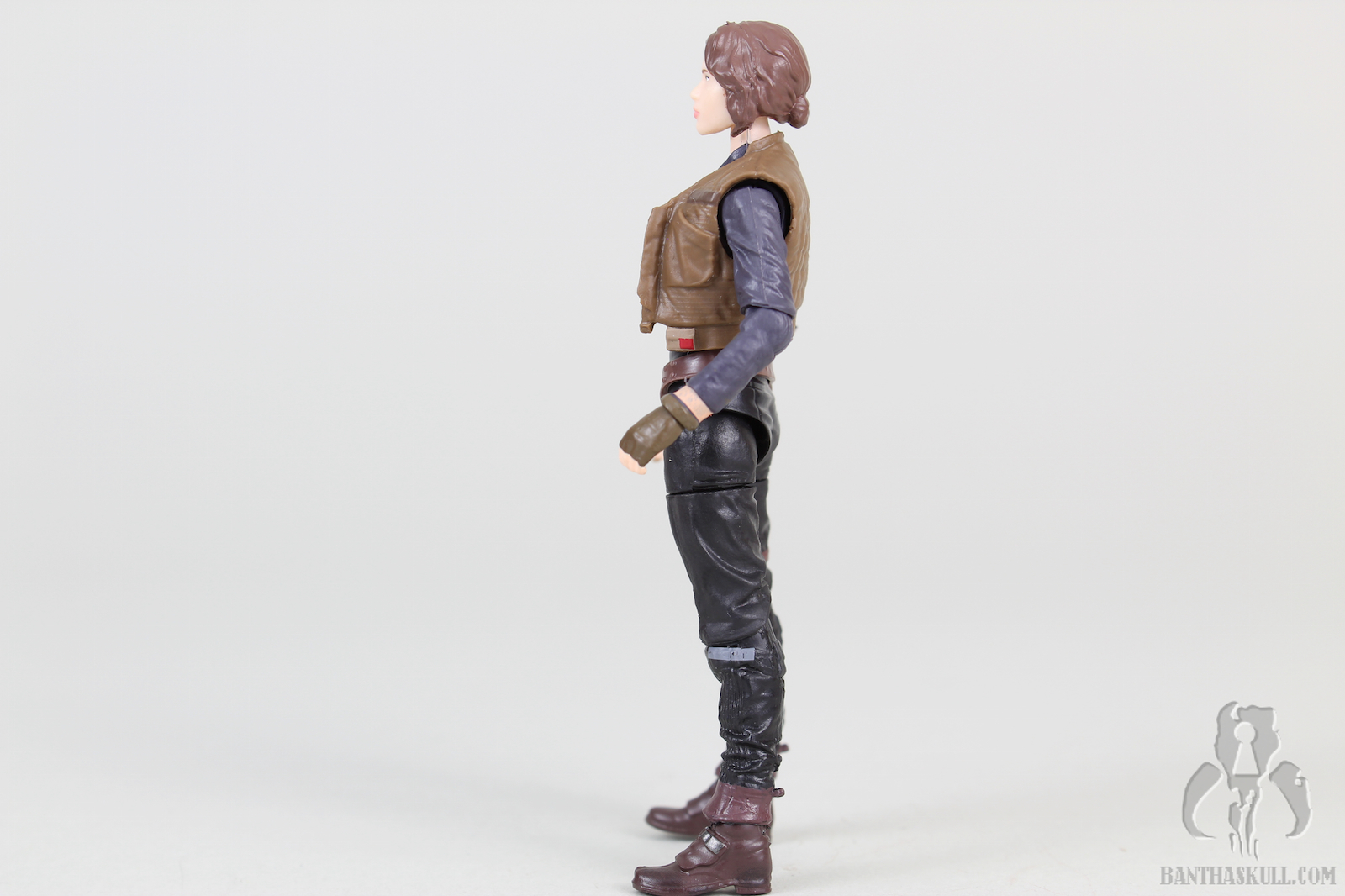 Jyn has 14 points of articulation, just like Cassian. However, there is a slight drop in posability because the wrists are swivel only, and do not have the two-way articulation as does Cassian. It suffers from “diaper crotch”, which is unfortunate. While the belt and holster do mask this a bit so it’s less offensive than on, say, Resistance Tech Rose, it still stands out too much and definitely impacts the aesthetics of the figure.