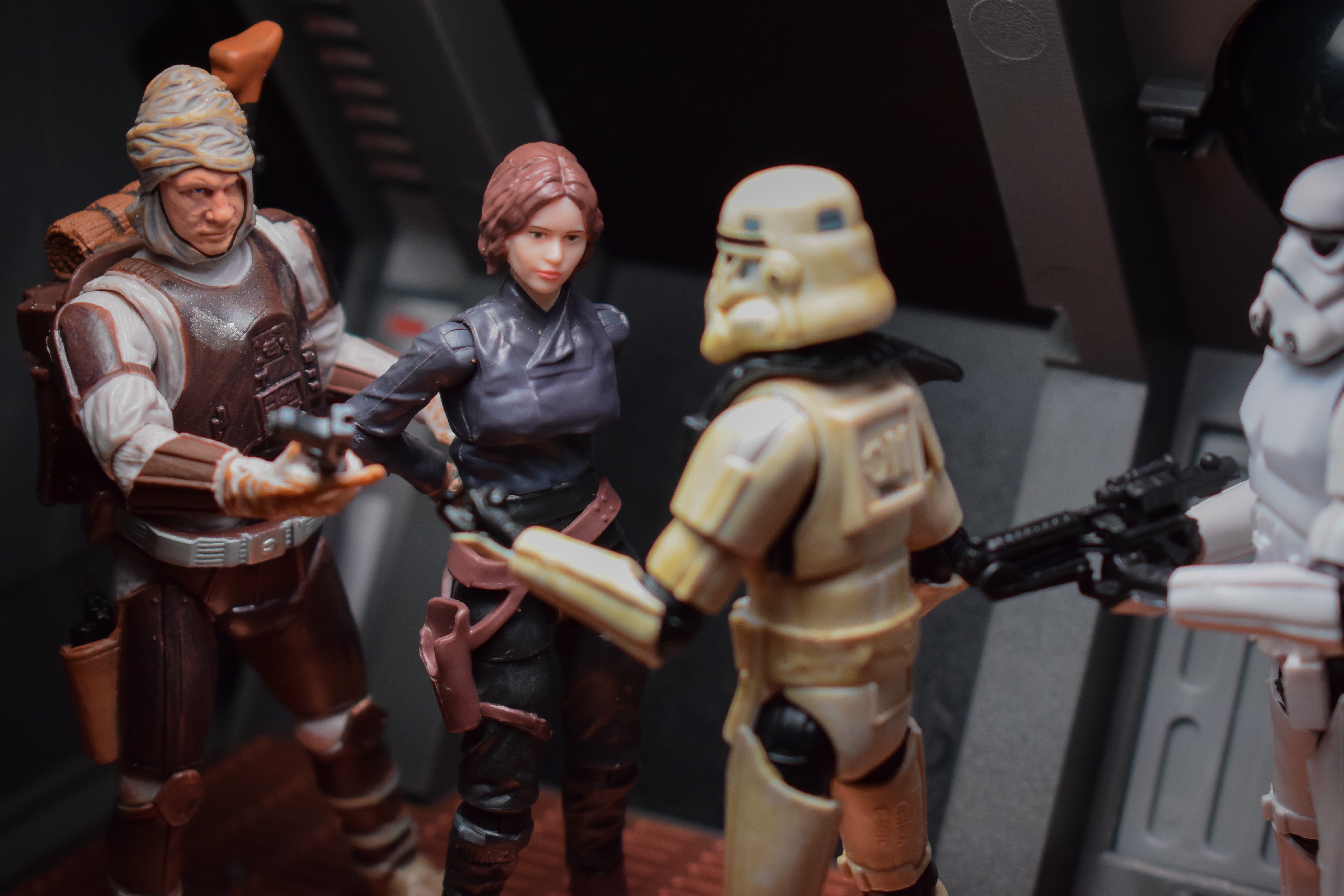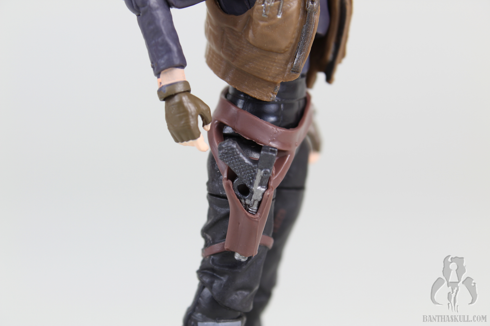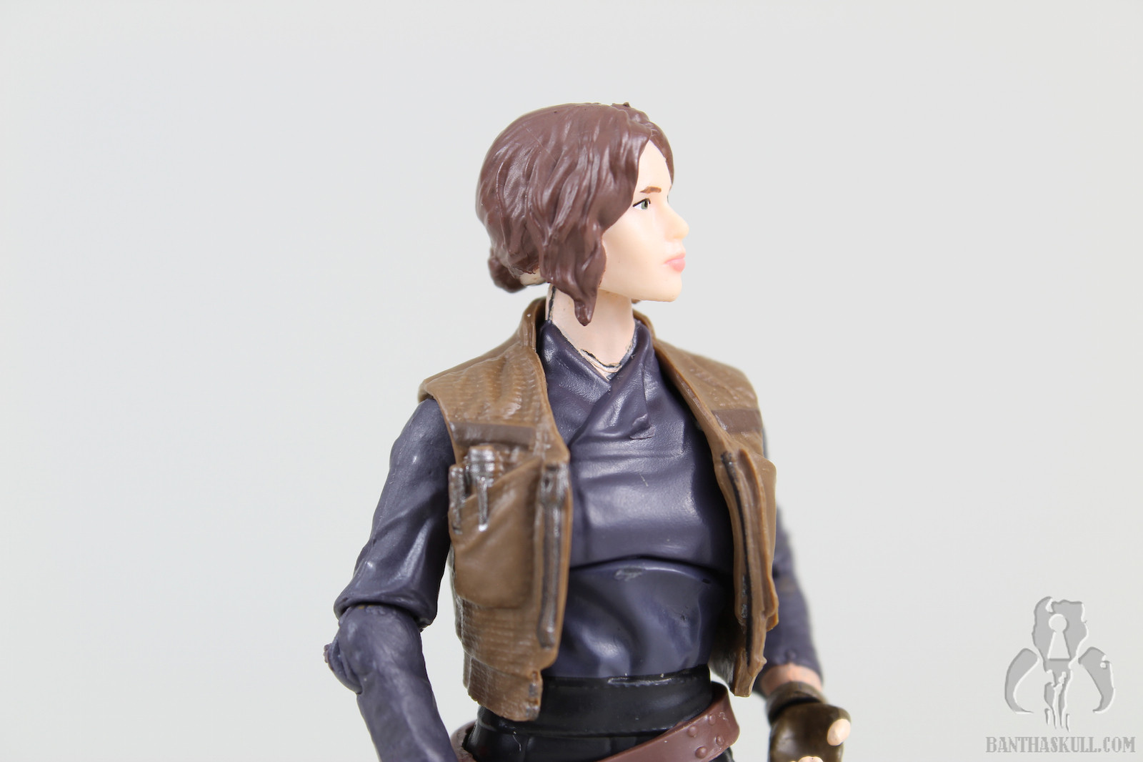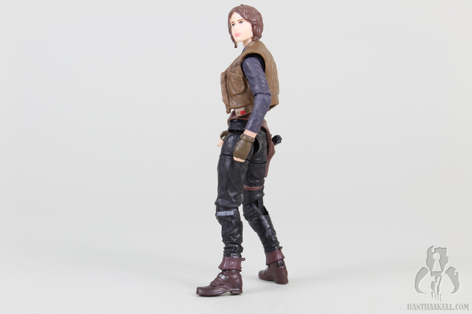 Jyn has 14 points of articulation, just like Cassian. However, there is a slight drop in posability because the wrists are swivel only, and do not have the two-way articulation as does Cassian. It suffers from “diaper crotch”, which is unfortunate. While the belt and holster do mask this a bit so it’s less offensive than on, say, Resistance Tech Rose, it still stands out too much and definitely impacts the aesthetics of the figure.