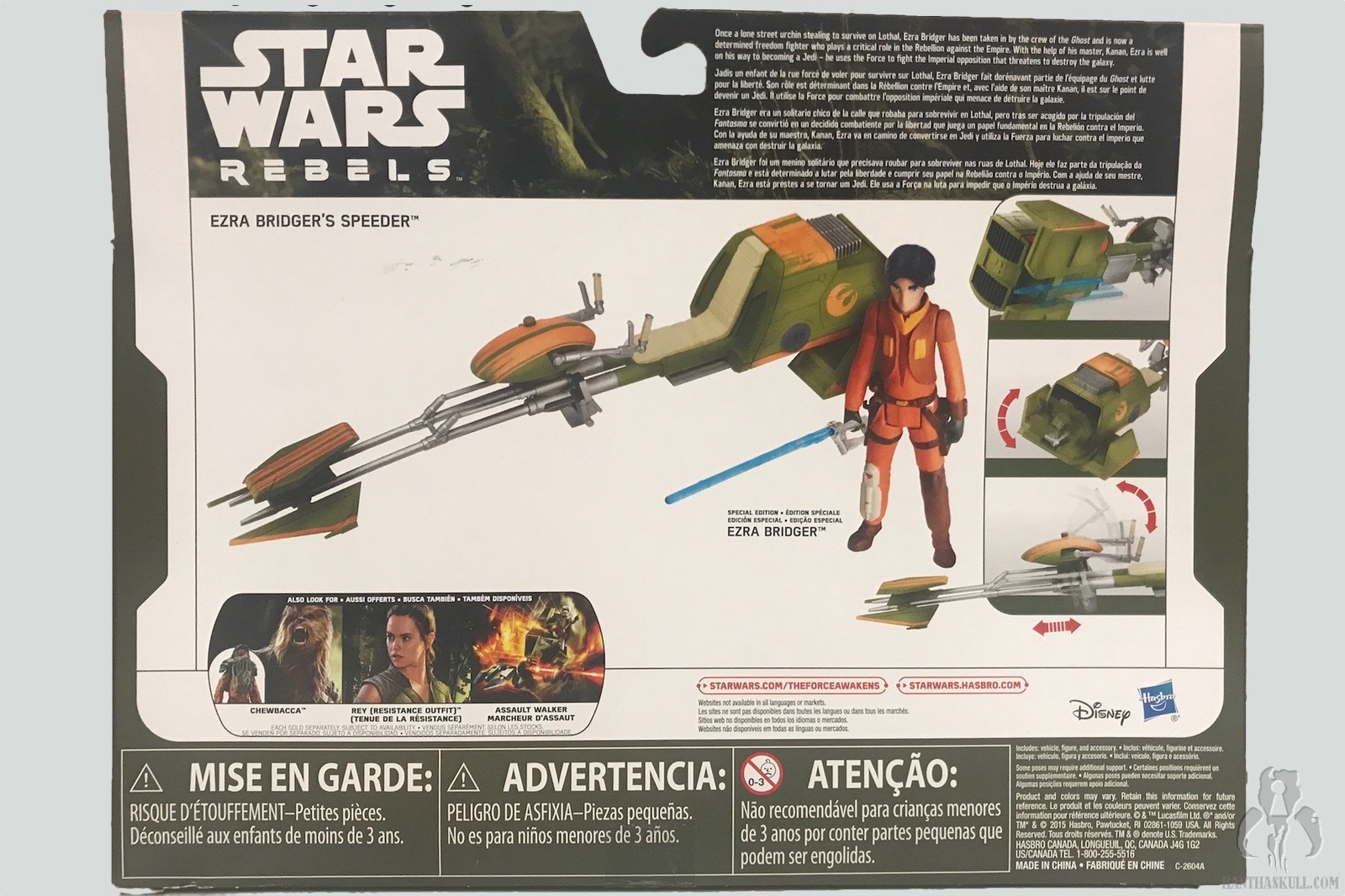 If you were listening closely to the foreshadowy music that accompanied the Ezra Bridger TFA basic figure we reviewed yesterday, you would have expected this item as the follow-up review. One thing to note, this set is a straight repack from TFA. It was carried over in the Rogue One vehicle assortments for some reason, even though it didn’t seem to be a particularly awesome seller from my point of view. The images of here are from the Rogue One version. Only the packaging is different.