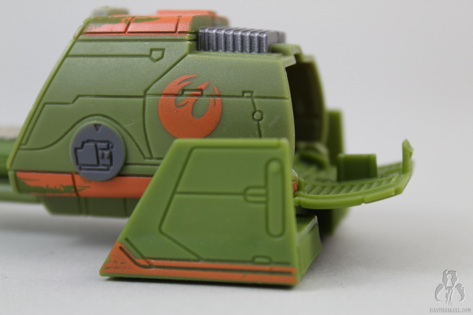 The speeder bike is a nifty little vehicle. There’s not much to it from an action standpoint, but Hasbro added a few hidden features which might bring a smile to the long-time collector. The sculpt is good, as are the paint applications. The speeder bike is an imperial model, which Ezra had acquired and repainted himself. The vehicle features twin canons at the nose, but these do not contain any launching missiles, nor does any other part of the vehicle. I found this a bit odd, but for me, I can dig it because as a collector, I live in constant fear of losing blast effects and missiles, so I can sleep easy with this particular toy.