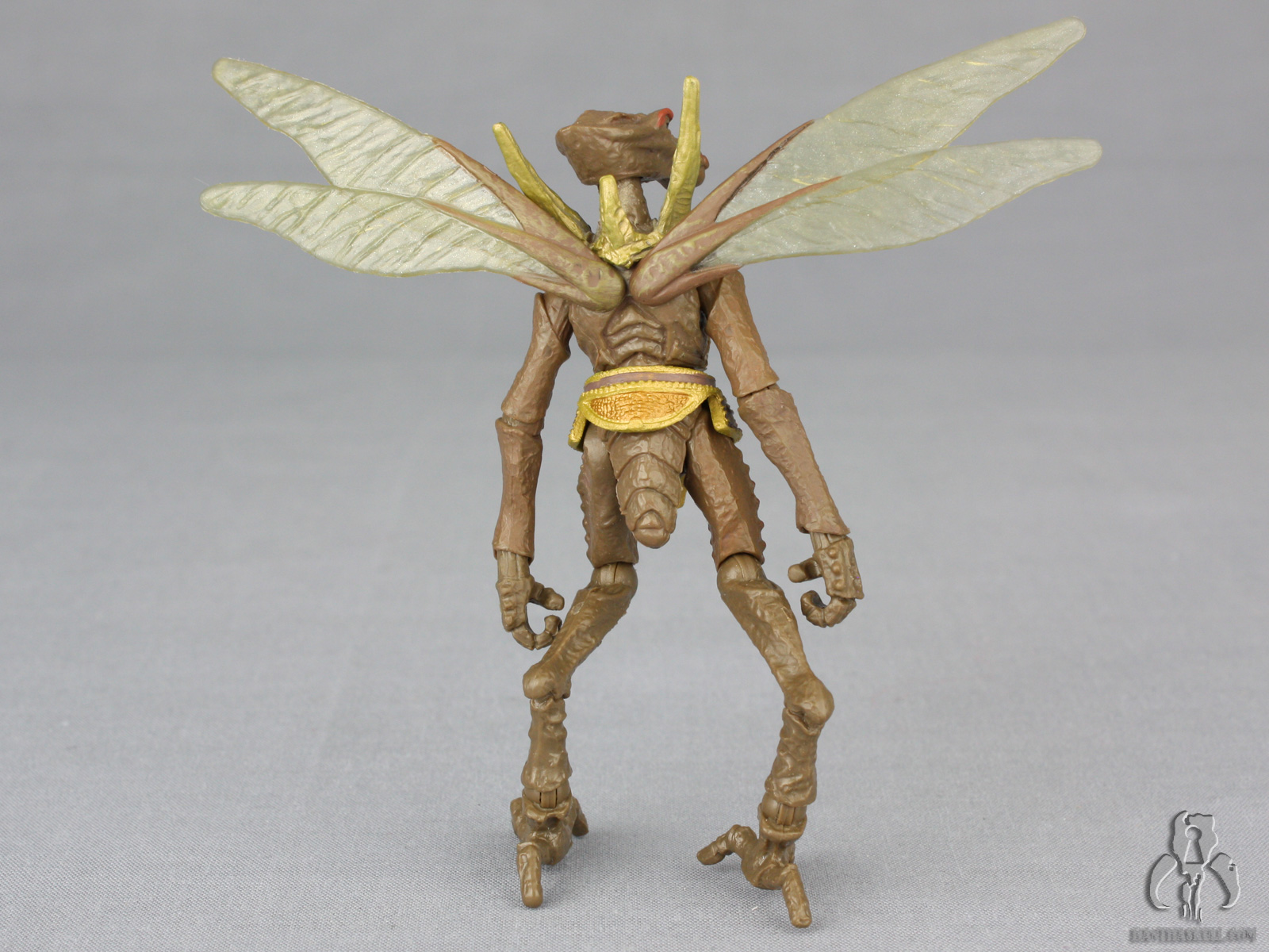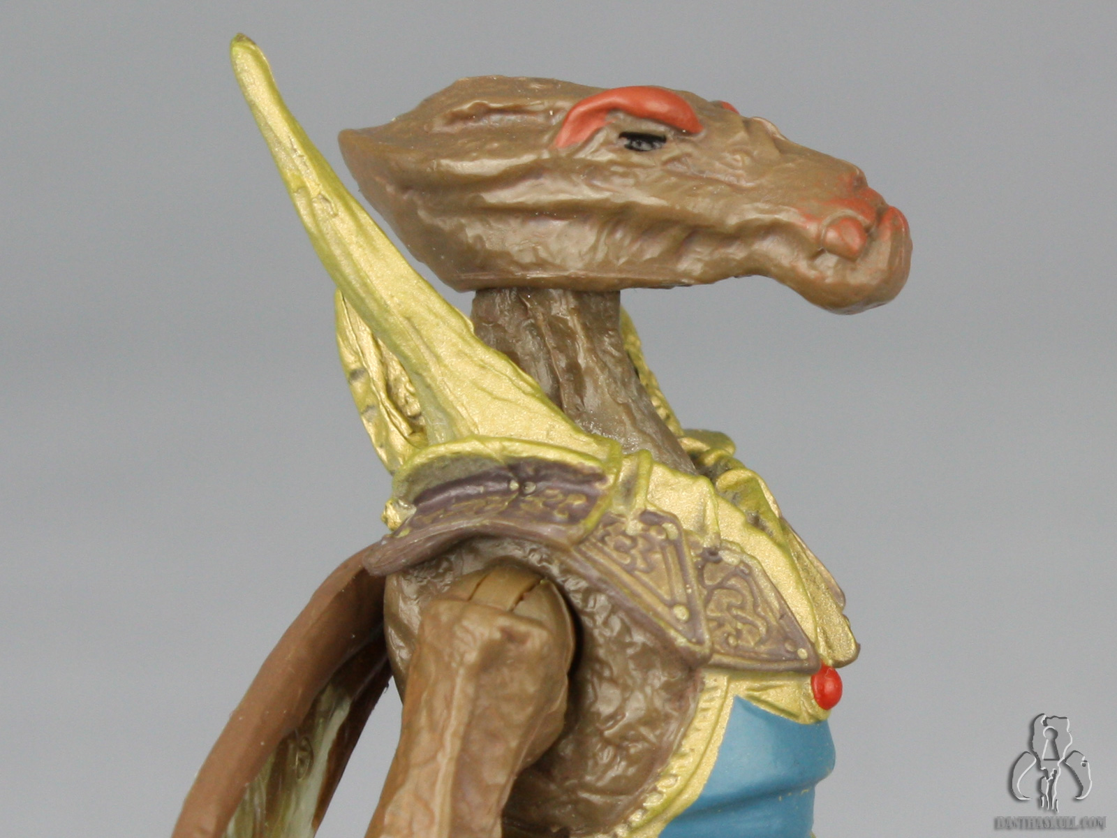 When Sun Fac was first released in 2006’s Saga Collection, the mold reflected that deformity. Having such a specific feature on what was billed as an army builder would not be ideal. The Legacy Collection line was ultimately canceled, but some of the figures were resurrected in this Amazon exclusive wave of six Build-A-Droid figures. The Geonosian Warrior is one of those resurrected figure, but the final release is named Sun Fac, which would match that first head sculpt shown. BUT THIS RELEASE HAS BOTH EYES. I have no idea what’s going on. I can say that despite the ocular inaccuracy, the figure’s vestments are a dead ringer for Sun Fac’s.