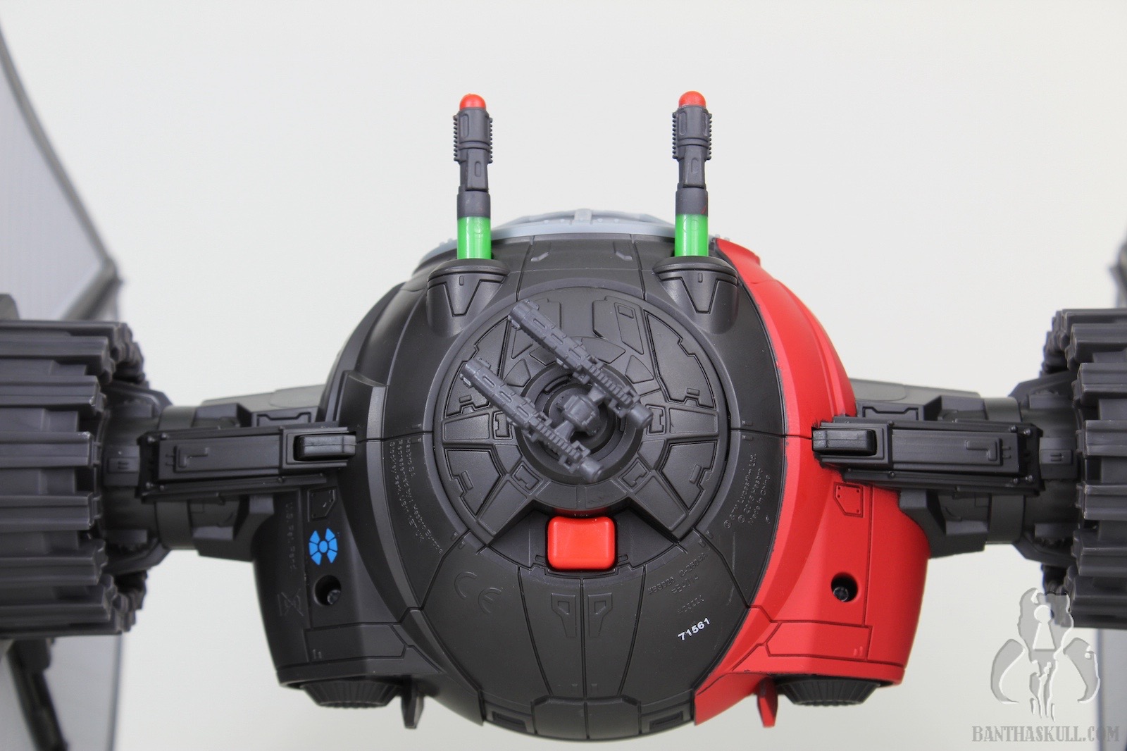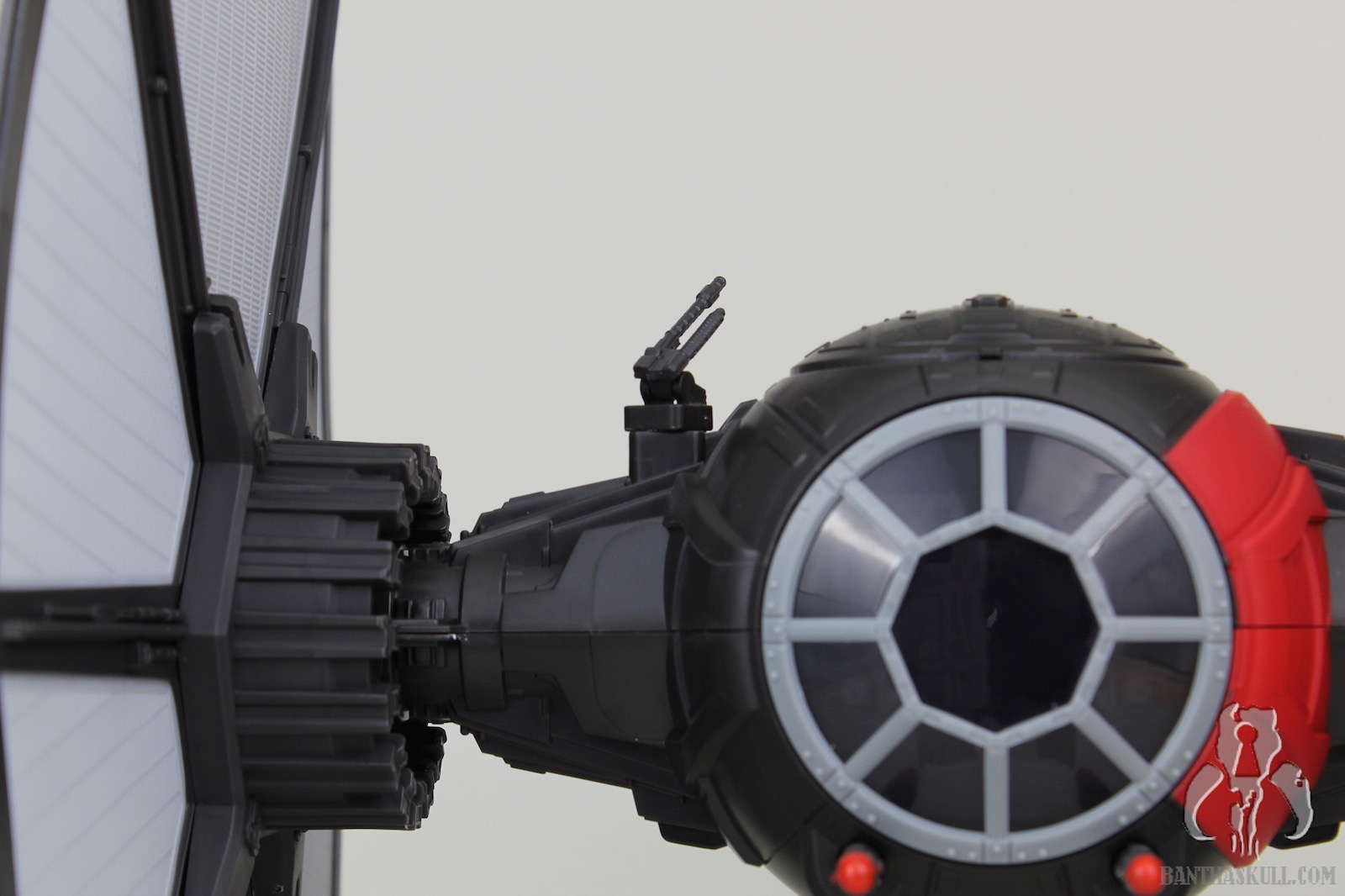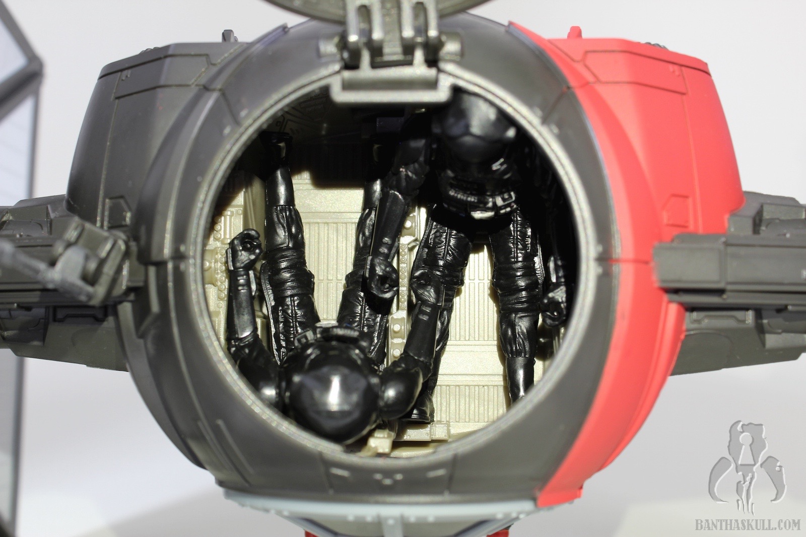 Beyond those two issues, it’s a solid toy. The wings pop off in classic style, there are two spring loaded projectiles, there is a rotating cannon on the underside of the pod, a smaller rotating cannon on the top right of the pod, a cockpit that opens to reveal a two-seater interior, and clear plastic windows on the top, front, and back. The Force Link feature is particularly neat with this vehicle, because the TIE Fighter engine flight sounds can run continuously while you zoom the toy around your home. It doesn’t merely make sounds for a few seconds and then go silent, and you can make “lay-zur” sounds also with some slight movement of the device, so it’s actually a neat effect.