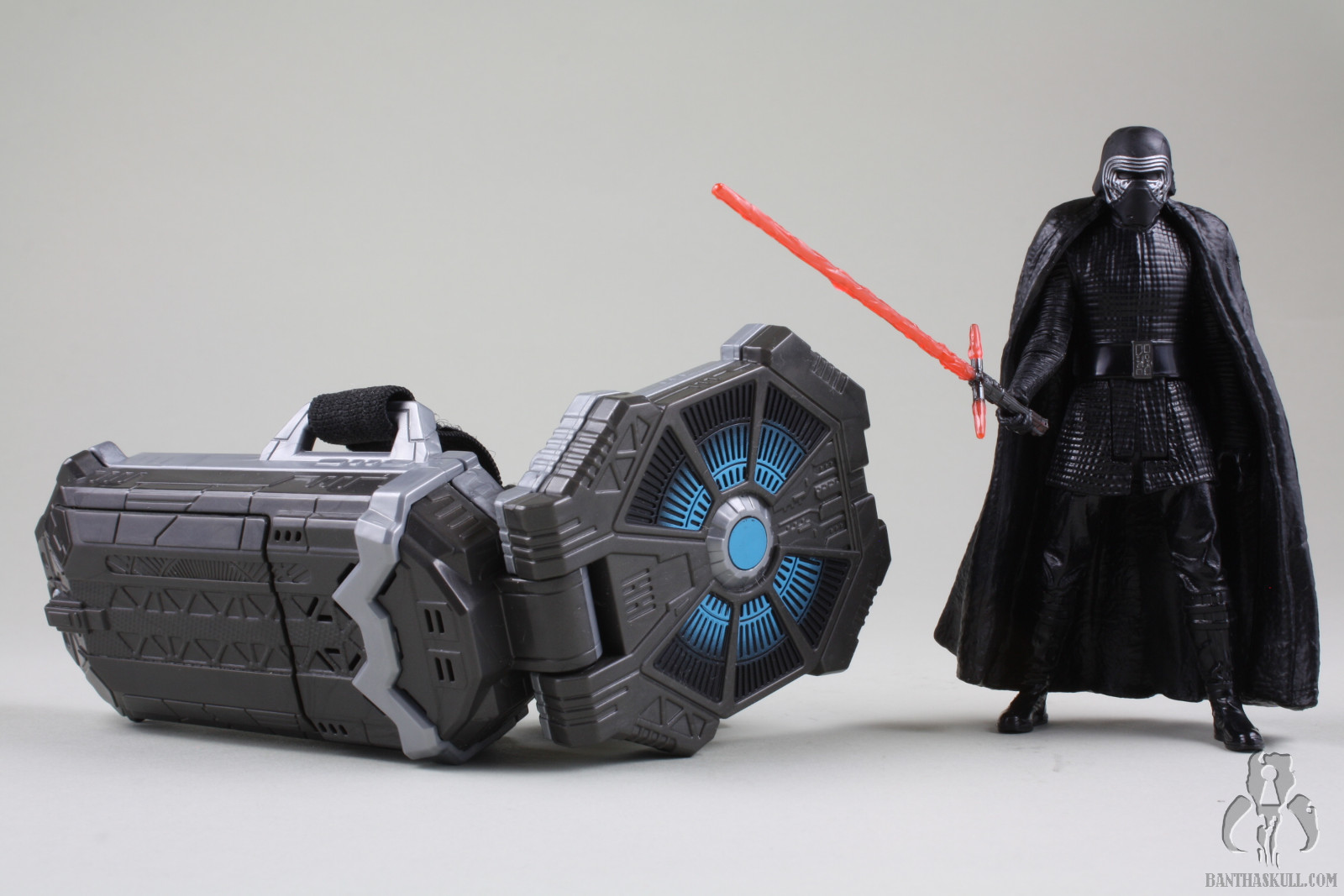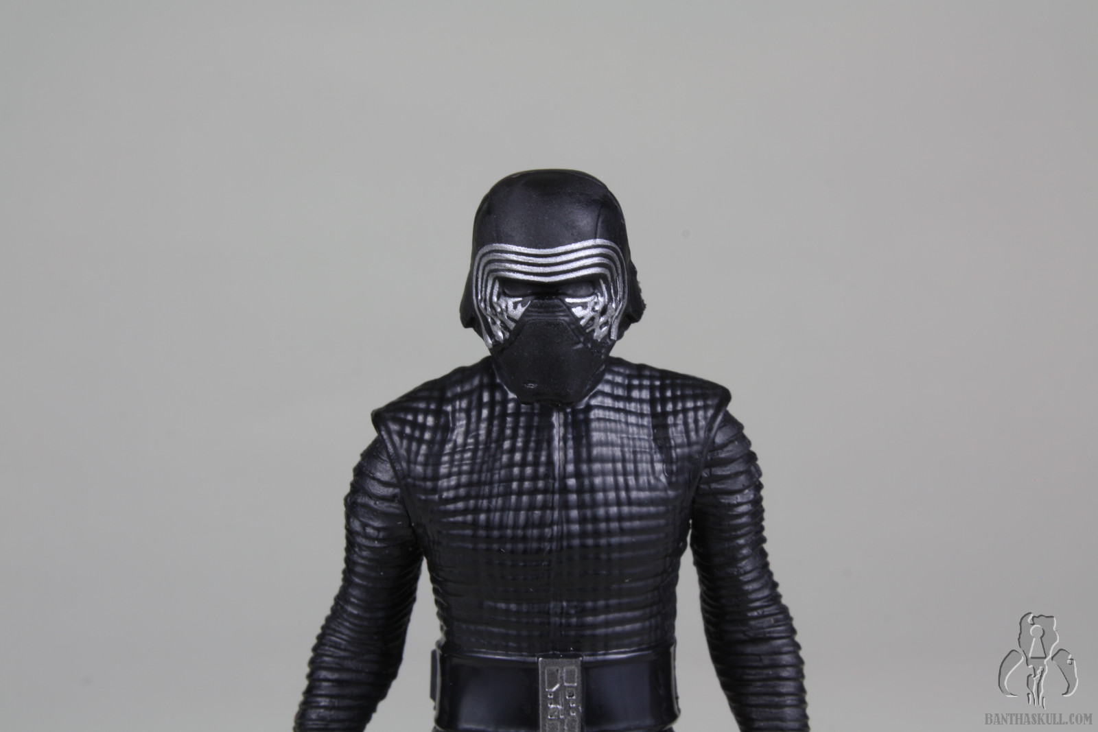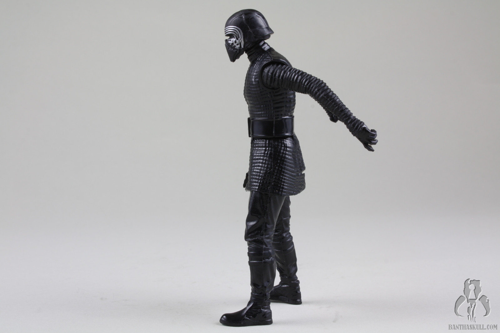 I should mention the figure a bit (even though most have quit reading by now). The starter set includes the only masked Kylo Ren figure released for The Last Jedi to date. The figure is 5POA, so it’s primary job is to stand assuredly and look good while doing so. It does. With the wide stance and prodigious clodhoppers, it stands securely. Due to the nature of the costume, it has only two sets of paint applications for the mask and the belt buckle, but they are cleanly applied. I really do want to call our readers’ attention to the paint applications on the mask. That is an intricate pattern, but it is applied cleanly and crisply. That should give collectors optimism about the quality we can hope to expect in the Vintage Collection. The figure succeeds at its job, but again, 5POA is what it is. One neat attention to detail is that all of the lines of dialog are obviously while Kylo Ren is wearing the helmet.