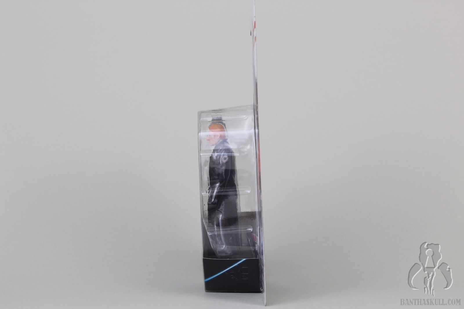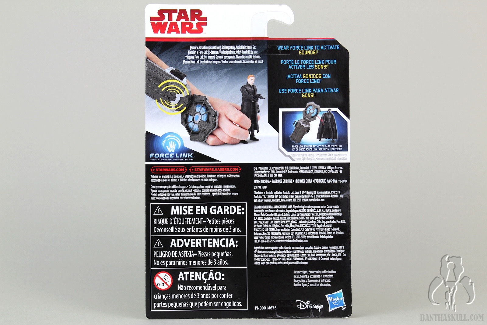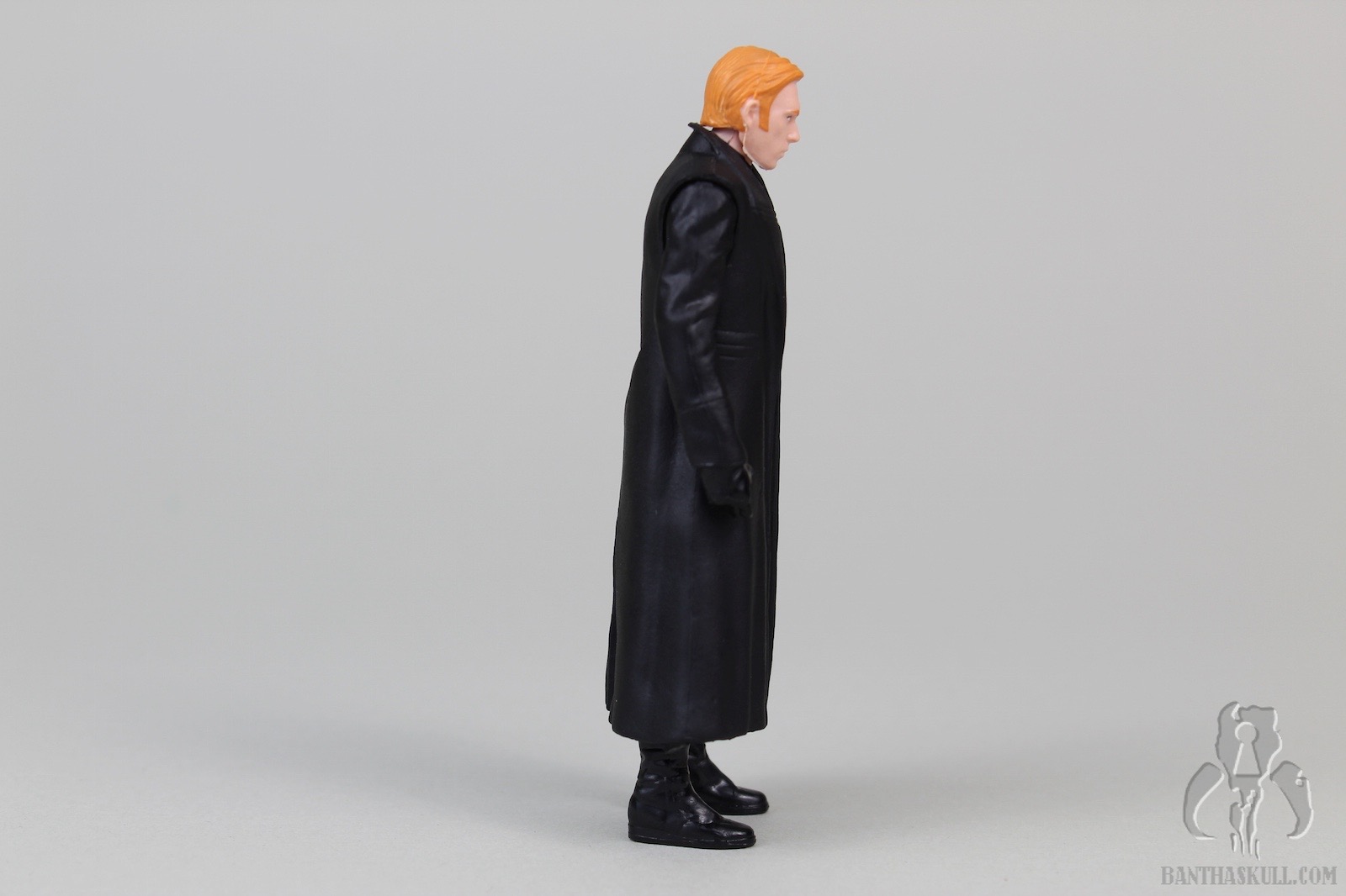 It appears that Hux’s uniform is the same, or very similar, in both TFA and TLJ. Hasbro decided to go a different route with the sculpt rather than rehash the TFA version.* I believe this resulted in a better figure. The most obvious difference from the earlier iteration is that he is not wearing his cover (or “hat”, for our civilian readers) this time around. It remains to be seen if Hux goes hatless for the entire film. If not, then it’s a shame Hasbro couldn’t include a removeable cap. If they could sculpt the masterpiece that is Paige’s removable flight helmet and detachable oxygen mask at this price point, then it is an unfortunate omission not to include a hat for Hux. But at least you can get him with both profiles, if you own the two figures.