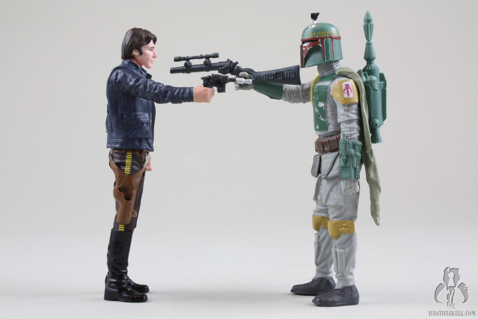 So, how to score this? Both figures fail in their meager 5POA missions in one way or another, but they also excel in other areas. They are a bit manic depressive in that respect. High highs and low lows. I feel I need to acknowledge the fantastic sculpting in areas of the Fett figure, so I’m going to score this a 5 out of 10, but wouldn’t exactly recommend this for purchase unless you’re a “collect them all” type. The bottom line is that this now has me wanting on a definitive, non-removable helmet, super-articulated, Episode V Boba Fett.