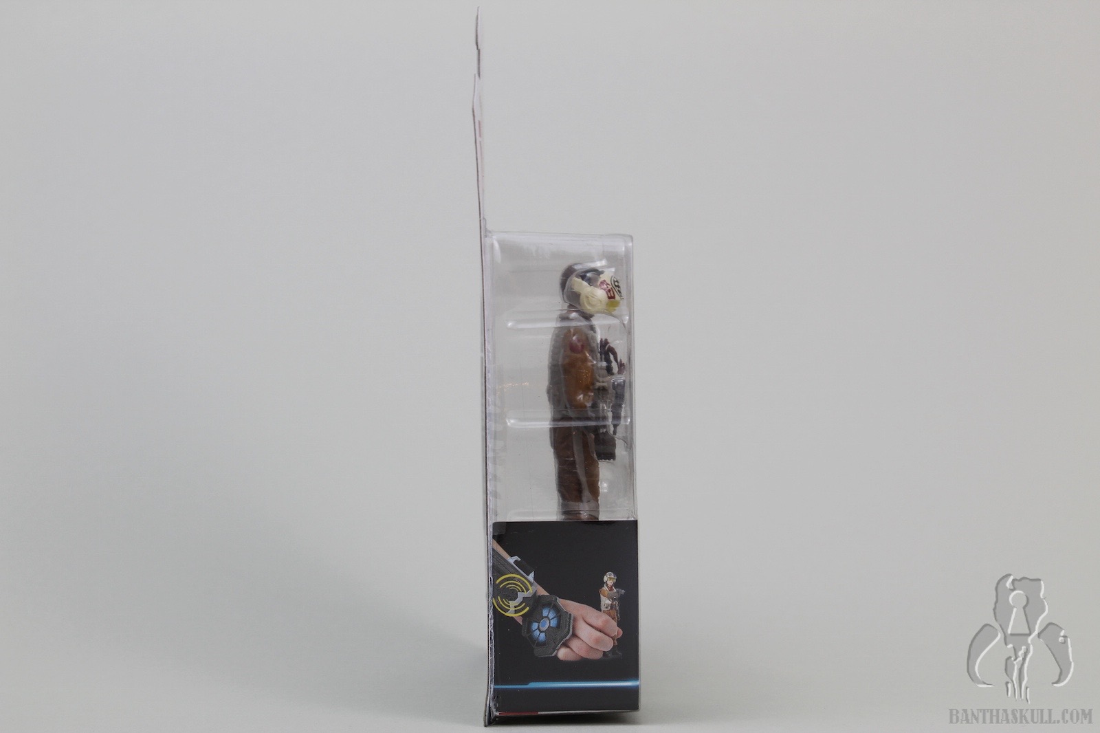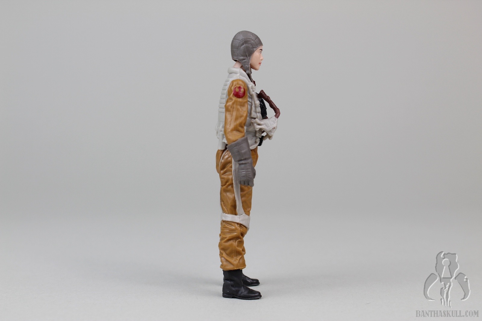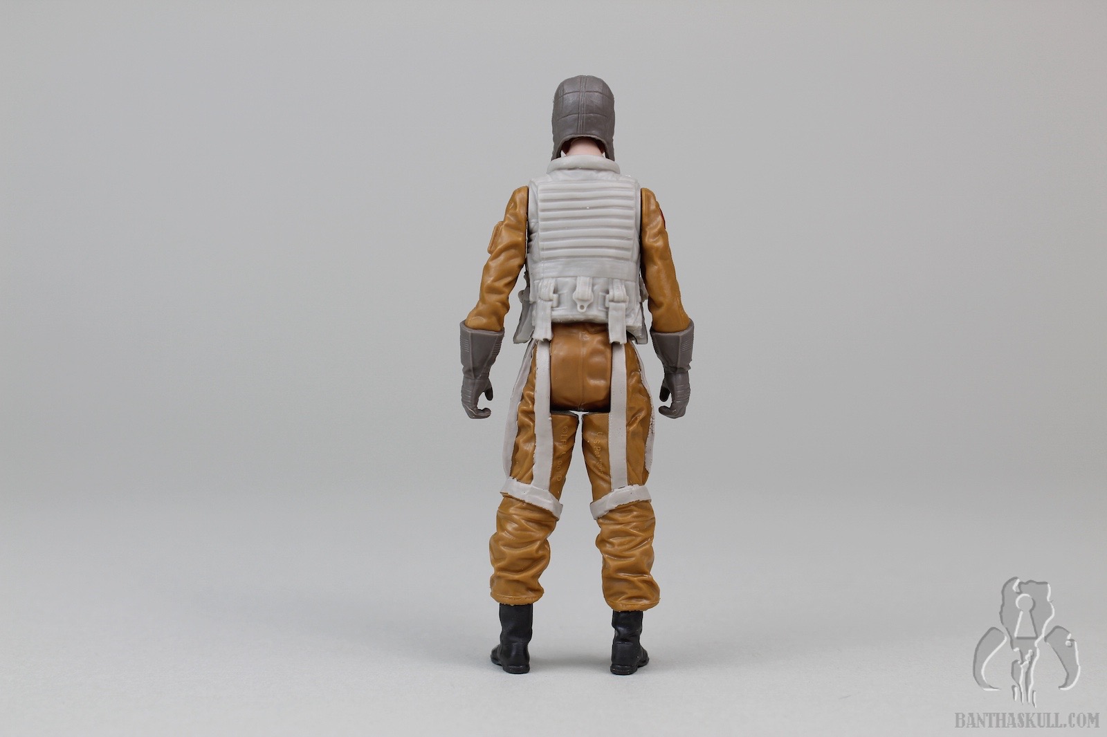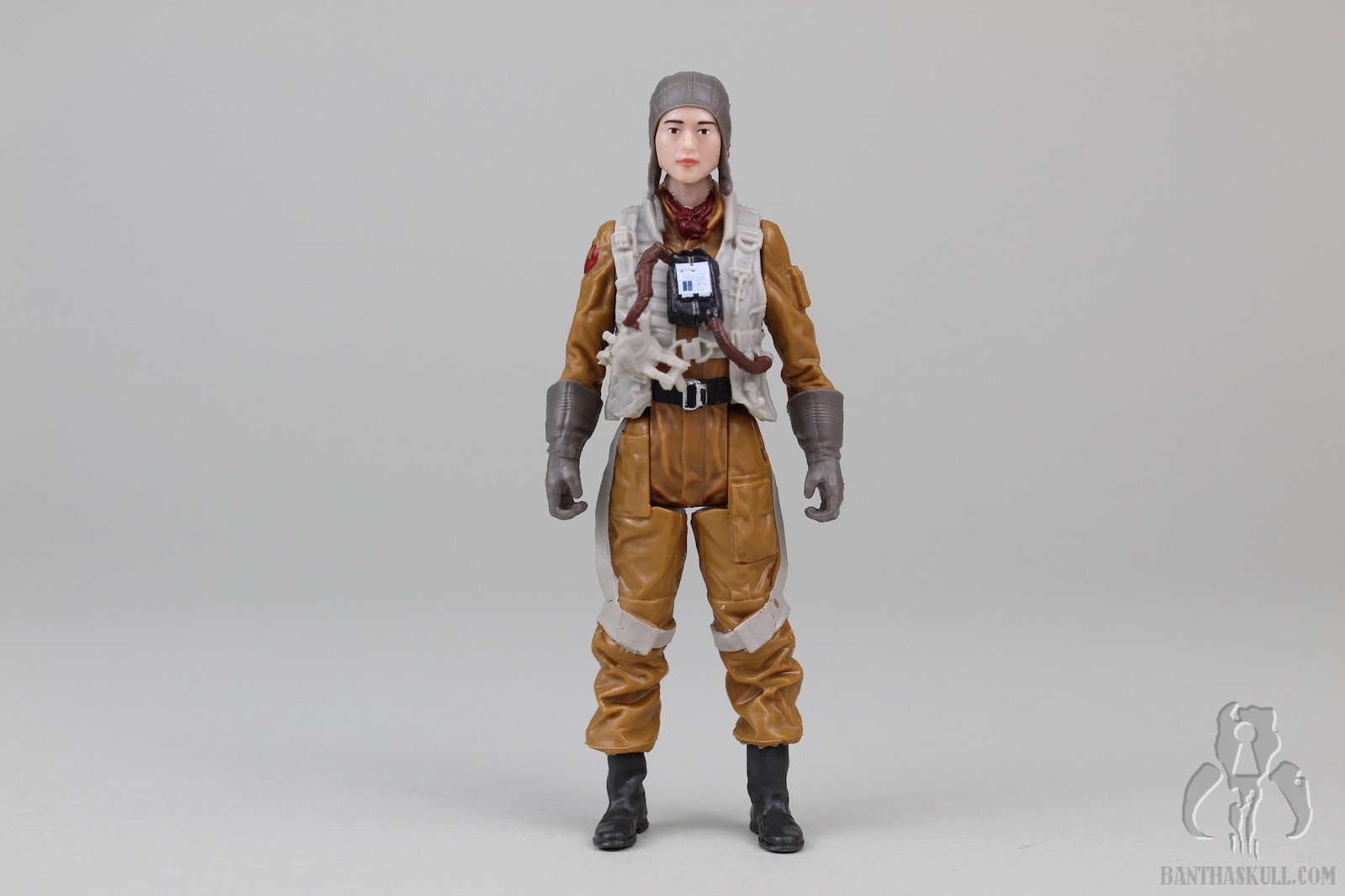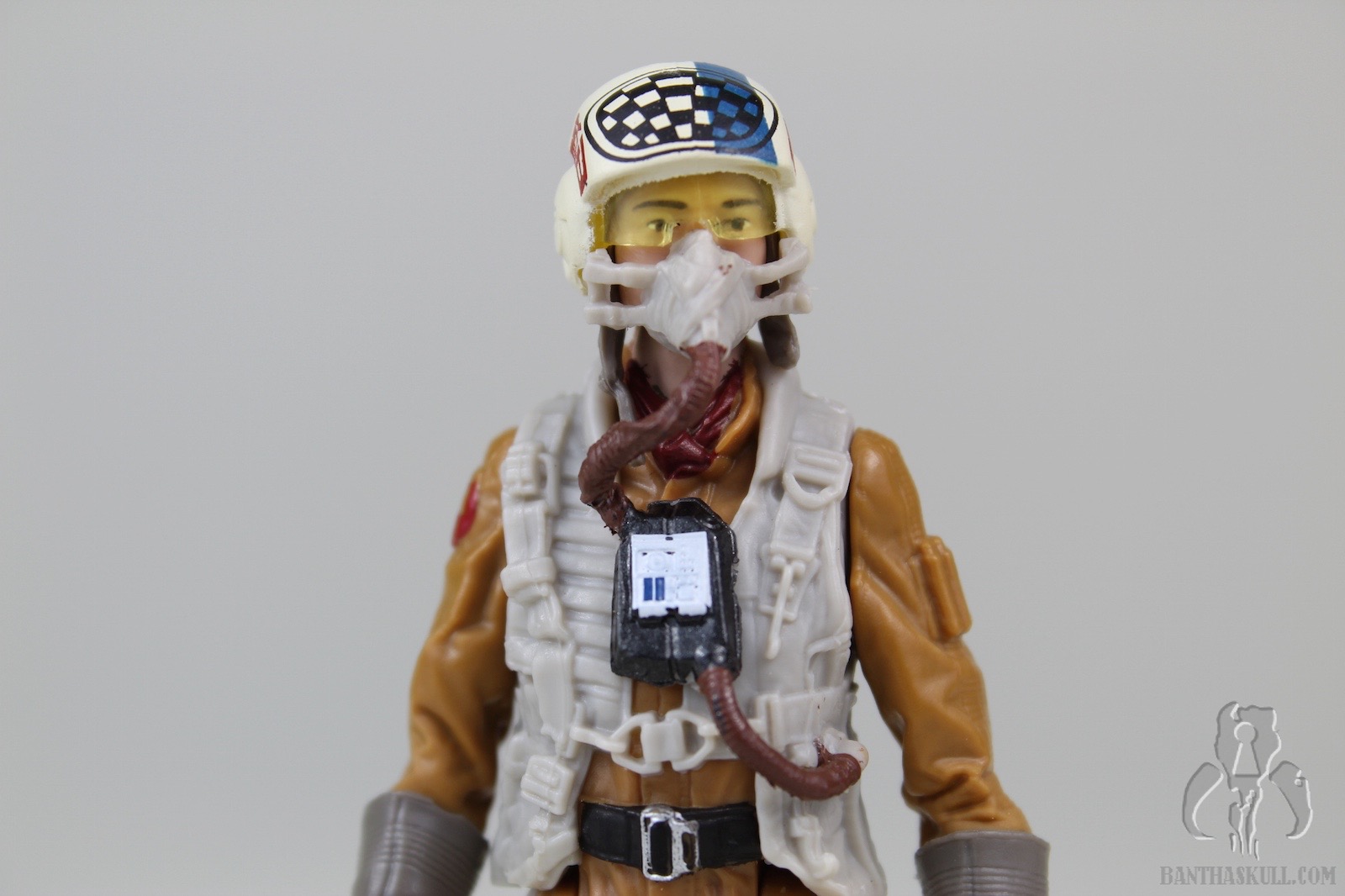 But this figure has an excellent sculpt. It completely annihilates the TFA era pilot figures. Comparing it to a 2015 Poe Dameron is like comparing it to a piece of worm-ridden filth. The folds in the flight suit, the details in the harness, and the interactive mask are worthy of a collector styled figure. The removable helmet is an interesting piece in and of itself, and fits snugly over the head, with the visor lining up perfectly with the eyes and nose. As a surprise, the oxygen mask has two tiny tabs which slip into two tiny notches in the helmet.