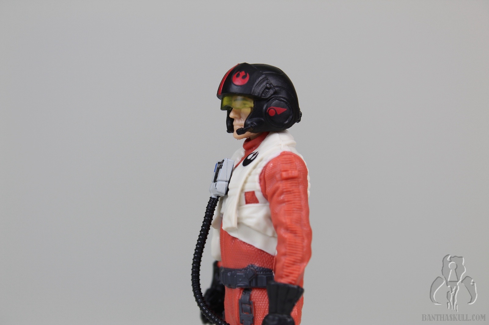 The 2015 Poe Dameron pilot from The Force Awakens Line was one of the worst figures of the modern era. The figure lacked detail, almost as if the final mold had melted slightly. It had 5POA, with only a ball socket head saving it from Kenner-era articulation. Like all figures in the TFA line, it came with an crappy off-screen build-a-weapon piece. But what solidified its place in the annals of action figure infamy, was the atrocious head/helmet combo headsculpt, which was capped off with the wretched “banana visor.”