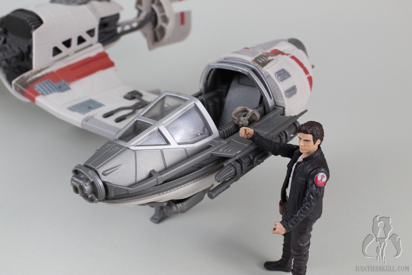 As of this review, we’ve only seen a bit of this ship in the trailer, so it’s hard to determine how screen accurate it might be, or if the action features are appropriate. But from what we have here, it’s a nifty vehicle. The design harkens to some kind of salvaged or repurposed B-Wing Fighter. Admiral Ackbar might be rolling in his…oh wait, no he’s still alive. Heh, awkward.