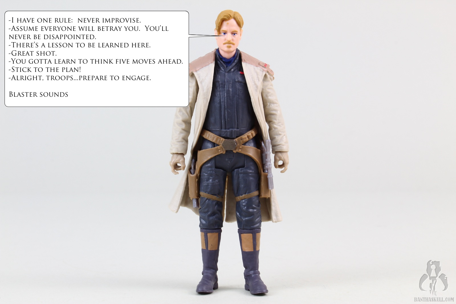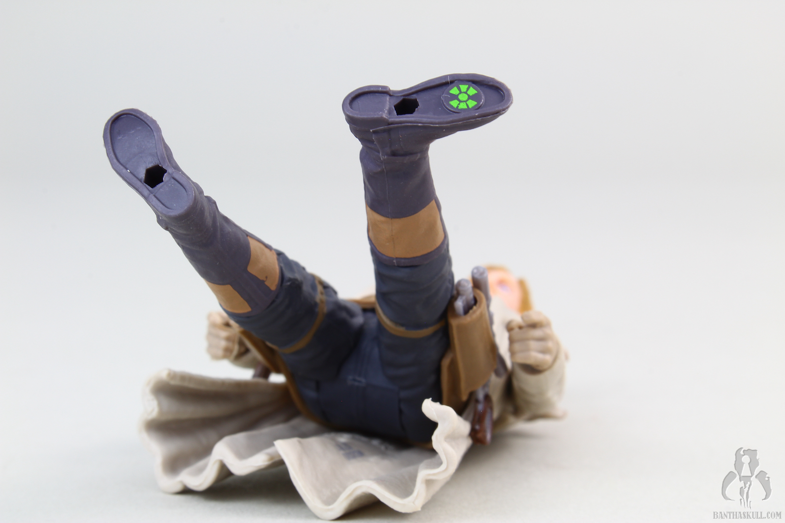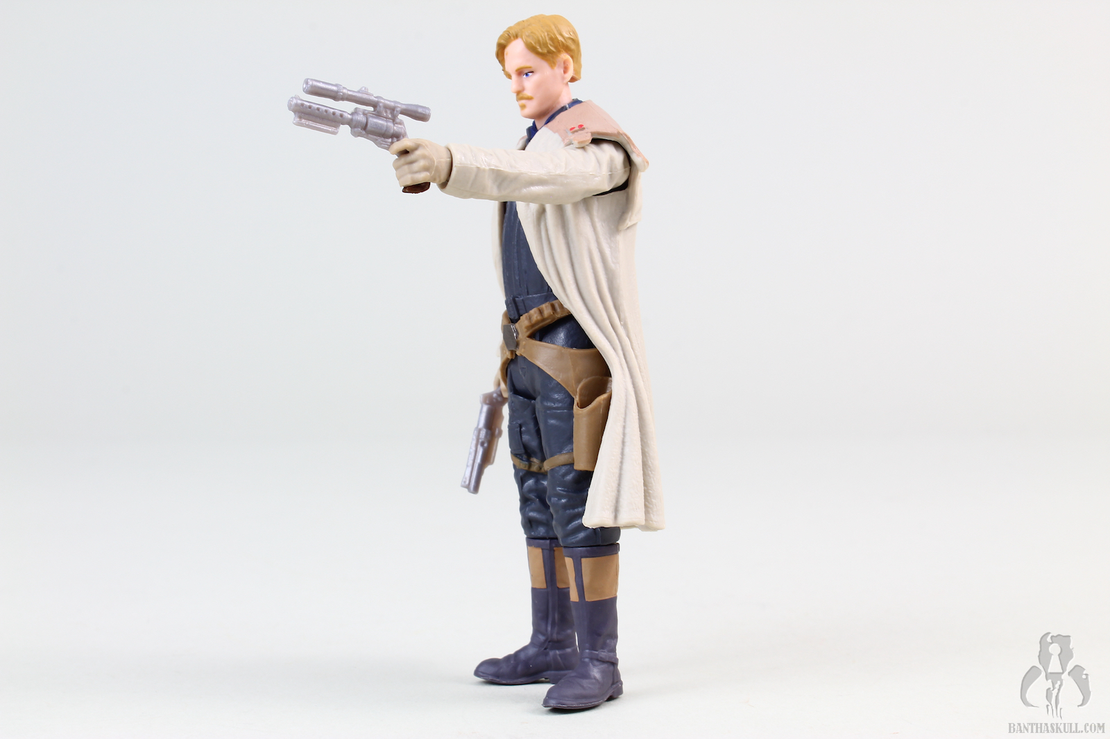 Becket comes with two different blasters. Hasbro did a nice job of sculpting the holsters so that they hold each blaster. Beckett’s hands, on the other…hand…aren’t quite as sturdy. The left hand, in particular, holds the blaster very loosely. Both are very simply painted, with just a bit of color added to the grips. This figure is equipped with a Force Link 2.0 chip.