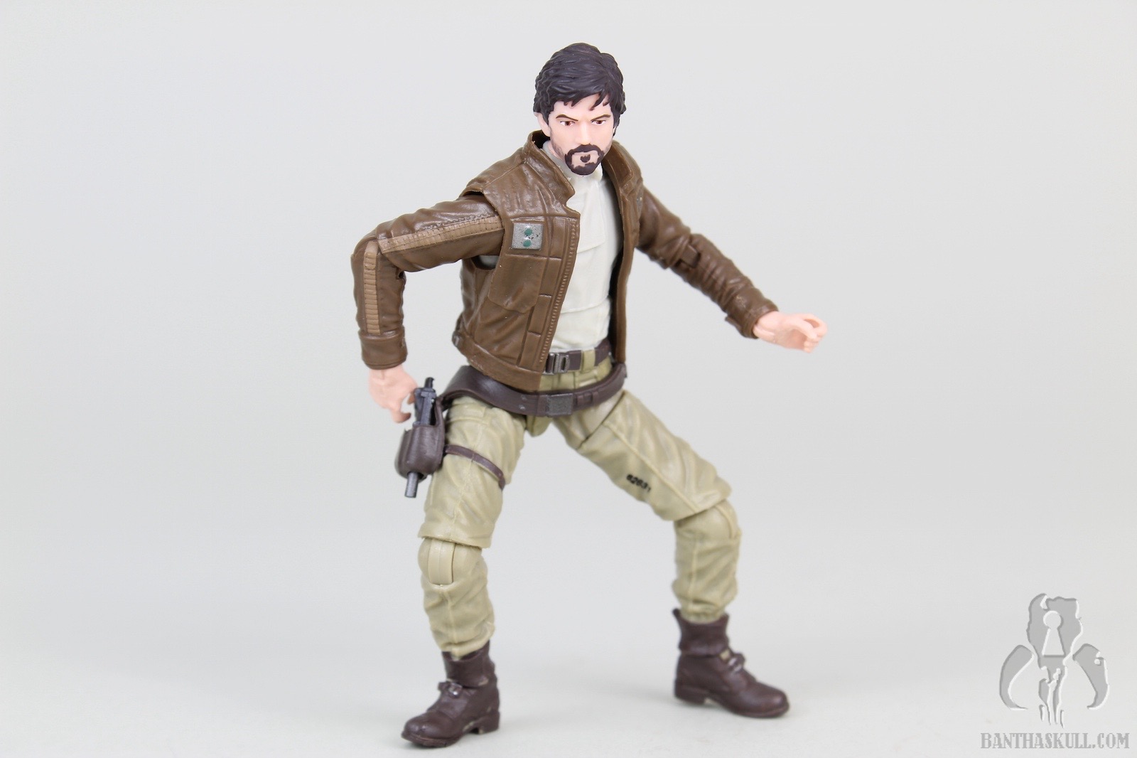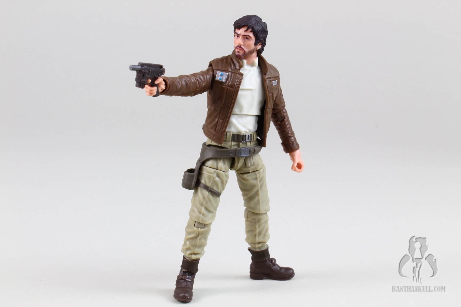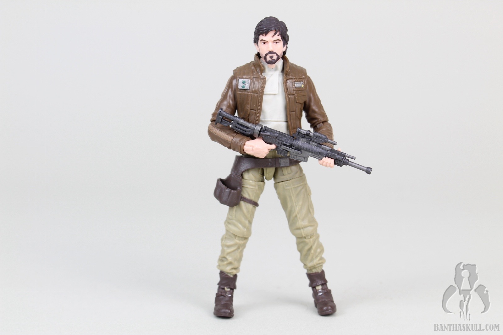 Cassian comes with a pistol, but the pistol also serves as 1 of 3 parts to a larger rifle. A stock can be added, as well as a barrel. The figure’s left hand is sculpted so that it can hold the barrel firmly, thus able to perform the always awesome two-handed weapon grip. Take that, 5POA! It’s a thing of beauty.