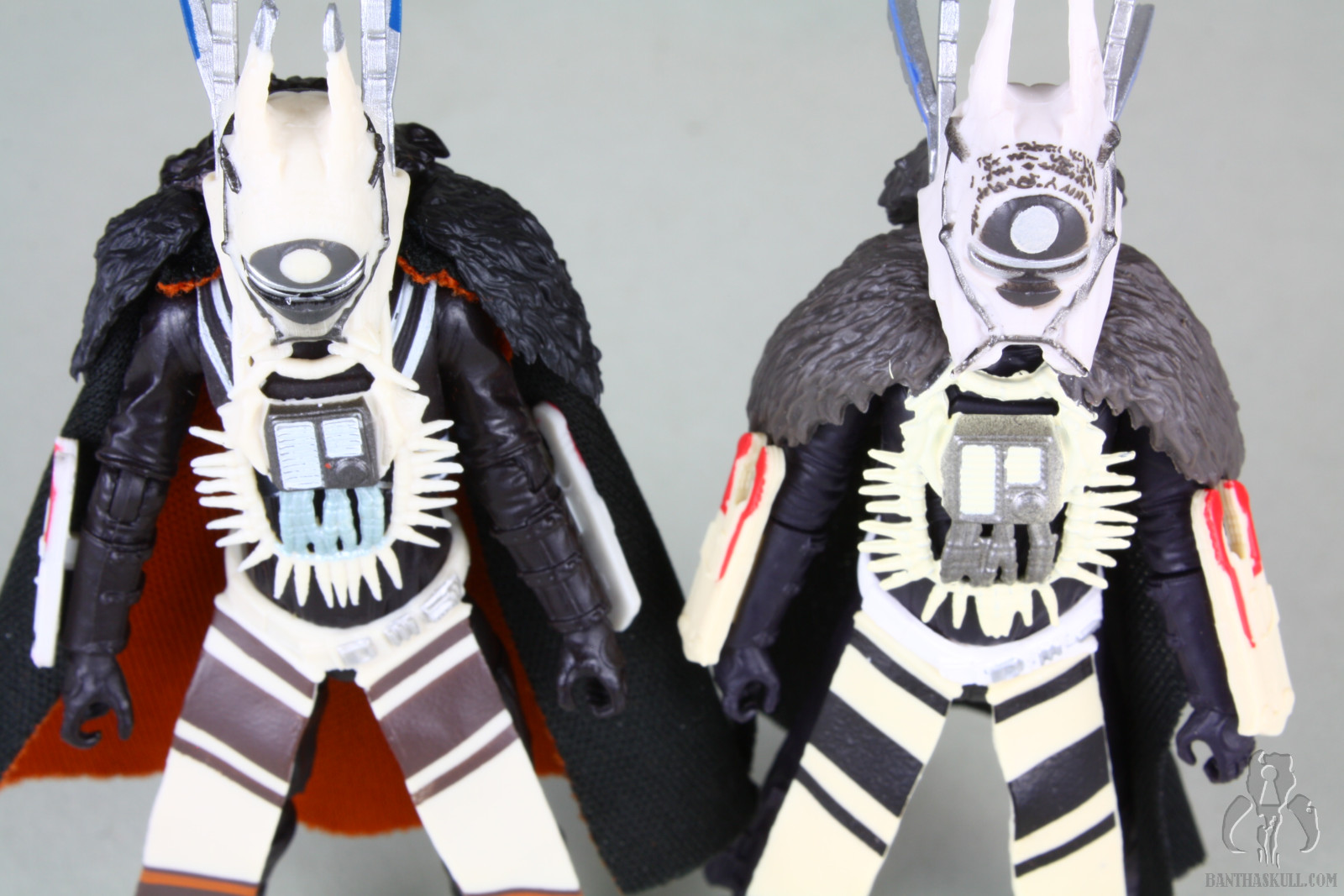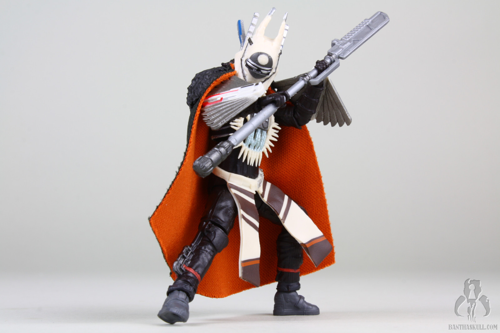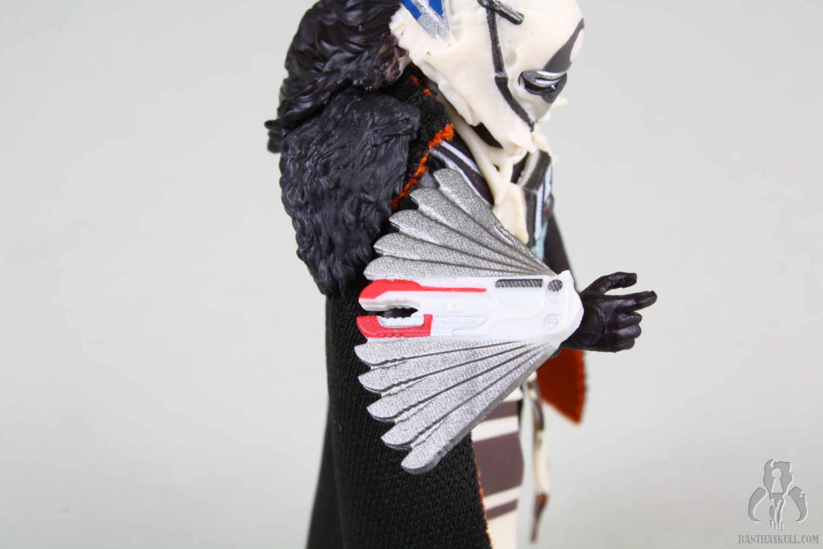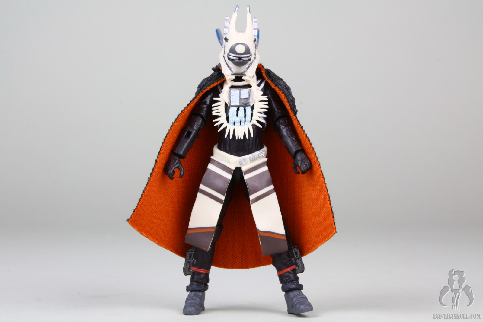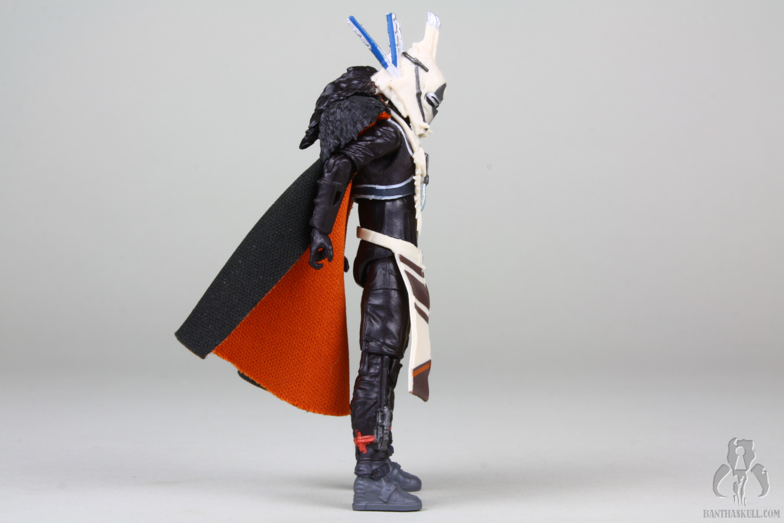 Some people have pointed out that the 5POA Enfys Nest has more paint applications on the head. You can see that in the final picture above, but that’s just it. It has more. My beloved and sainted New England Patriots had more wins than the loathsome New York Jerk Faces Giants in 2007. How did that work out for me? Spoiler alert: NOT WELL. The number of paint applications doesn’t matter as much as the accuracy and appearance. As you can see from the inset left, Enfys has a very subtle Aurebesh inscription on the top of the helmet. This is what the 5POA figure was trying to capture, but did it with the subtly of an air horn. The TVC figure would have definitely benefited from some carefully applied paint apps and a dirty wash on the helmet, but given the two alternatives, I prefer no paint application over the overly done paint application of the 5POA figure. The 5POA figure also has the tusks on the helmet painted. That is wrong. In addition to the articulation, another way the TVC figure is elevated over its 5POA counterpart is with the cape. The 5POA figure as a solid black cape whereas the TVC figure has an orange liner. It’s pretty neat and really pops.