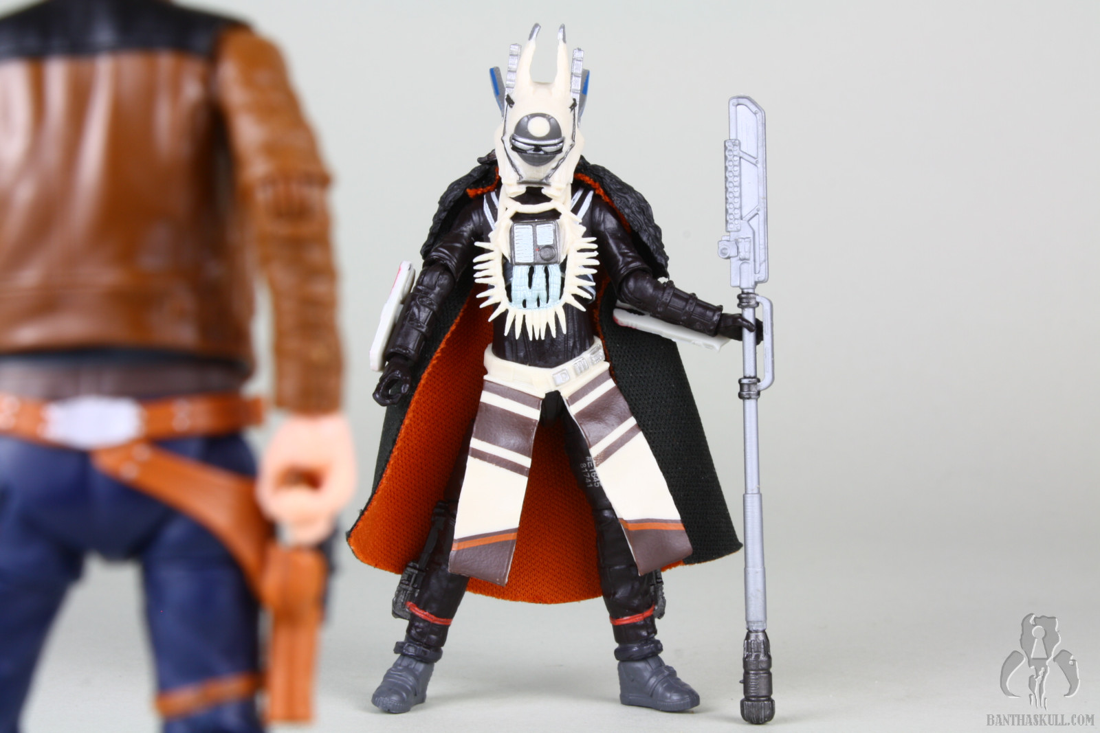Back to the original point, you should get excited about this figure. One thing you’ll notice about this site is that we have settled on a focus. In fact, that focus is so narrow it’s probably not sustainable in the long run. We focus on 3.75” Star Wars action figures and preferably super articulated 3.75”. While the latter are collectible toys, they’re still toys on some level, and if you can’t appreciate this figure on that level, regardless of its source, that’s where you can get out. I happen to love Enfys Nest as a character. Prior to her unmasking, her on screen treatment was so evocative of Leia in Boushh disguise for me, that I was all in. So the fact that I also love the figure makes it a home run for me. If you’ve noticed one thing from my reviews it should be that I tend to have more appreciation for figures that use melee weapons, so that’s probably also at play here. The two-handed-weapon-grips (THWGs) tend to work better with staff and sabers at this scale than they do with rifles. This figure can achieve many well balanced and realistic dueling poses. That always adds to the fun of a figure.