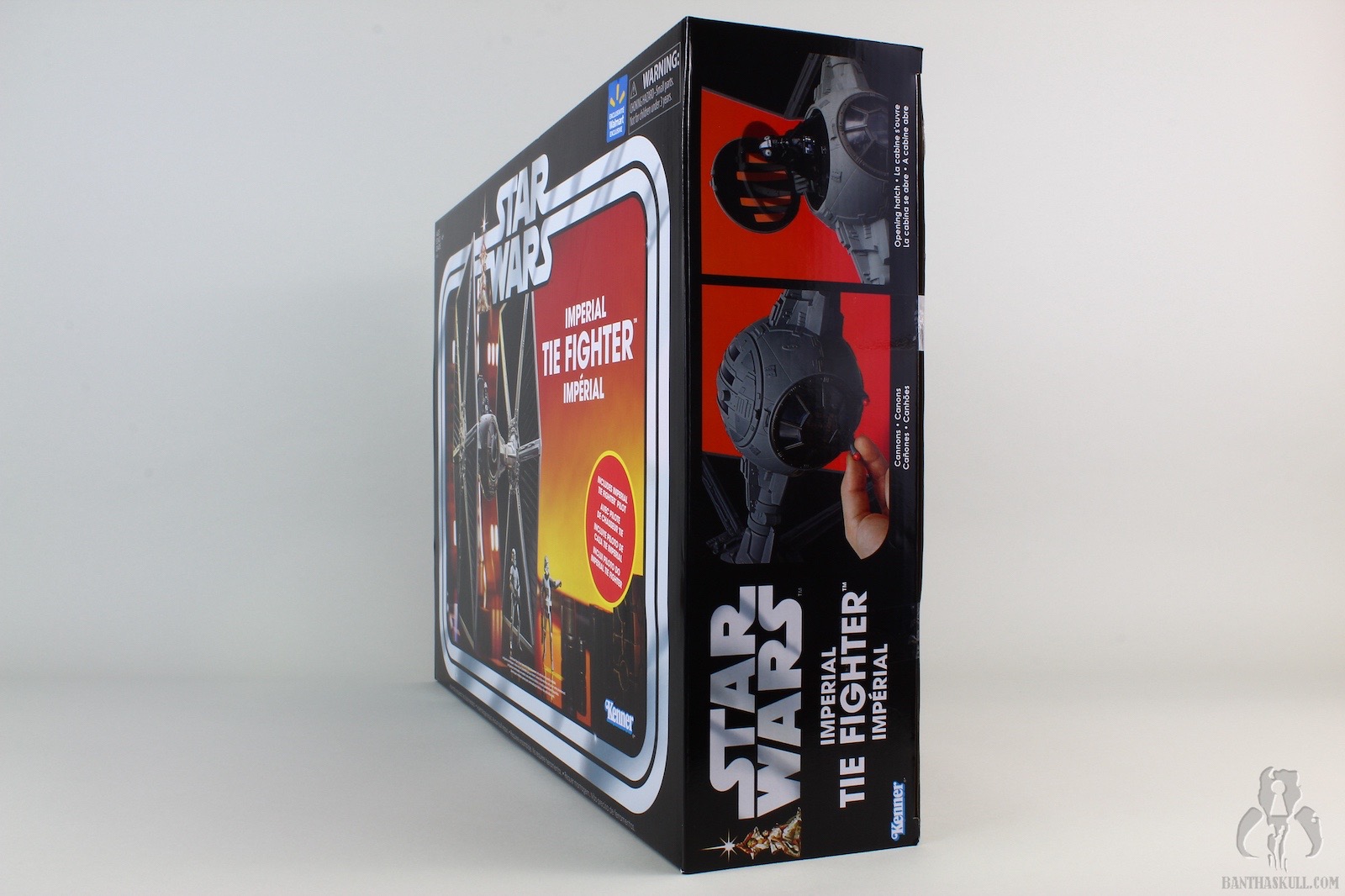 Okay, so the vintage box is pretty cool. I like the packaging a lot. The colors are striking, and while it’s not necessarily as Kenner-ish as the aforementioned Target release, I enjoy the color palette and the more elaborate diorama setting. My complaint would be that it really isn’t as clear as it could be that there is a figure included. Sure, there are a bunch of words in multiple languages splashed in a big red circle on the front panel, but who actually reads anything these days? The two stormtroopers in the image are much more prominent then the TIE Pilot that his doing his rendition of the Whack-a-Mole…mole. A window showing the figure would probably be a more effective form of communicating this important point. A bunch of old school fans would probably complain about that. So how about a compromise? Maybe just an image of the pilot, surrounded by the silver race track, on the bottom right, similar in concept to a vintage card back: