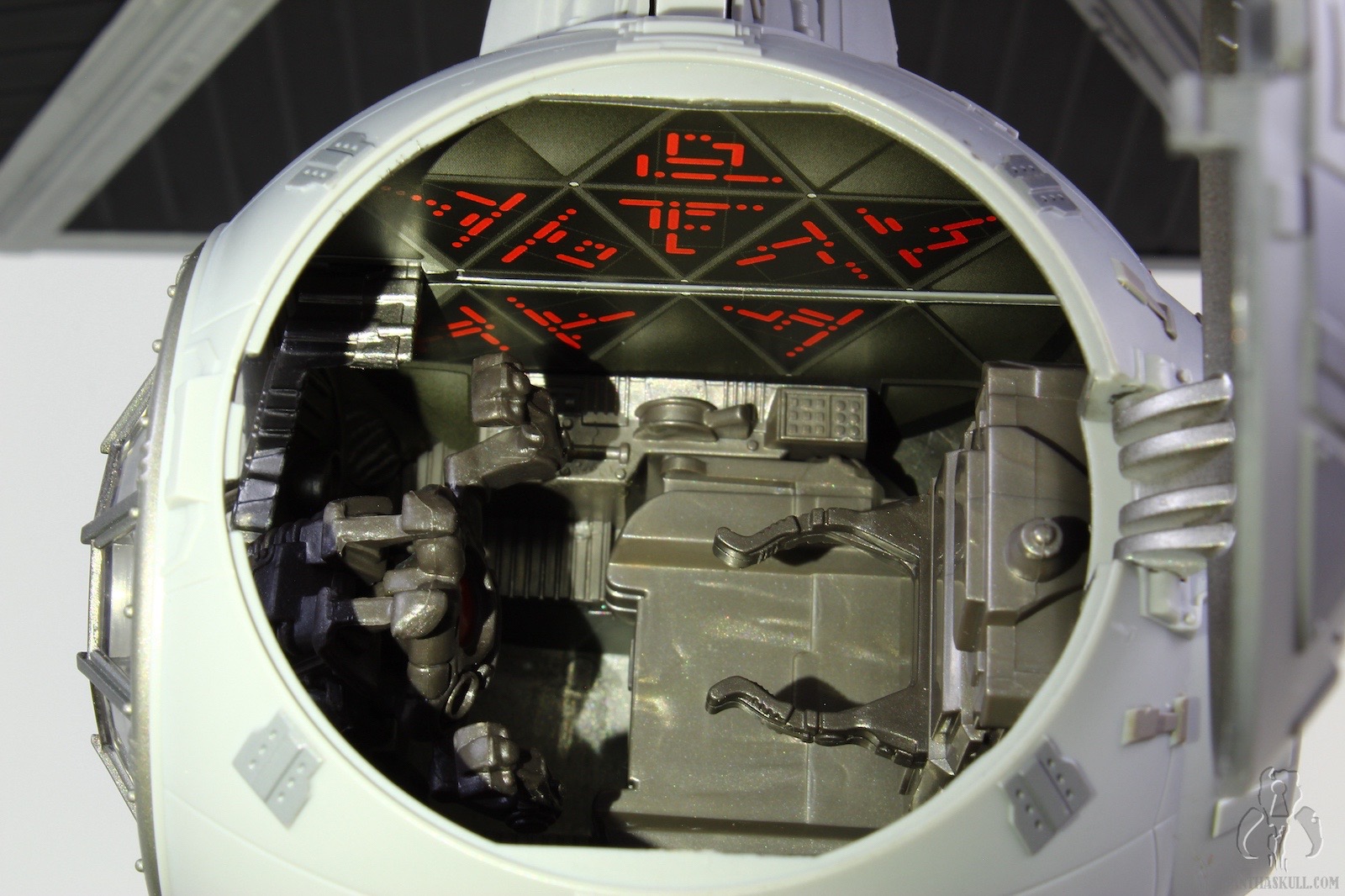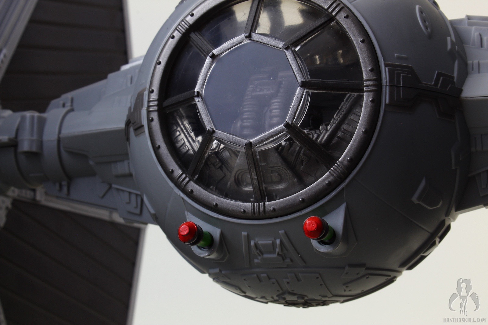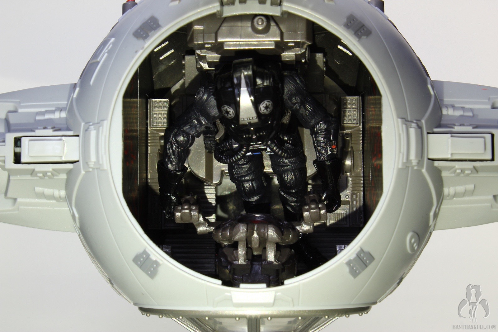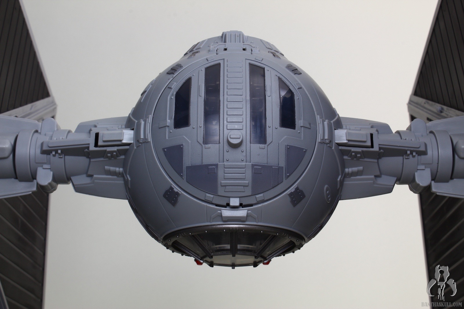 The TIE is excellent, a rehash of the most recently offered Big Wing TIE, but in a slightly different color scheme. Yes, that’s right, it’s a different gray! By my count, we now have TIE Fighters from Hasbro in 49 shades of gray. One more color variant, and we have a real problem on our hands. The ship itself has all the same features you’ve seen a million times before: pop off wings, extendable cannons, windowed top hatch, and a removable ejector seat covered in soft Corinthian leather. Personally, I’m okay if Hasbro ditches the pop off wings going forward. I just feel there’s too much risk to the spring going bad, and the wings either pop off at the slightest provocation, or they don’t stay connected. My sample is fine so far in that regard, but I think a more firm locking fit and elimination of the ejector buttons would make this a sturdier vehicle. The panels are nice and solid. Gone is the rubber plastic we’ve seen recently with FO TIE releases. No warping here (yet) which is surprising given the fairly flimsy interior packaging. I guess they did just enough to keep the panels from bounding around, and there are no wires or twist ties that force the panels to bend unnecessarily.