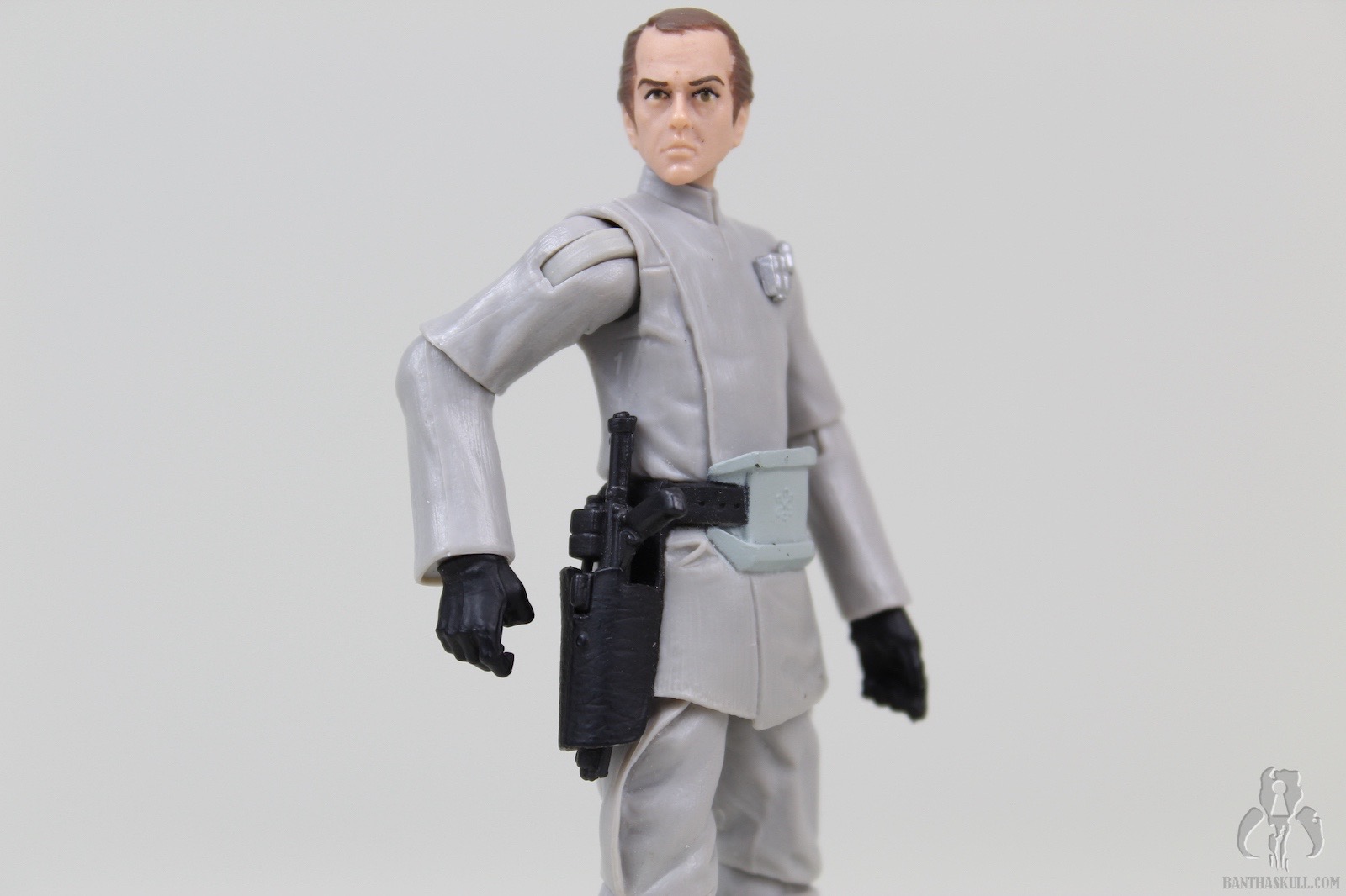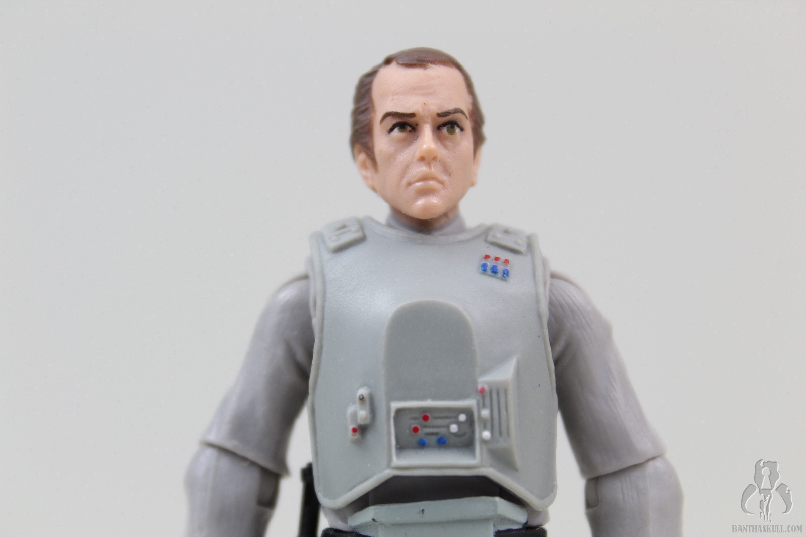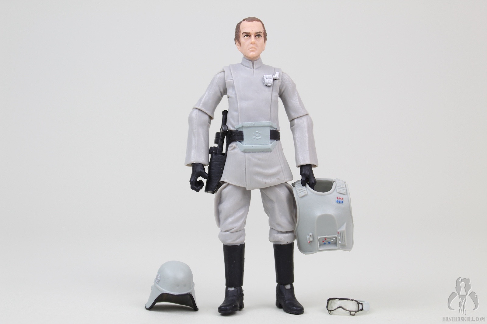 The body sculpt is excellent, with articulation that far exceeds that of Veers. The removable body armor is nice. It is front and back, which is better than Veers, however, this guy’s giant “belt buckle” is not removable. When he’s in standard officer mode, the belt and buckle stand out in a silly way, so this should be removable.