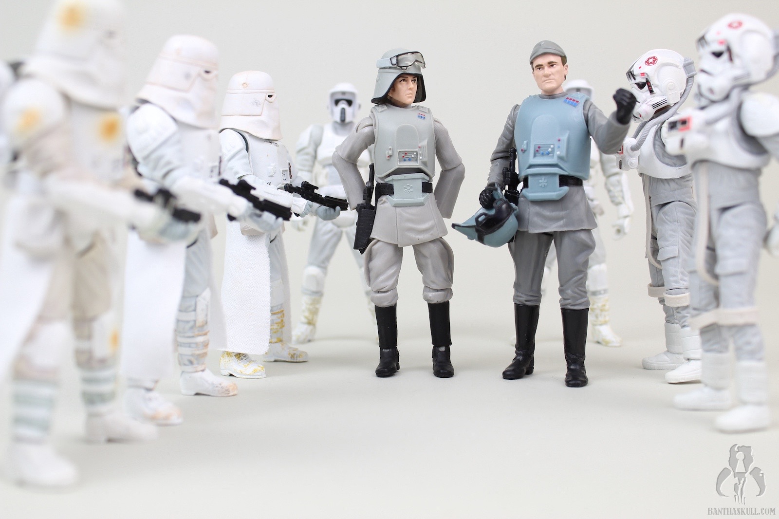 This is a very good figure. It’s trying to do a lot of things, and succeeds overall, but I do have some complaints. First and foremost, we probably should have gotten an updated General Veers, rather than a generic AT-AT Commander. The good news here is that it qualifies as a modern upgrade to the Kenner AT-AT Commander, so it satisfies that narrow requirement. This figure resolves some issues with the General Veers figure, while other aspects are actually worse off. The head sculpt is what it is. It’s fine for a regular guy. My biggest complaint is with the helmet, which is VERY loose. The goggles are a separate piece, but can’t be worn any way other than over the top of the helmet, so they might as well be sculpted or glued on. I guess he can hold them casually in his hand like in one of the pictures above, but it’s not an impressive capability. Veers had an officer’s cap underneath the helmet, which is cool. This figure does not have a hat. A better option would be a removable hat that can be switched out with a better fitting helmet.